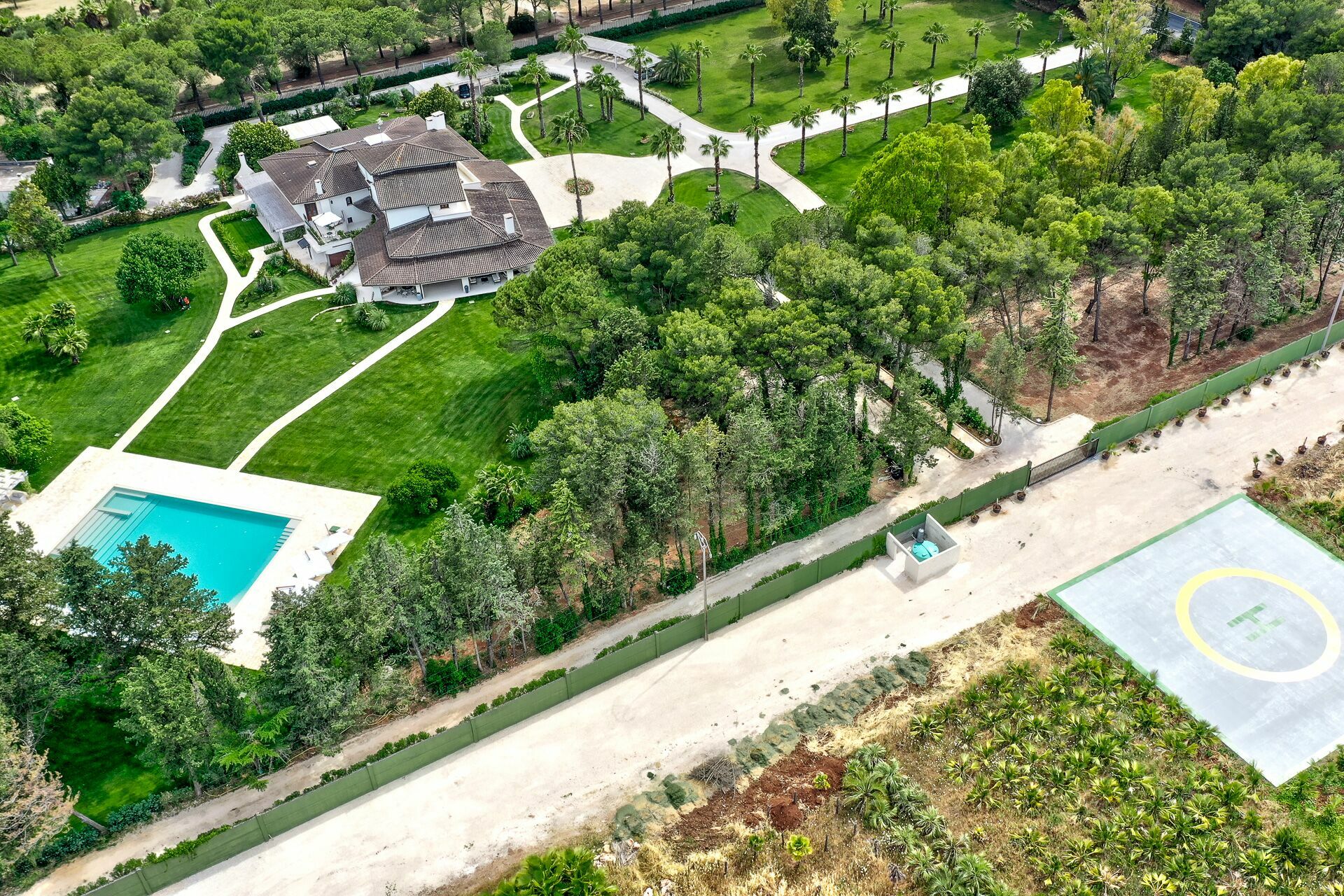 L’arredamento interno è ricercato e gli ambienti sono molto spaziosi e luminosi. L’ampio giardino recintato, di circa 8000 metri quadrati, circonda l’intera proprietà con un bel prato all’inglese e alberi e piante tipiche della macchia mediterranea. Attraverso un vialetto si raggiunge la spettacolare piscina riservata all' uso esclusivo degli ospiti. Varie zone relax e zone pranzo sono dislocate in diversi punti del giardino, sotto a eleganti pergolati o nelle verande ai lati della casa.