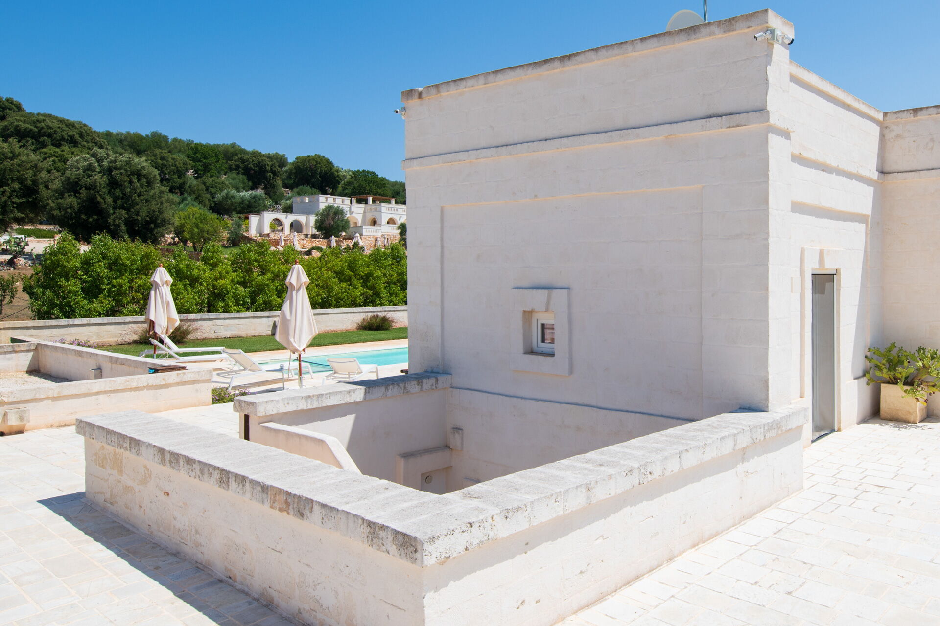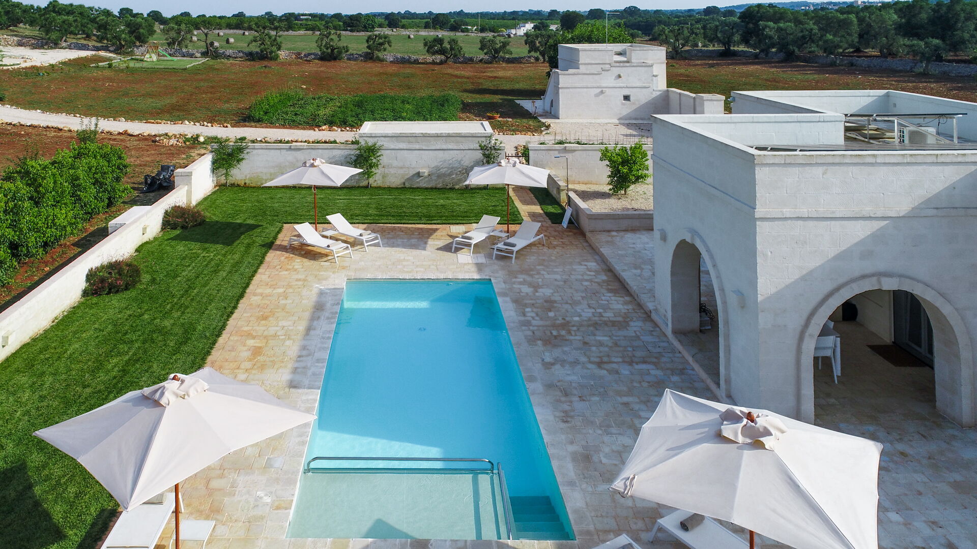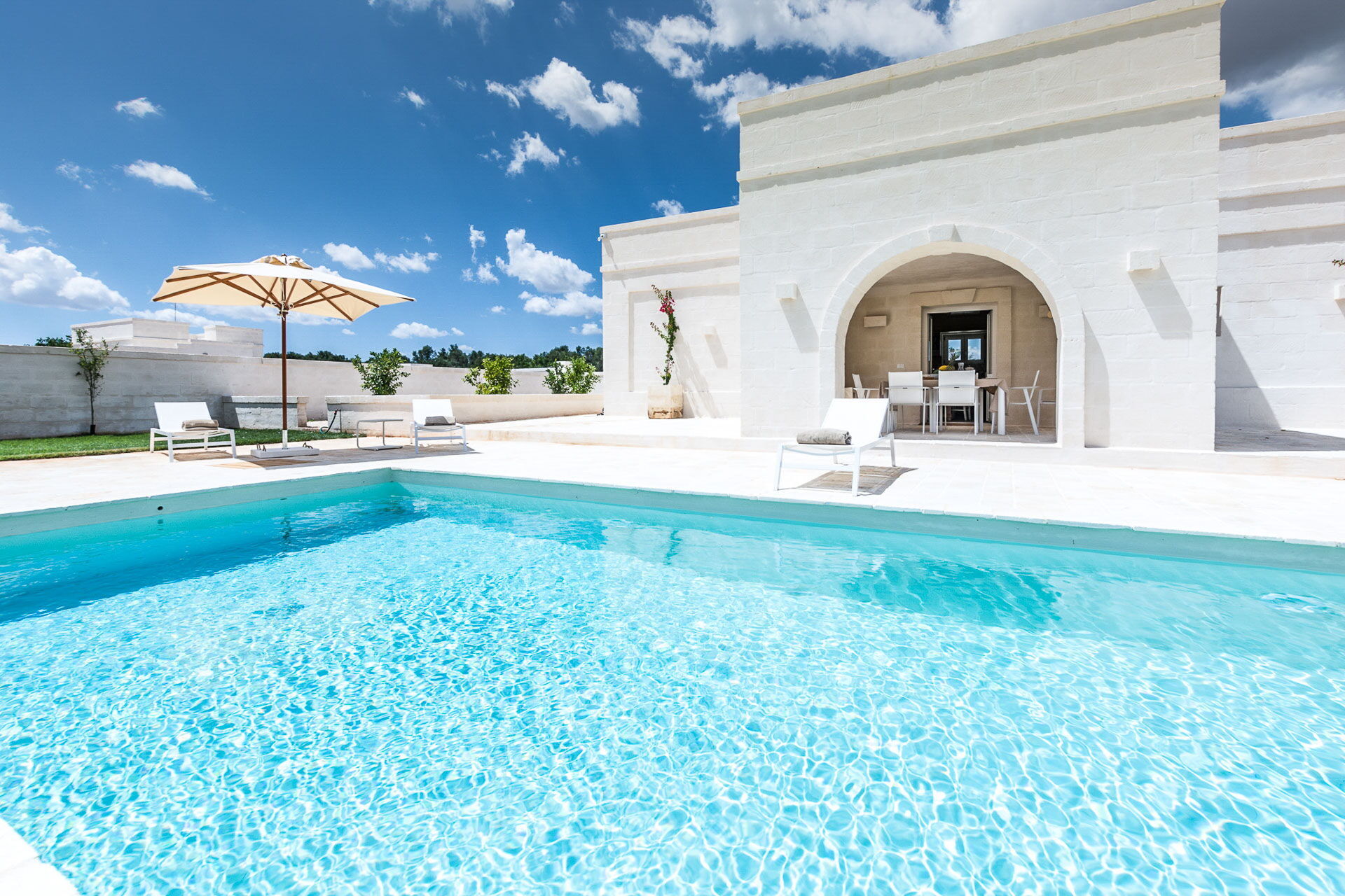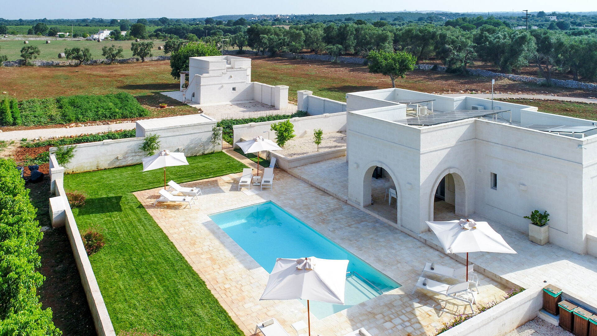 Questa dimora si trova a stretto contatto con importanti centri d'interesse come Ostuni, Cisternino, Alberobello e con la bellissima natura della campagna pugliese. Il giardino e la piscina privata sono a completa disposizione degli ospiti e qui potrete rilassarvi all'aria aperta o a bordo piscina dopo un tour della zona. Il giardino è recintato ed ha alberi da frutto, un orto biologico e un limoneto.