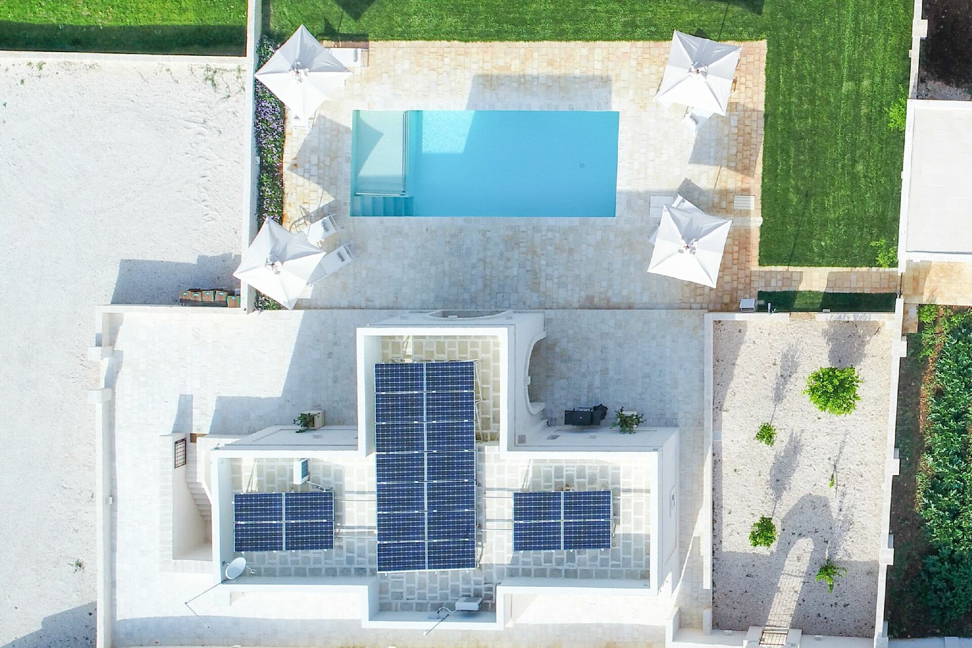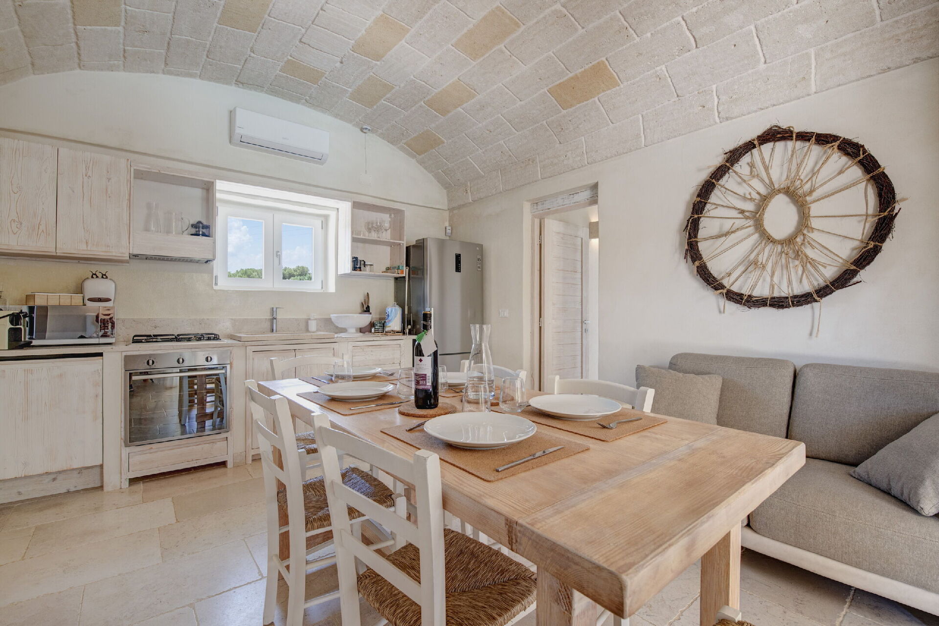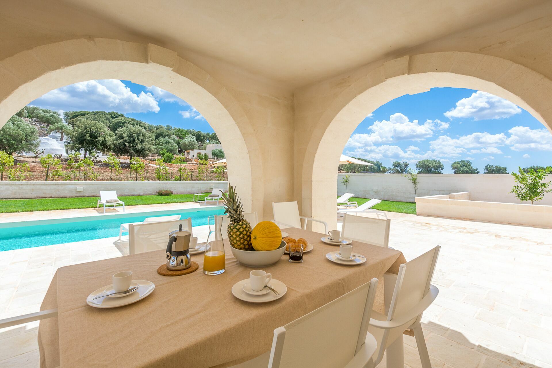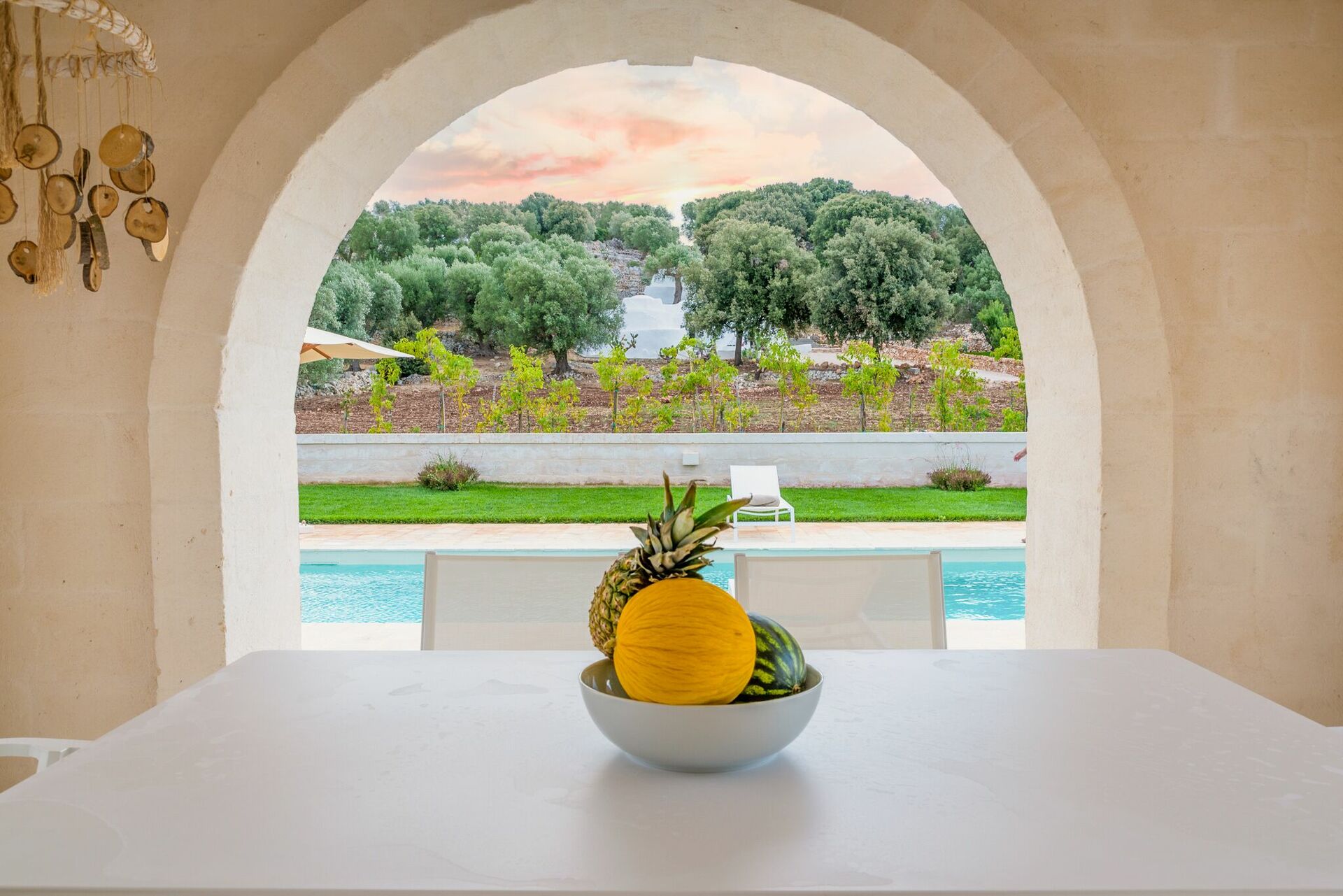 Questa dimora si trova a stretto contatto con importanti centri d'interesse come Ostuni, Cisternino, Alberobello e con la bellissima natura della campagna pugliese. Il giardino e la piscina privata sono a completa disposizione degli ospiti e qui potrete rilassarvi all'aria aperta o a bordo piscina dopo un tour della zona. Il giardino è recintato ed ha alberi da frutto, un orto biologico e un limoneto.