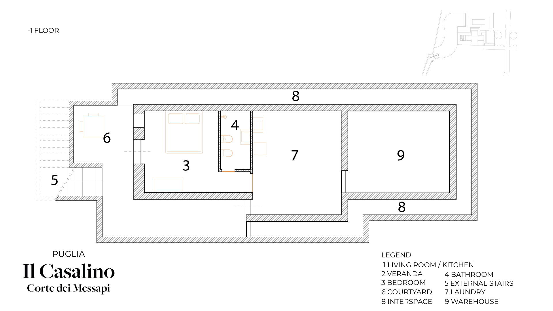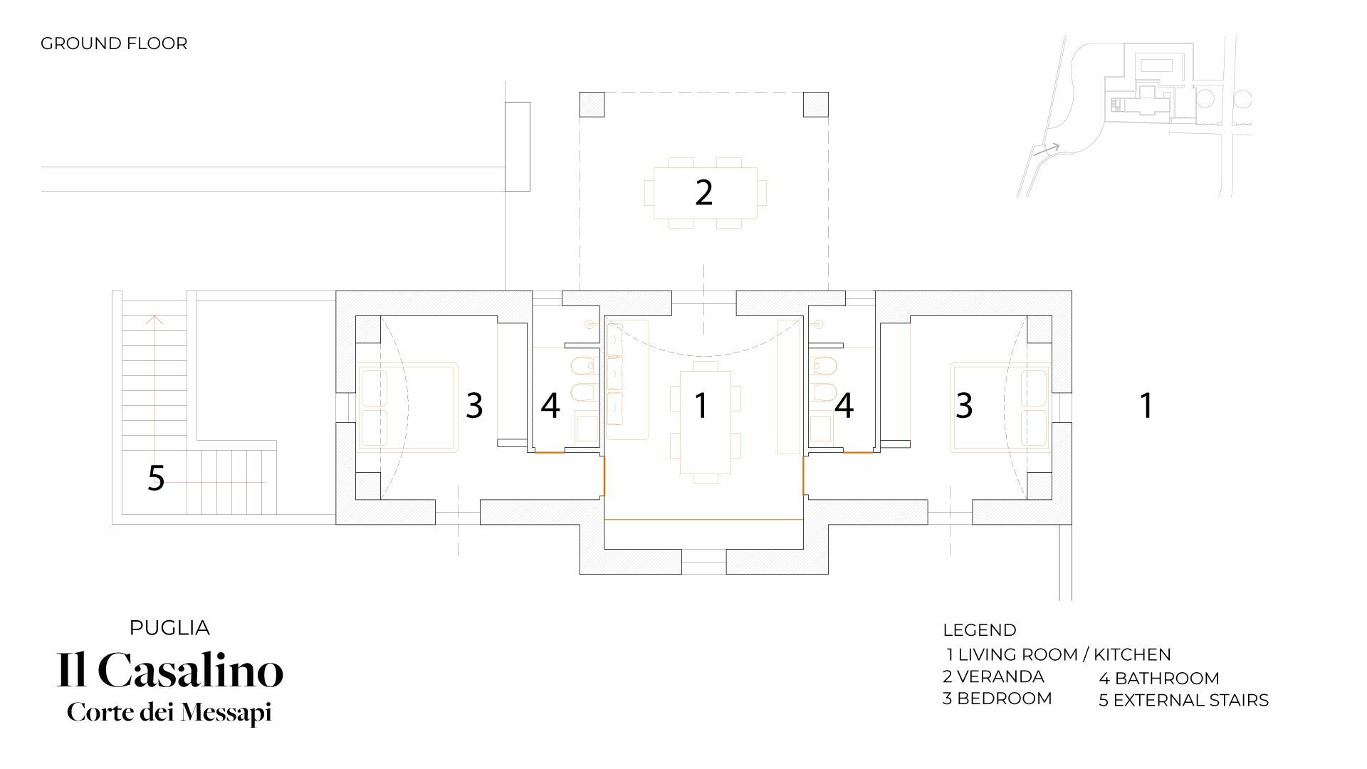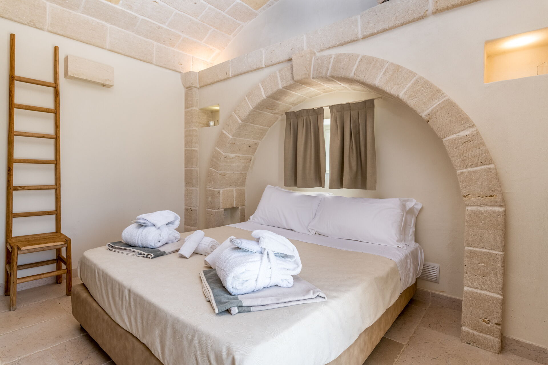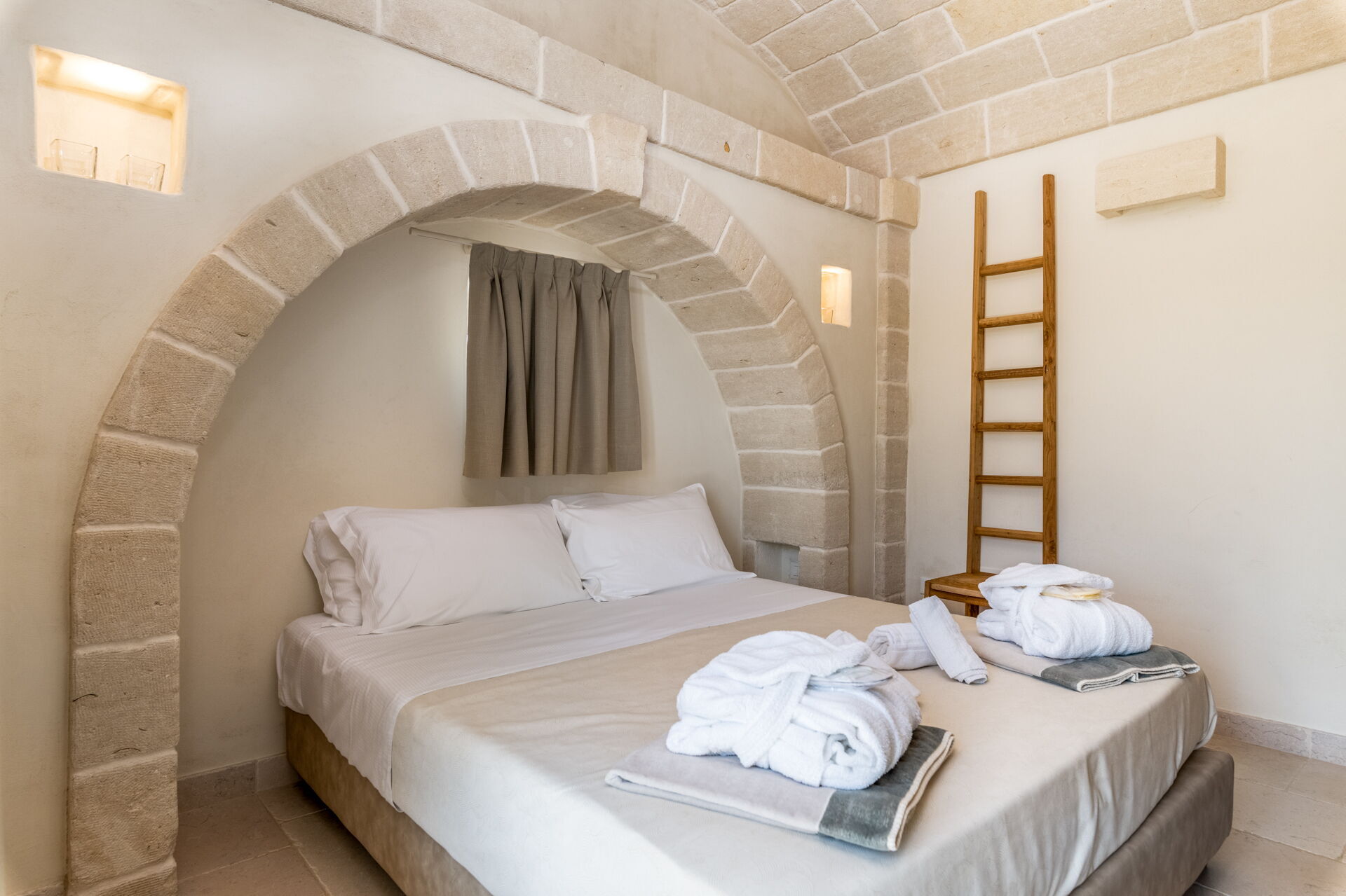 Casalino dei Messapi può ospitare fino a 6 persone ed è composto da due camere matrimoniali al piano terreno e da una terza camera matrimoniale situata al piano inferiore e non collegato internamente.
