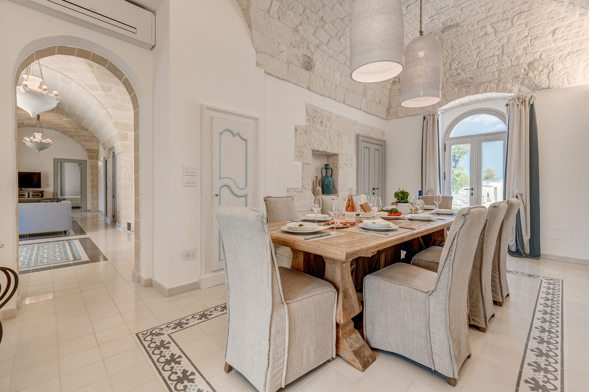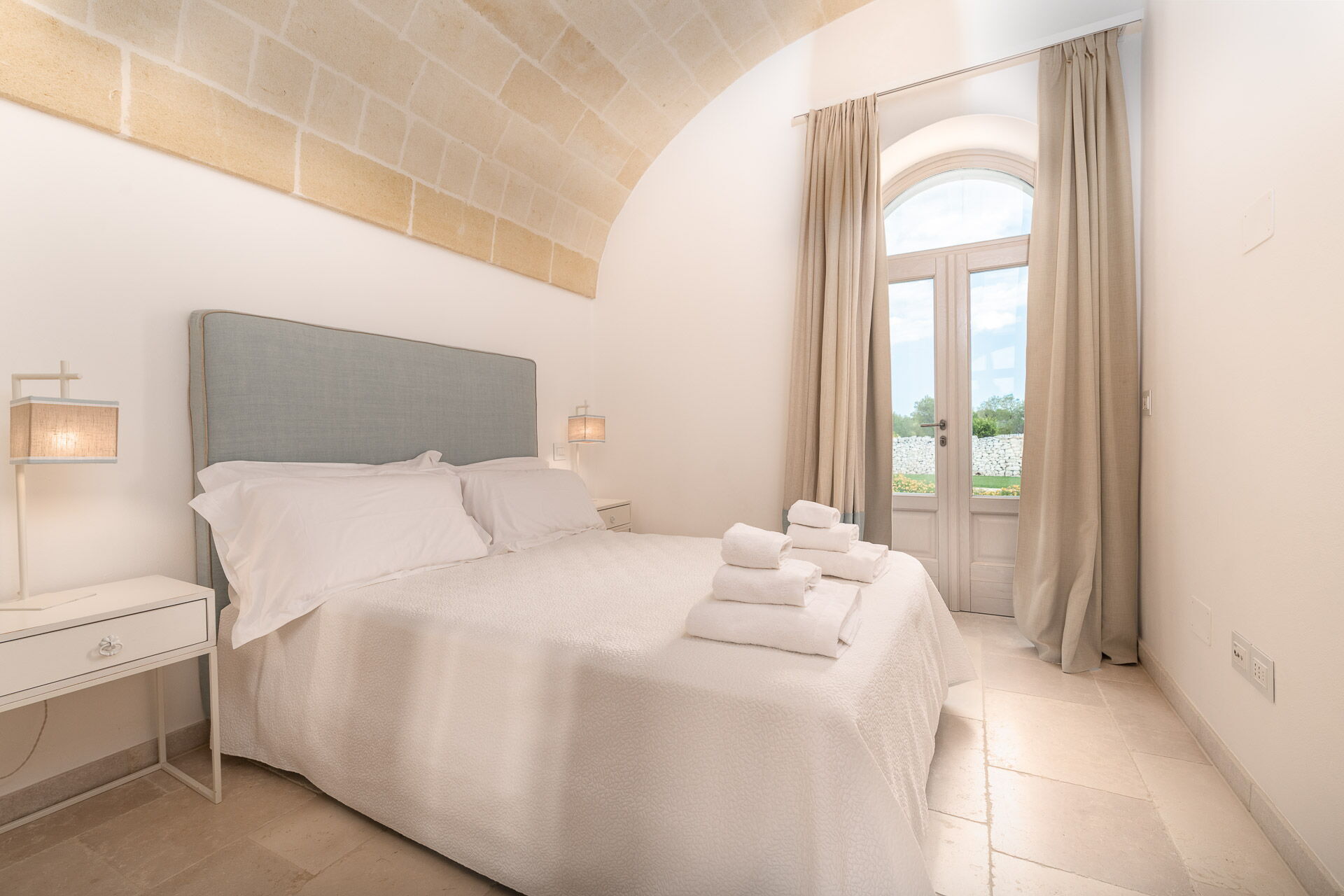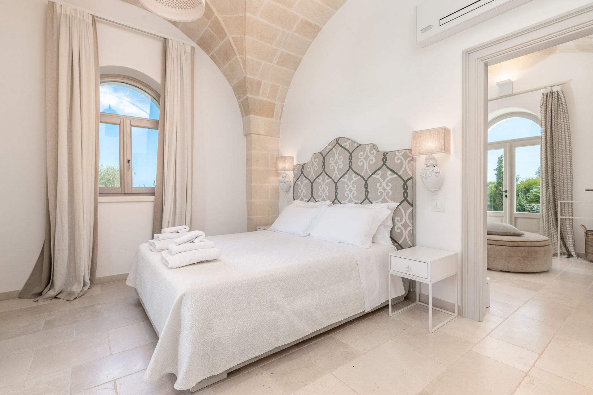 Ricostruita sulle fondamenta di una antica masseria, la fantastica villa in affitto dispone di 5 camere da letto poste su due livelli, ospitando fino a 9 persone.