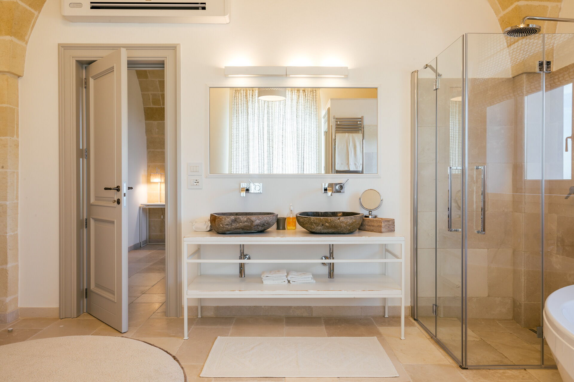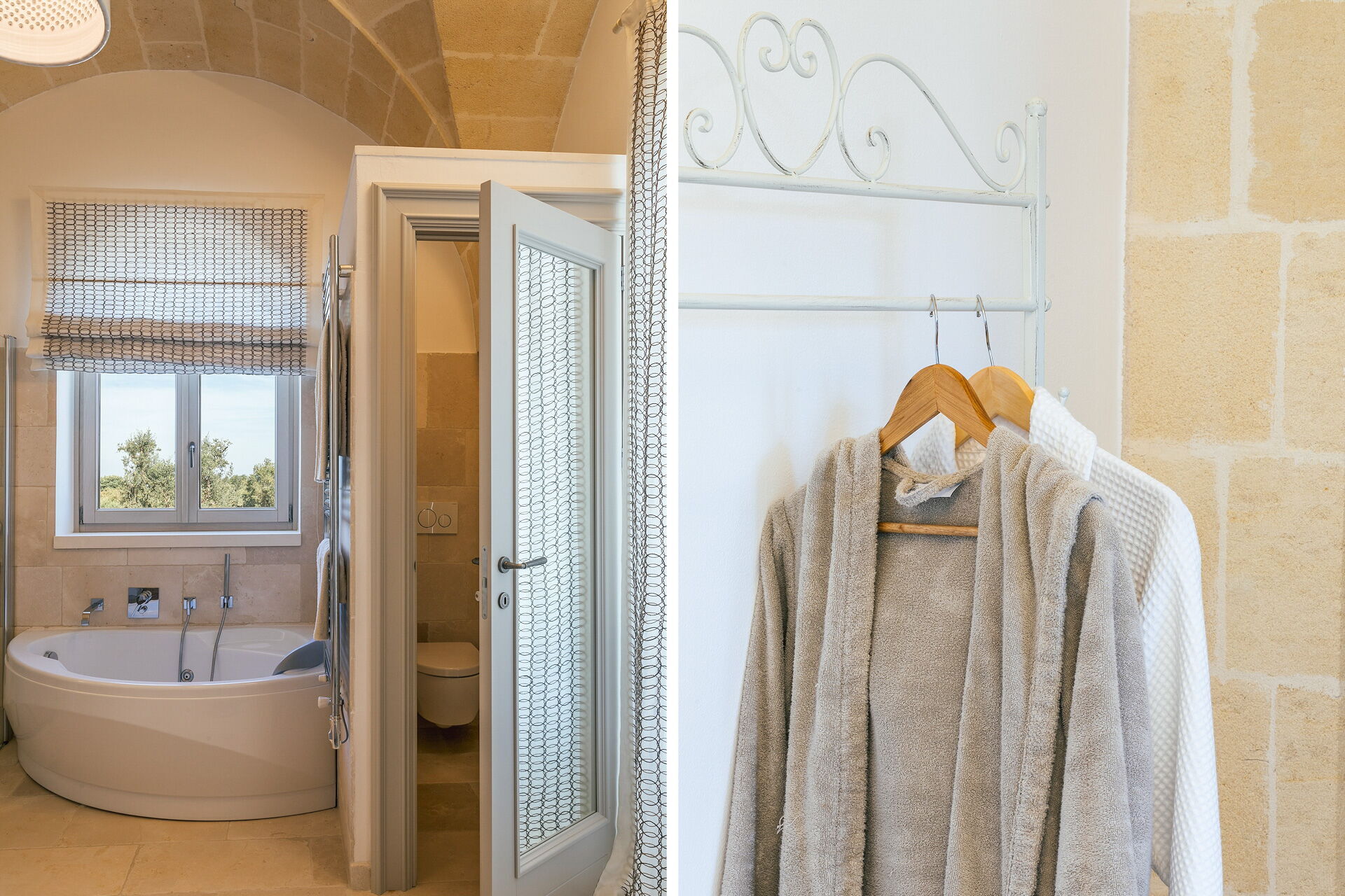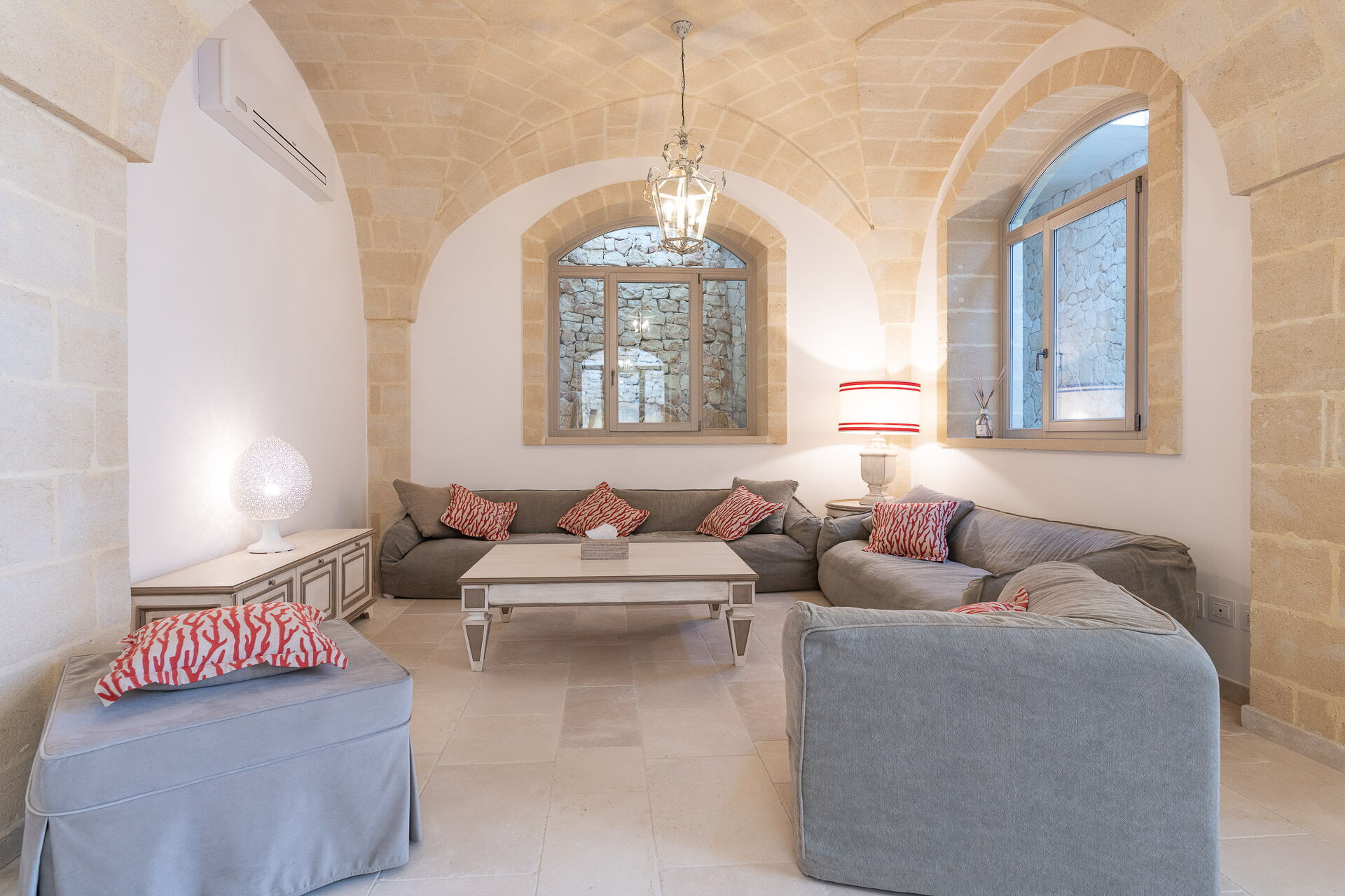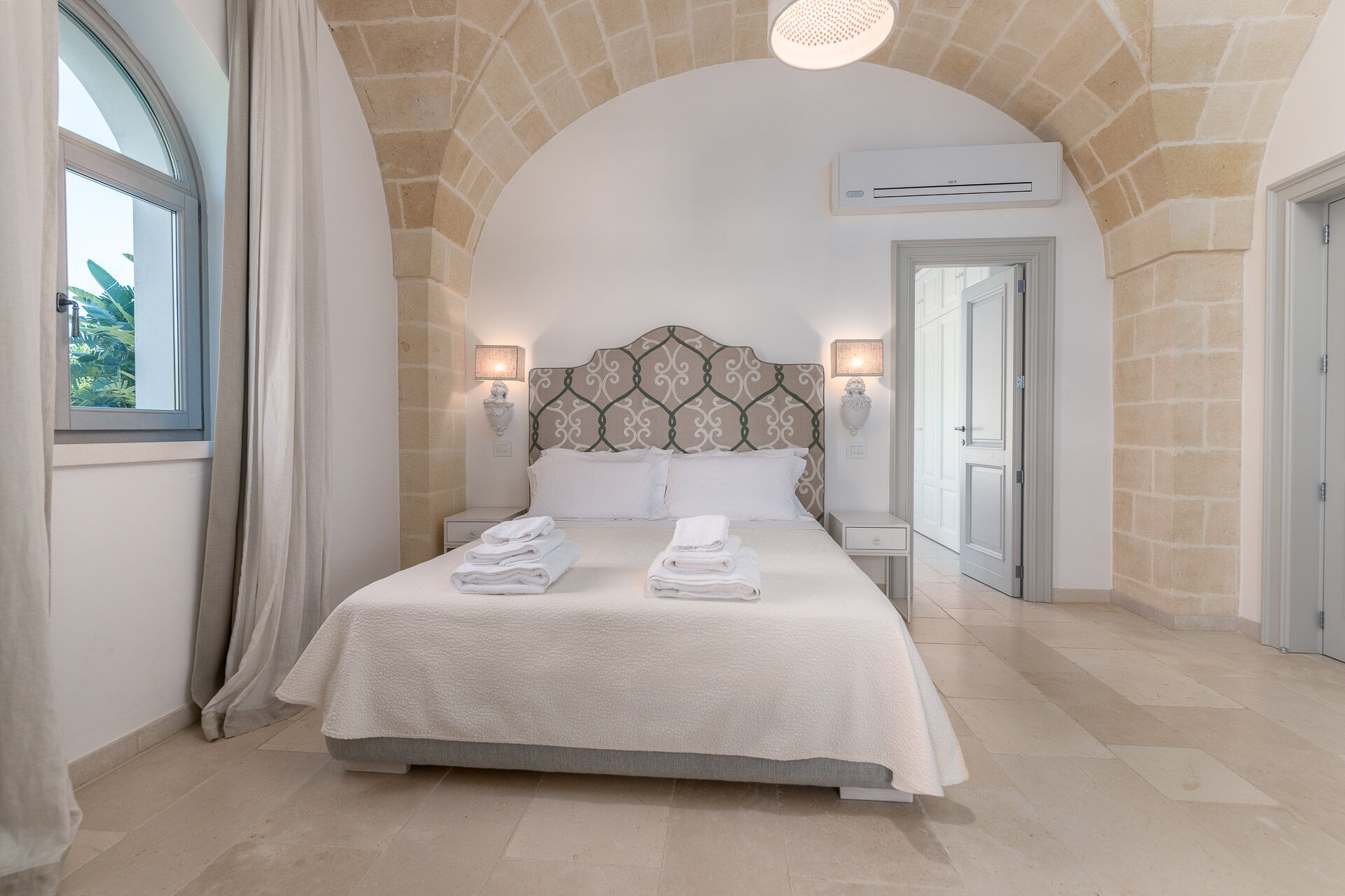 Ricostruita sulle fondamenta di una antica masseria, la fantastica villa in affitto dispone di 5 camere da letto poste su due livelli, ospitando fino a 9 persone.