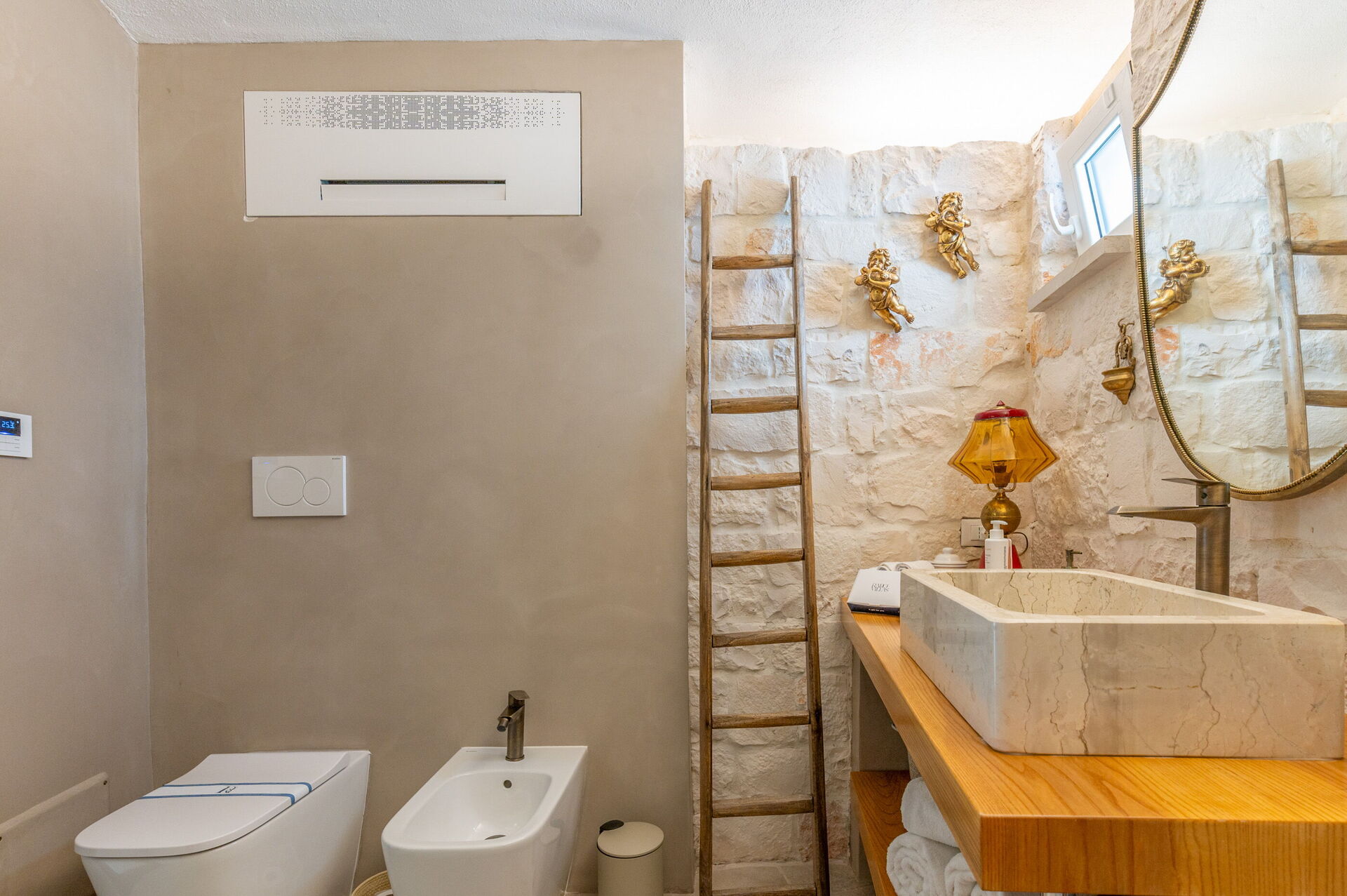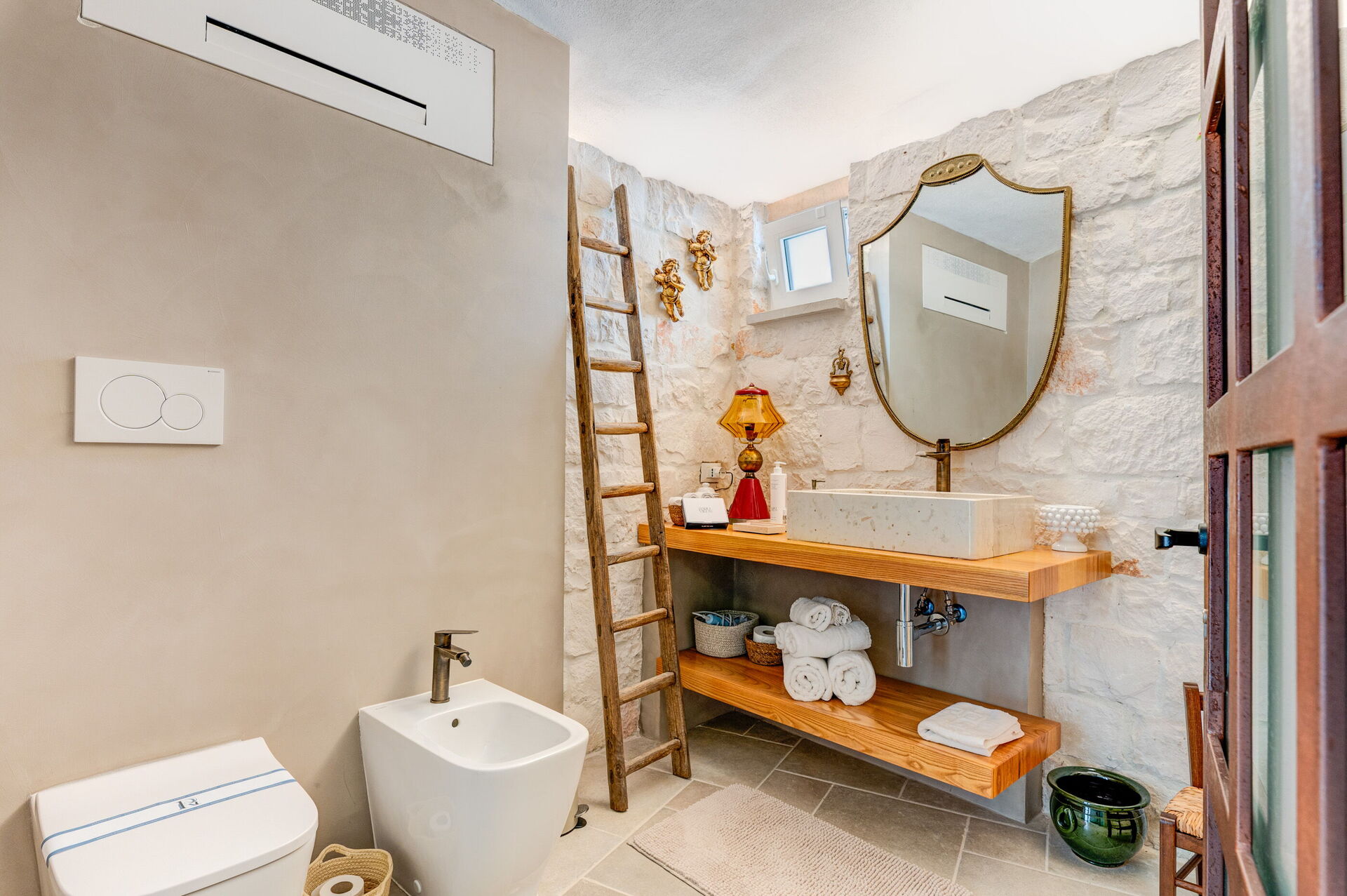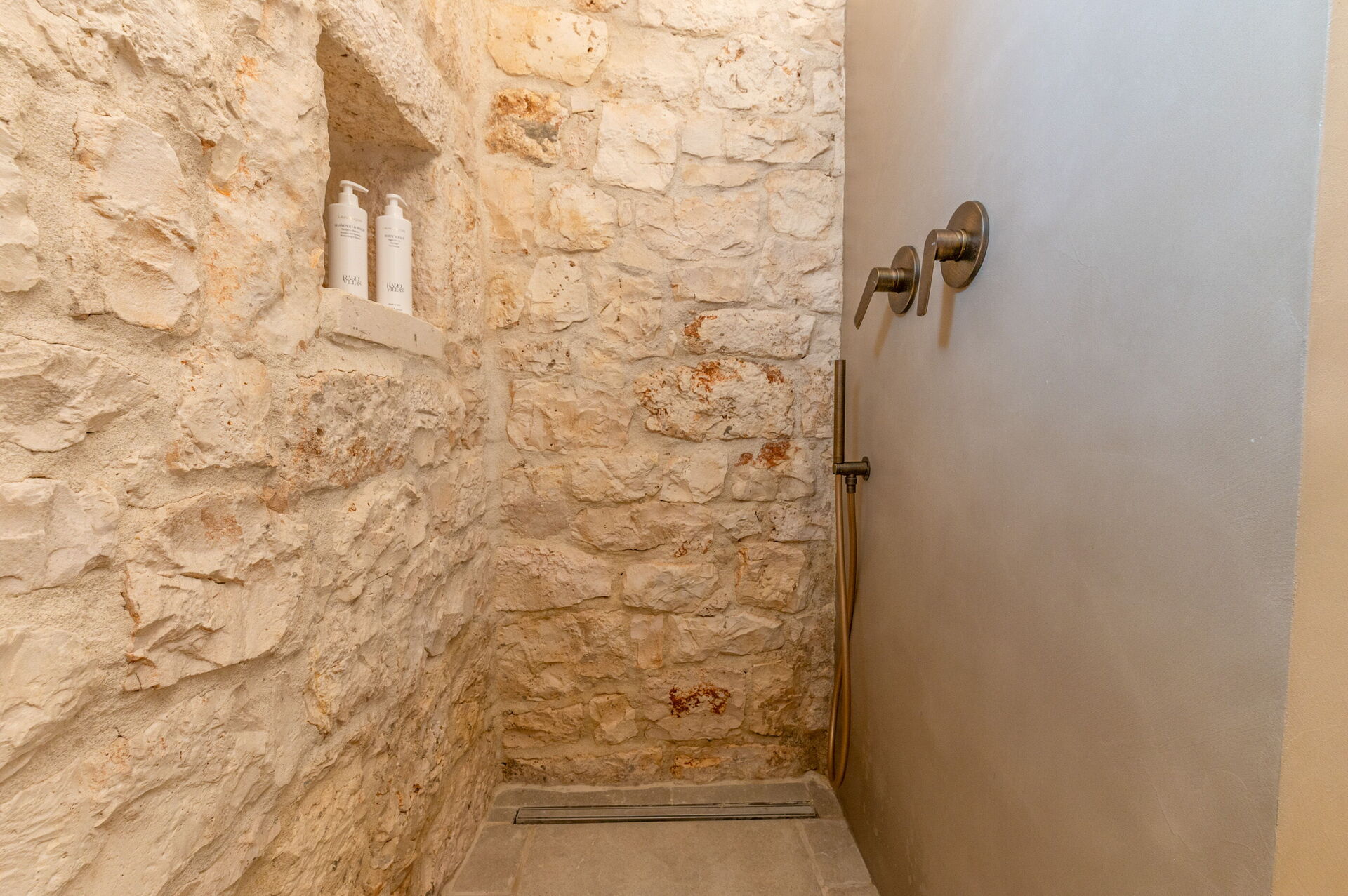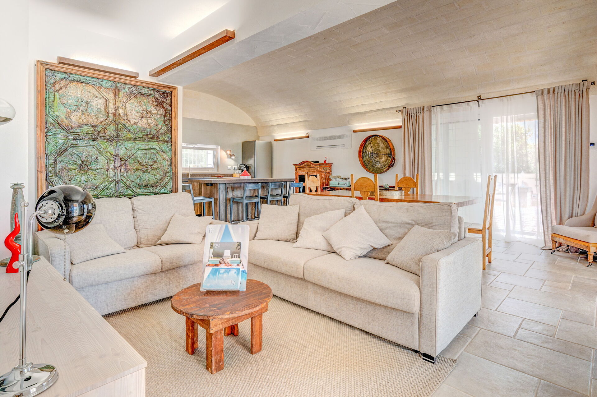Internamente è stata finemente arredata con gusto e semplicità, creando un contrasto tra lo stile classico e i materiali tradizionali come la pietra locale e il legno.