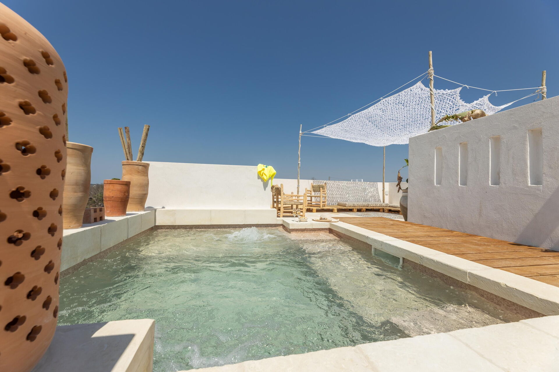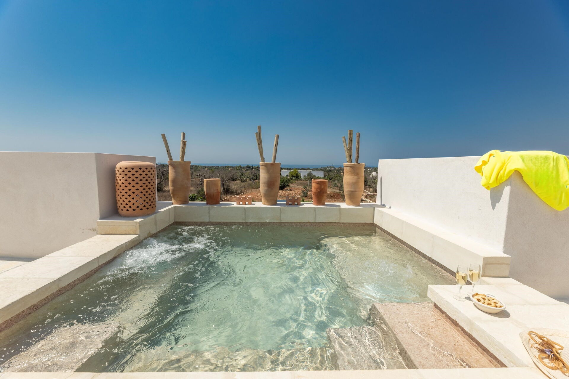 Le panoramiche zone esterne offrono numerose aree che permettono agli ospiti di trascorrere un piacevole soggiorno in famiglia: sarà possibile mangiare all’aperto, rilassarsi a bordo piscina e nella zona solarium. A disposizione degli ospiti anche una vasca idromassaggio esterna situata su una panoramica terrazza con vista sul mare e sui tramonti.