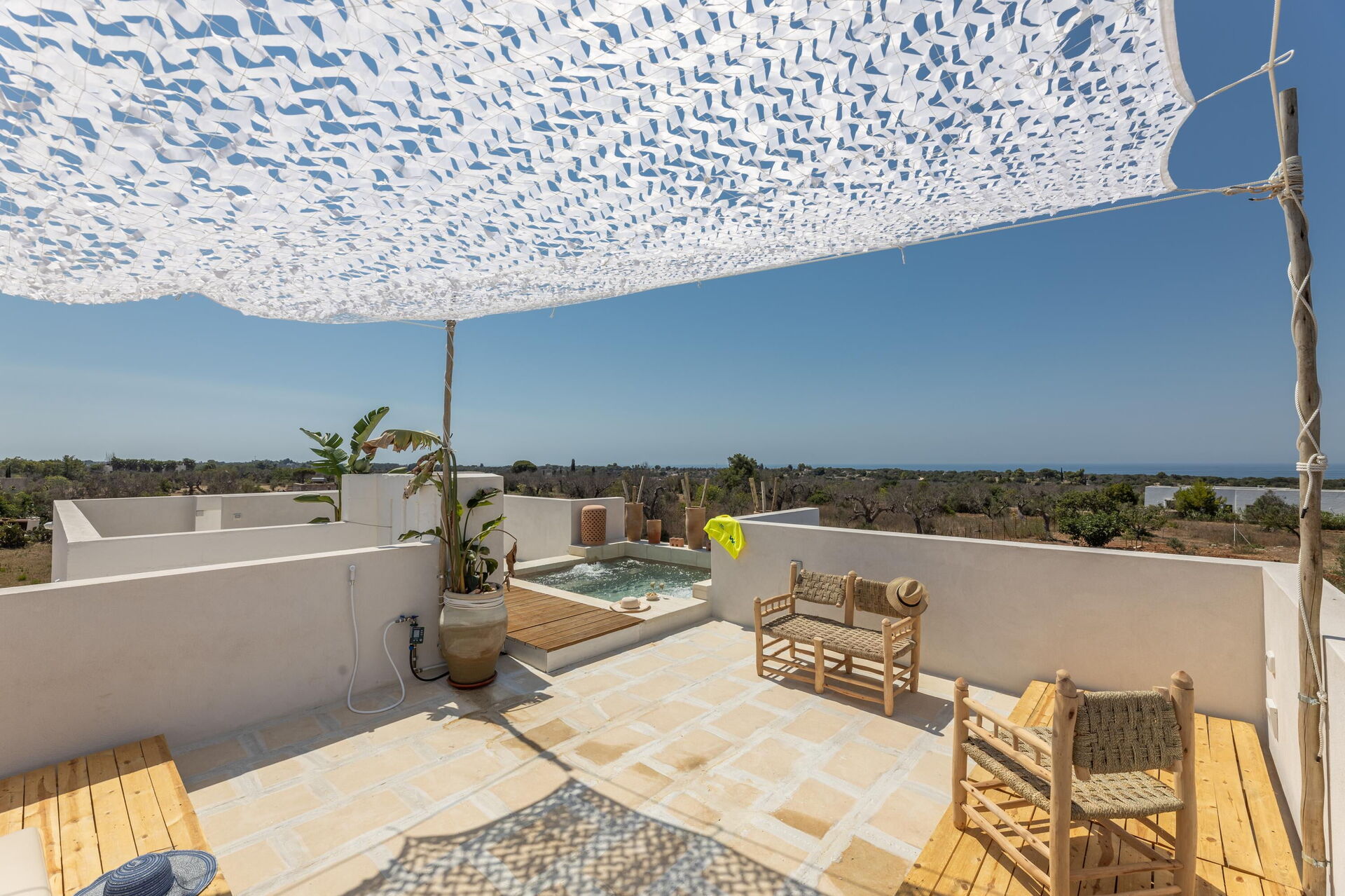 - terrazza solarium con vista panoramica sul mare con vasca idromassaggio (3 x 2,5 metri; profondità minima: 0,20 metri; profondità massima: 0,80 metri; riscaldabile fino a circa 30-33°C avvisando almeno 1 giorno prima dell'arrivo