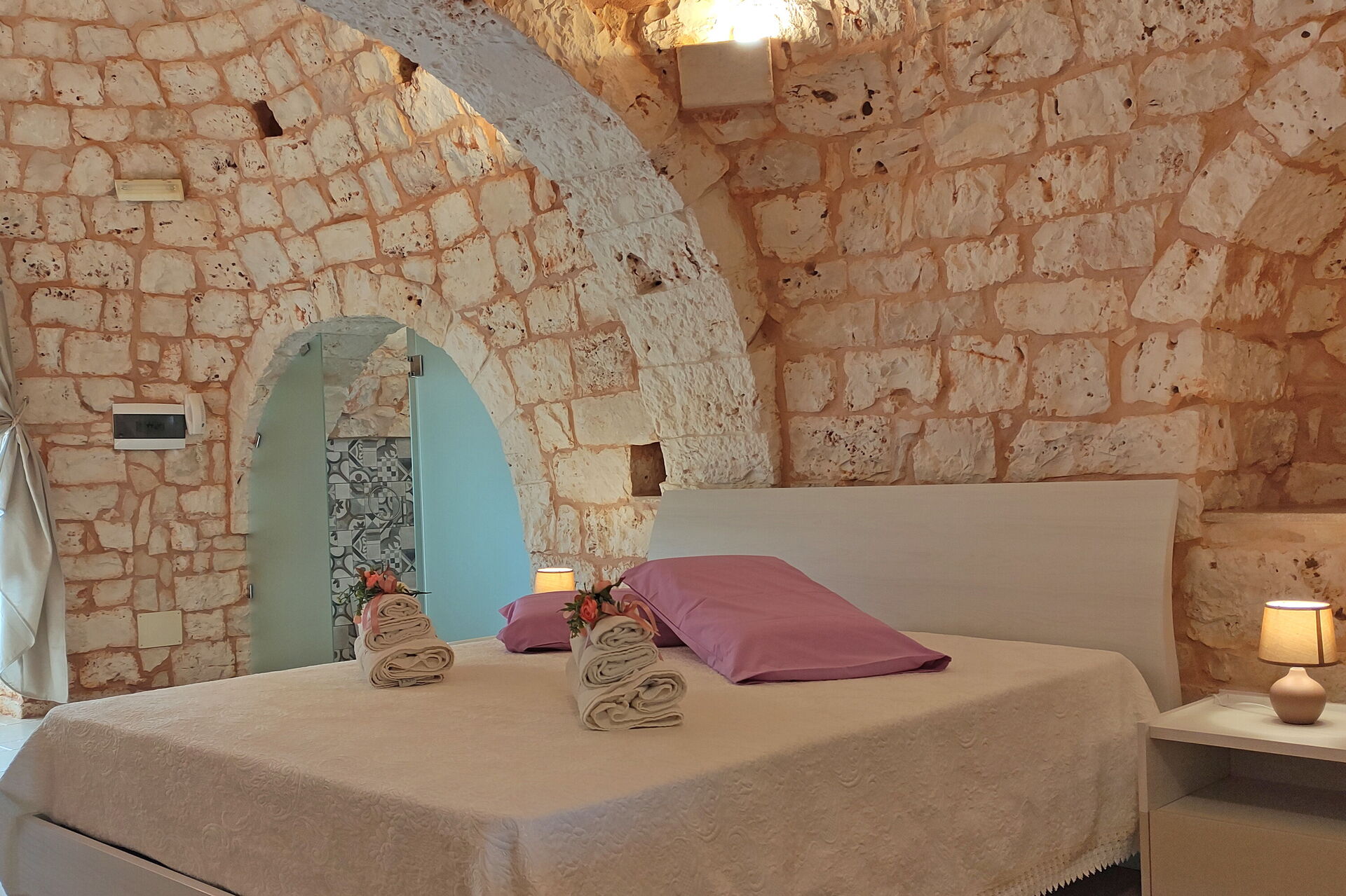 Trullo Santo Stefano is beautifully restored and lovingly maintained, with a big, sparkling clean swimming pool next to a BBQ and wood-fired pizza oven (and plenty of olive wood for fuel). The peaceful silence of the surrounding olive groves is perfect for restful sleep, with the strong WiFi signal the only reminder of a busier world beyond its gates.