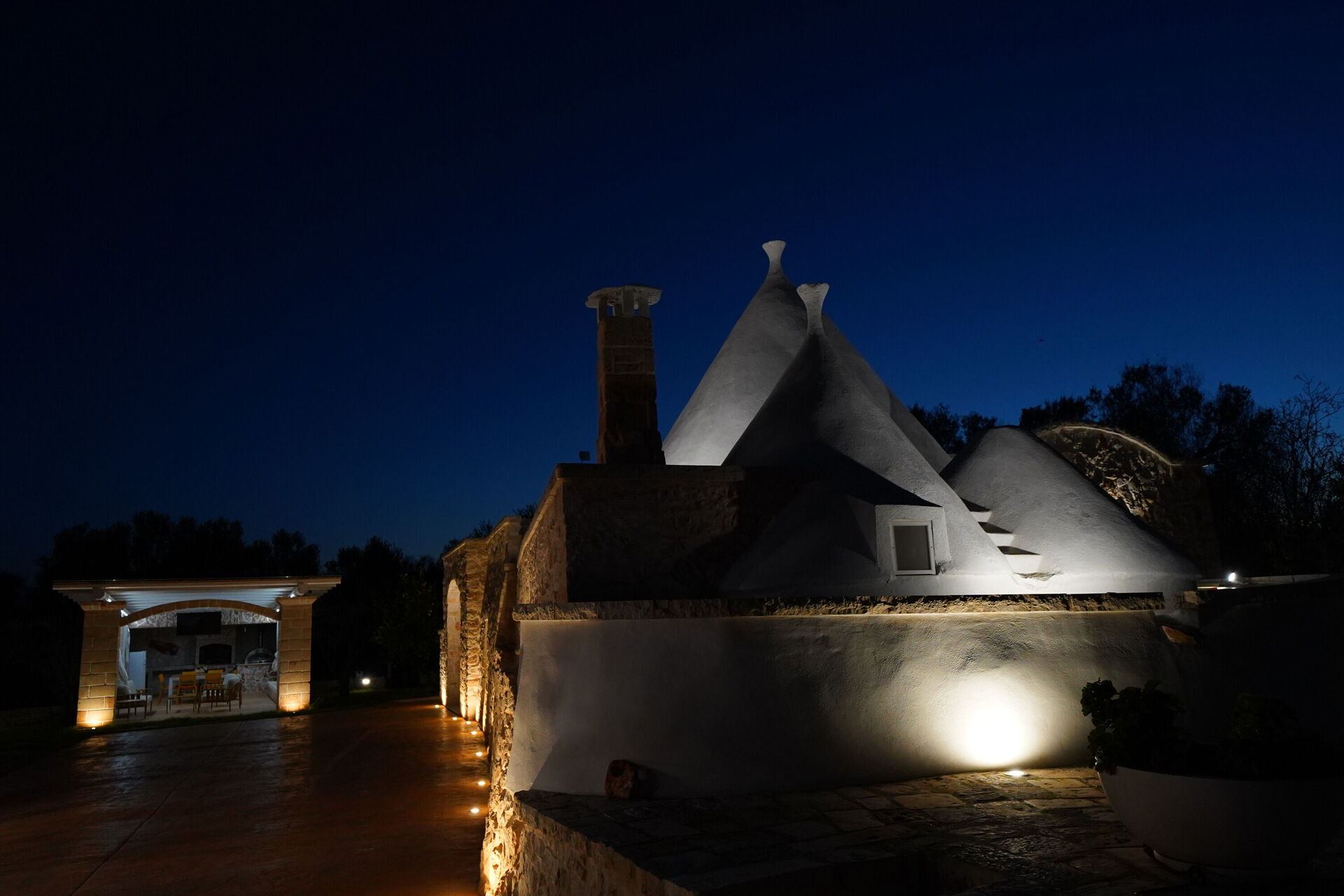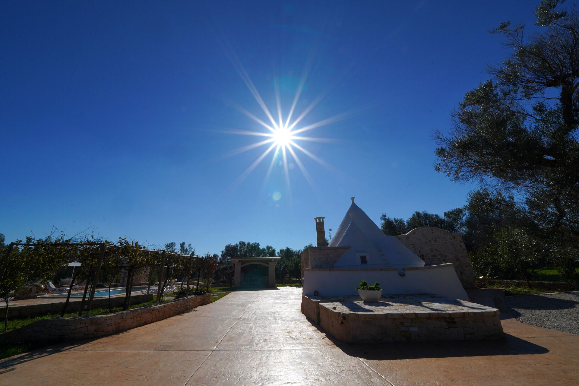 All'esterno, Trullo Samanta è circondato da un ampio terreno molto curato e con alberi da frutto e olivi.