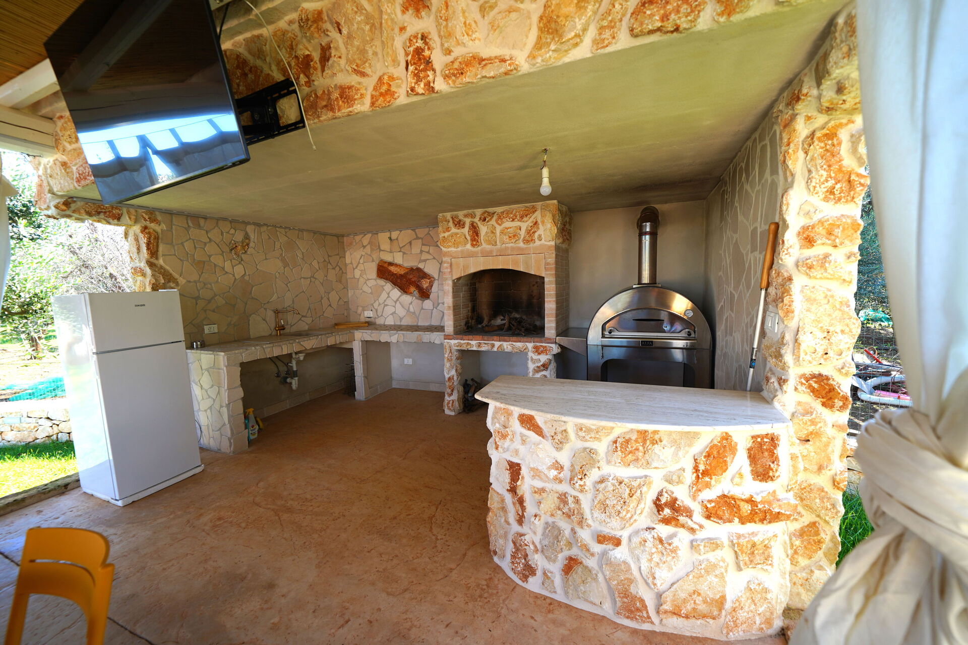 - veranda coperta ed attrezzata con tavolo, sedie, barbecue e forno a legna