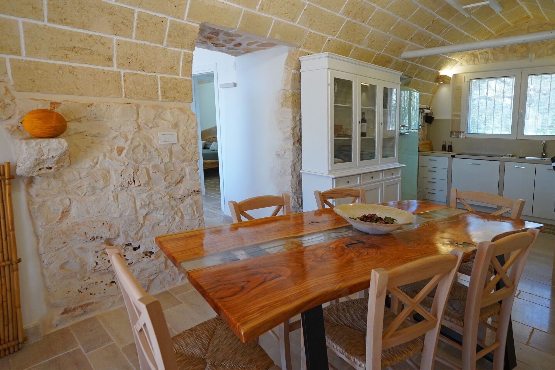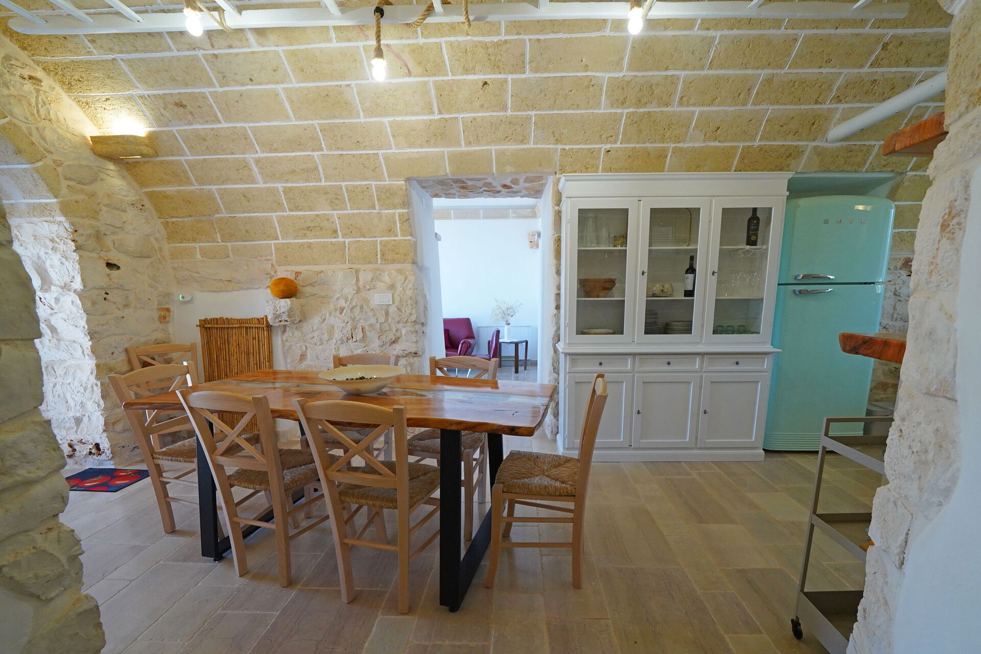 Trullo Samanta è completamente indipendente ed è stato recentemente ristrutturato (Ottobre 2025): all'interno, la proprietà in affitto è stata arredata con gusto e semplicità, creando un contrasto tra lo stile moderno e la tradizione dei materiali utilizzati come la pietra e legno di ulivo, tipici dei trulli in Salento. Gli accoglienti ambienti sono dotati di ogni comfort e possono ospitare fino a 6/7 persone grazie a 3 camere da letto.