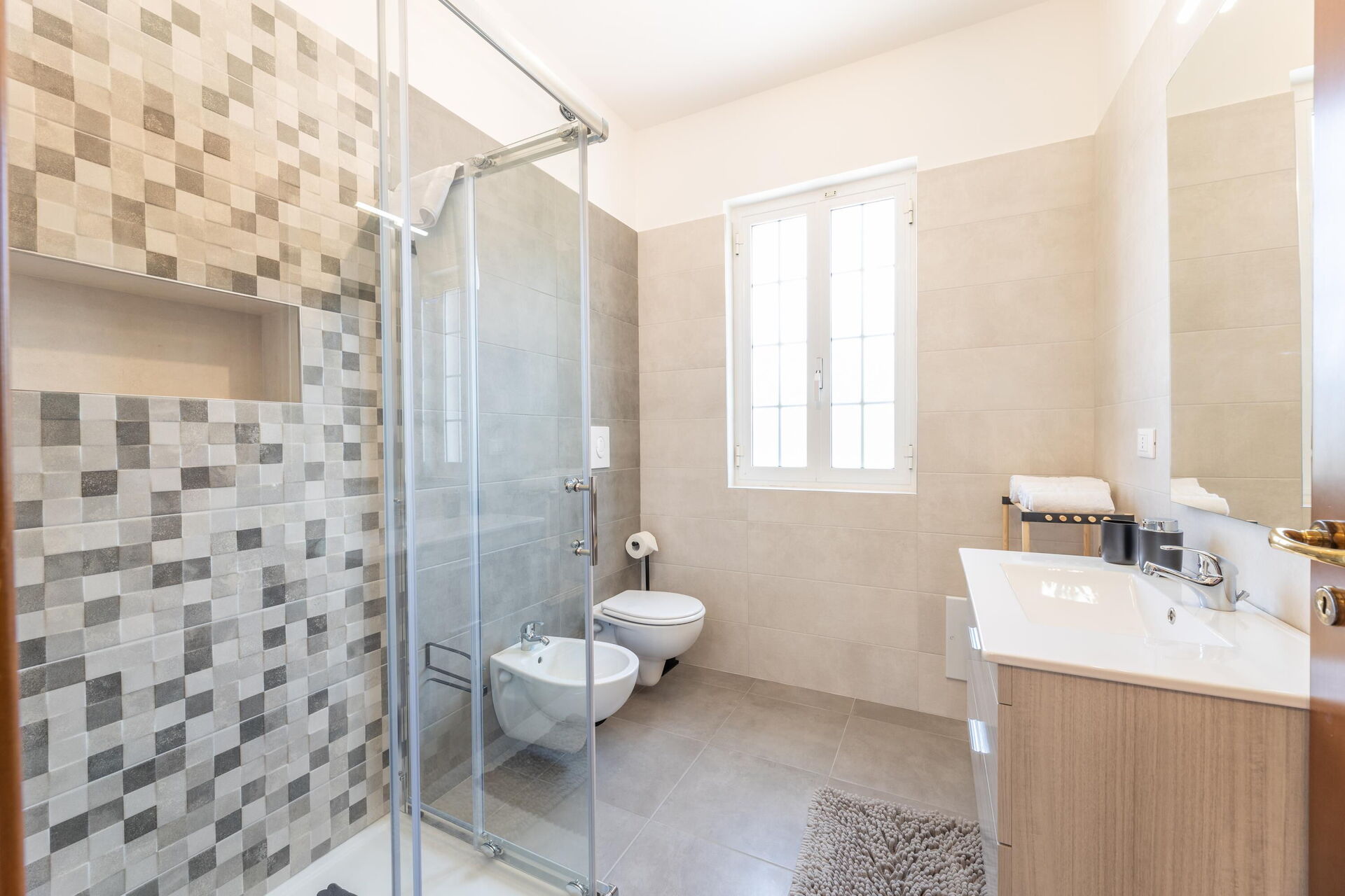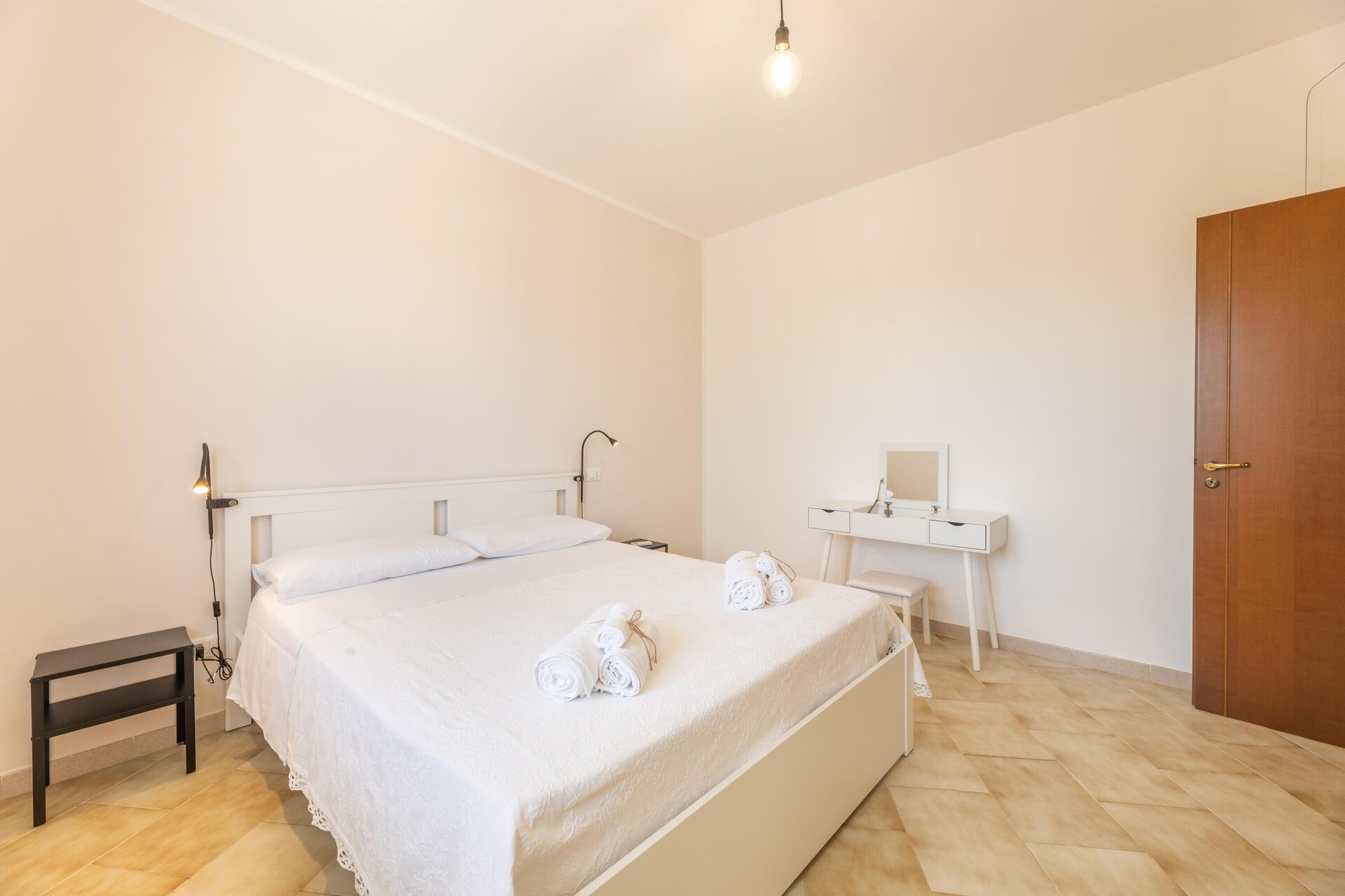 Piano terreno: cucina (piano cottura, forno, freezer, frigorifero, lavastoviglie, macchina da caffè), soggiorno (aria condizionata, tv) con divano letto matrimoniale (extra e su richiesta) e zona pranzo, bagno con doccia, 2 camere matrimoniali (aria condizionata, zanzariera), bagno con doccia.