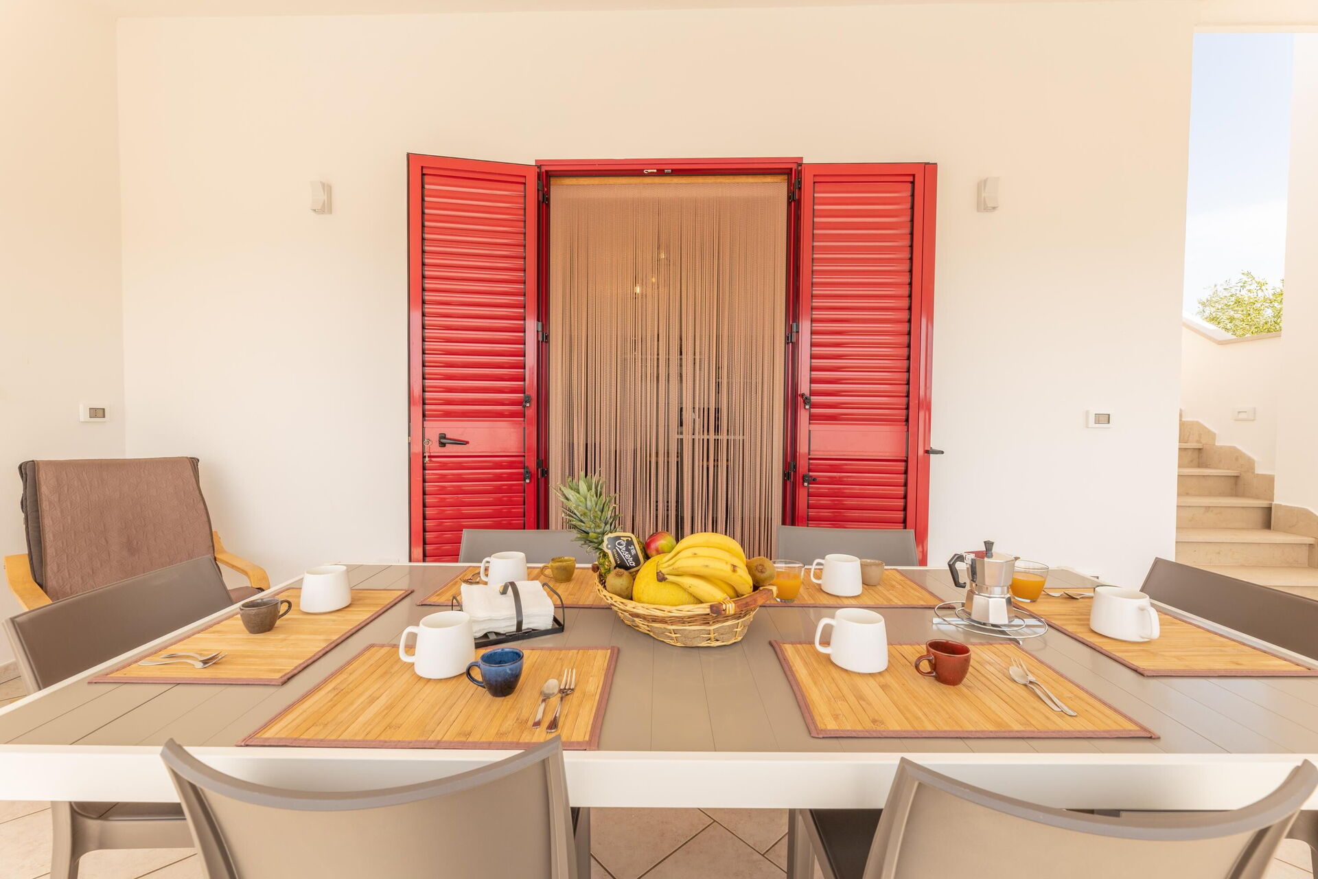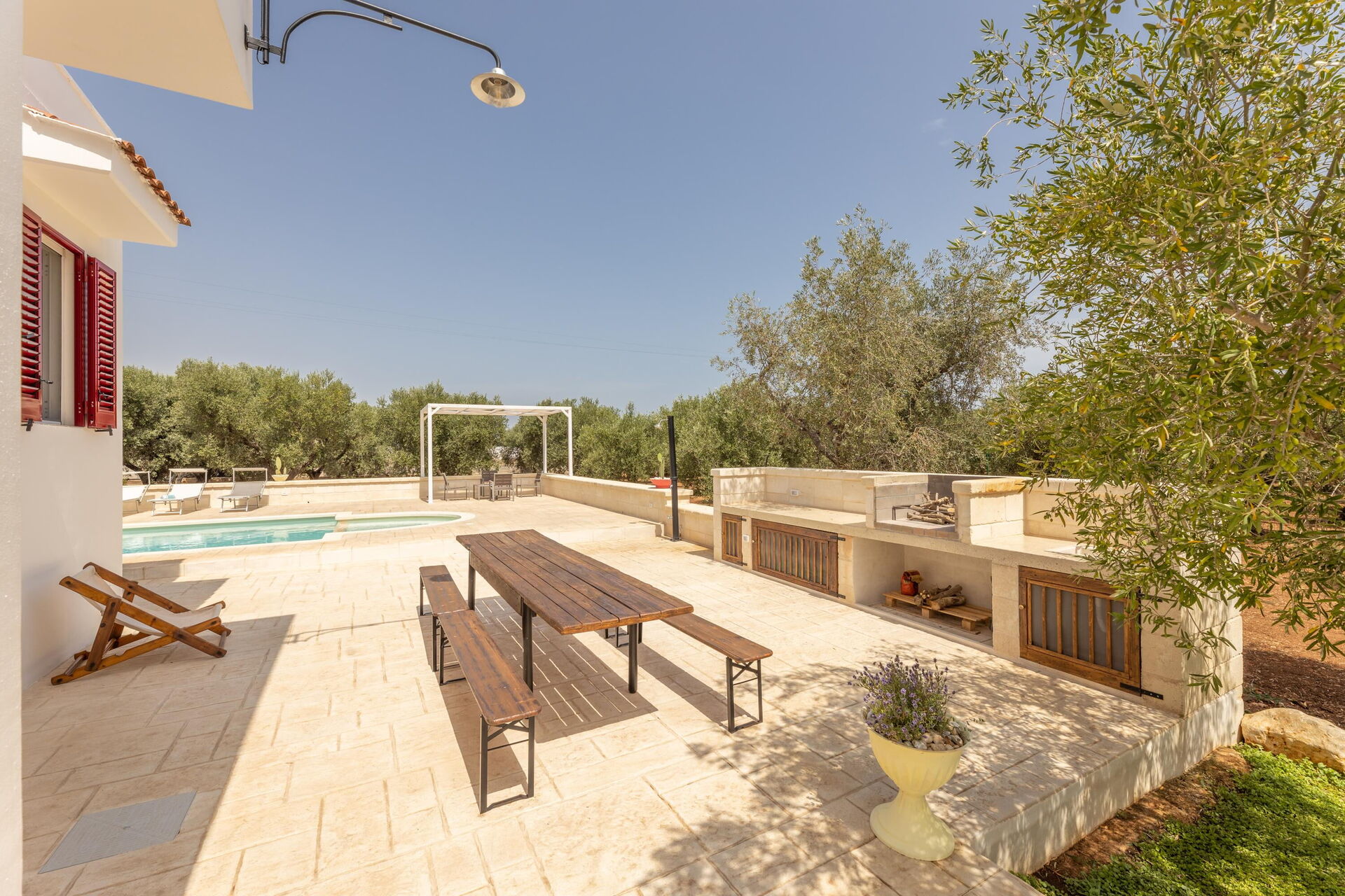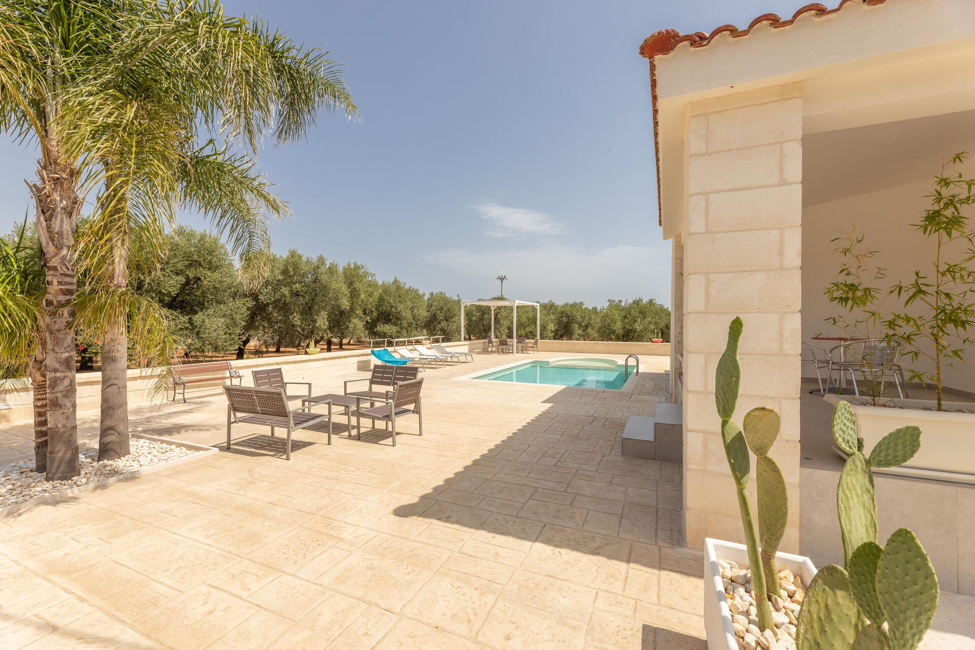 Le panoramiche zone esterne offrono numerose aree attrezzate che permettono agli ospiti di trascorrere un piacevole soggiorno in famiglia o tra amici: sarà possibile mangiare all’aperto godendo di una fantastica vista sugli ulivi o rilassarsi a bordo piscina o nella zona solarium. A disposizione degli ospiti c'è anche un giardino con ulivi secolari e piante tipiche della macchia mediterranea.