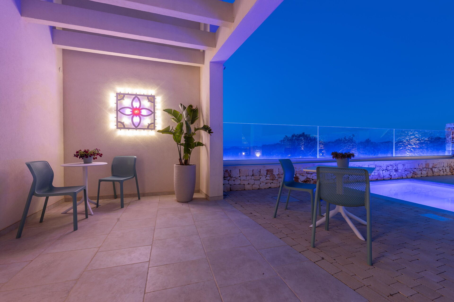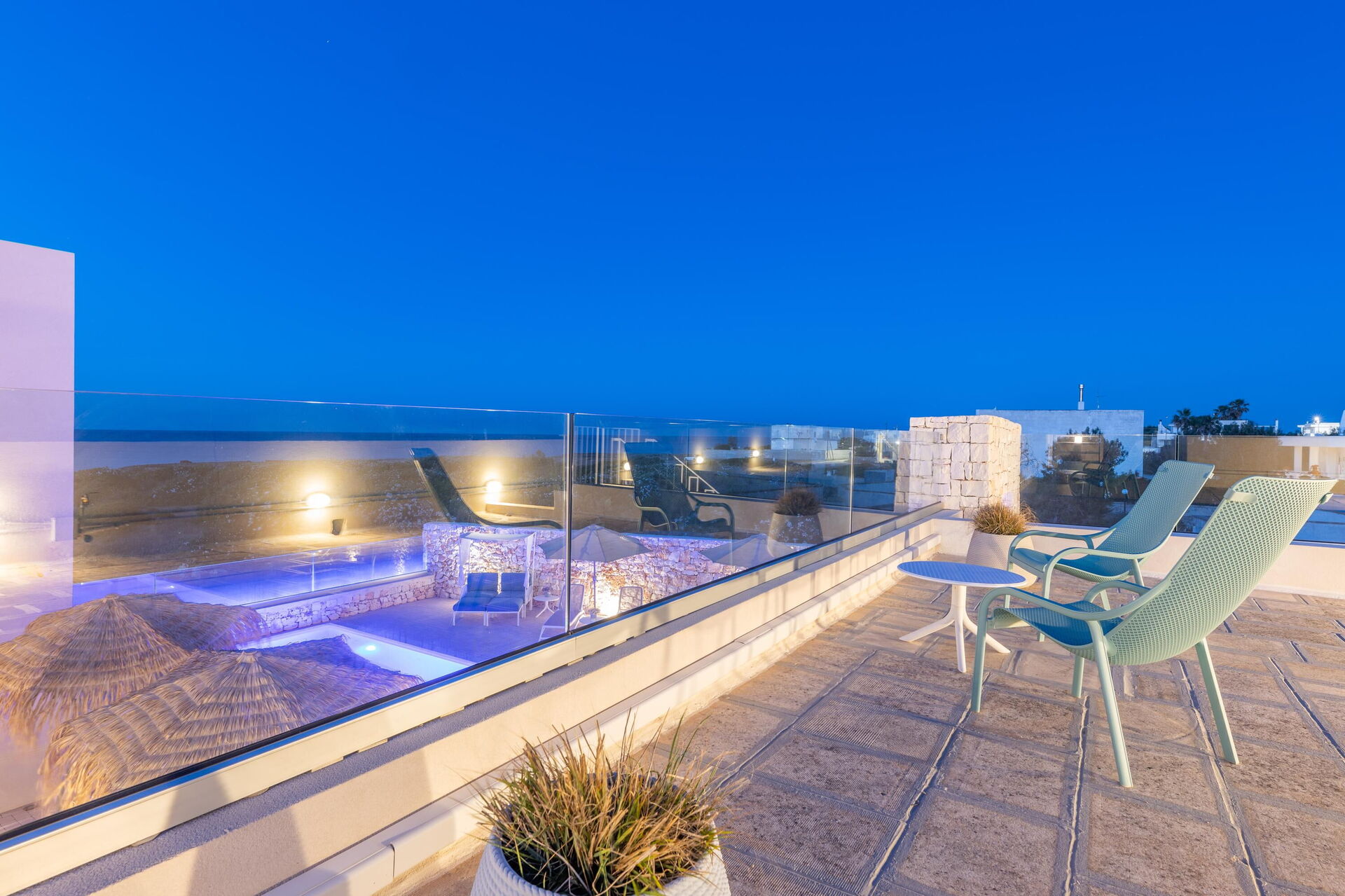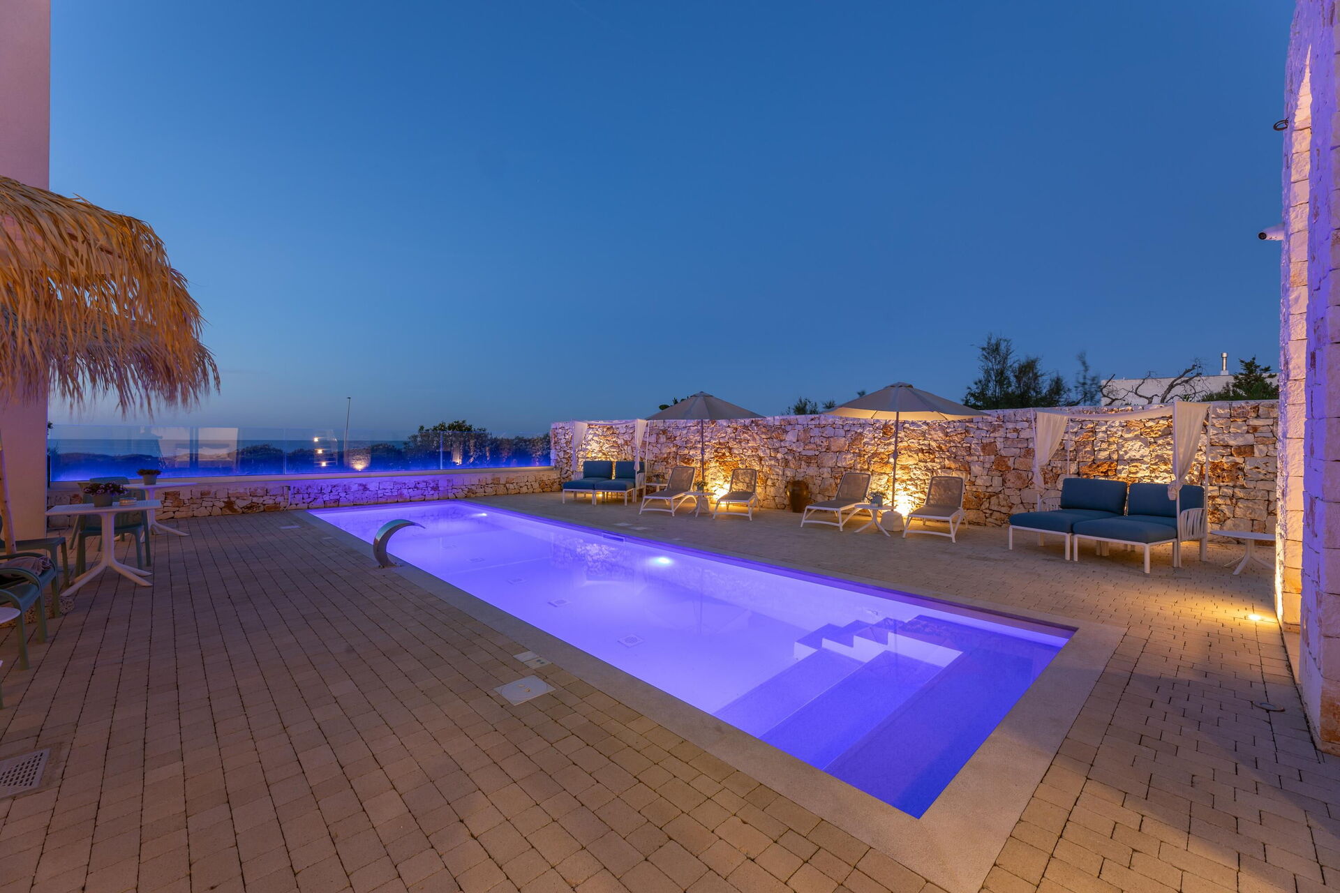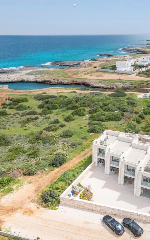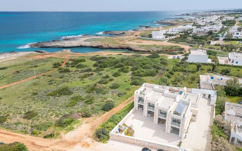 Le panoramiche zone esterne offrono numerose aree comuni che rappresentano il punto forte della proprietà: avrete modo di rilassarvi a bordo piscina, nelle zone adibite a solarium e nella terrazza con vista panoramica mozzafiato sul mare: tutto questo rende questa villa il luogo ideale per rilassarsi insieme ad amici e familiari sotto caldo sole della Puglia.