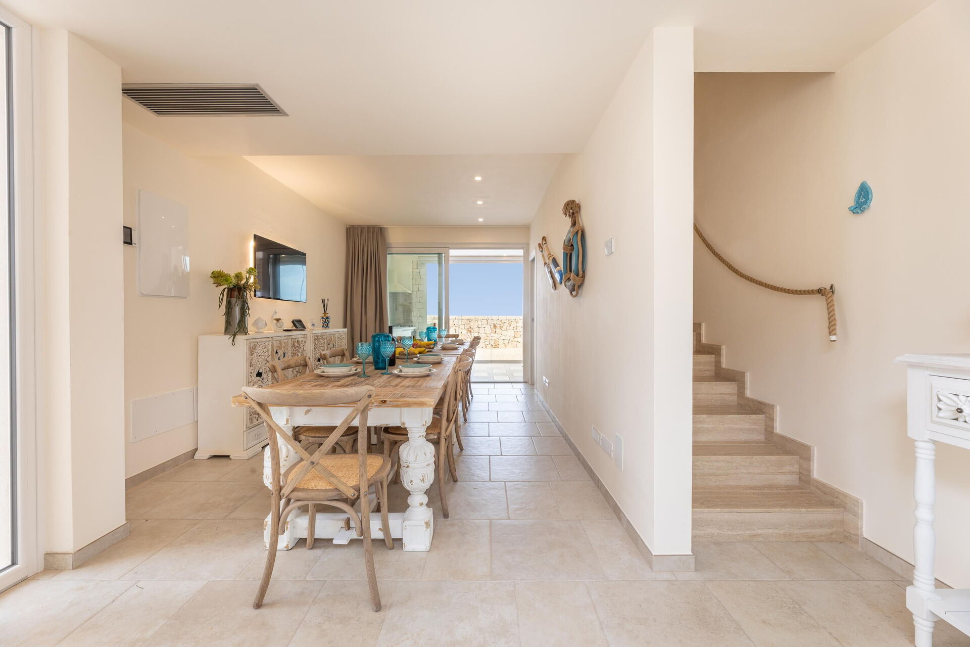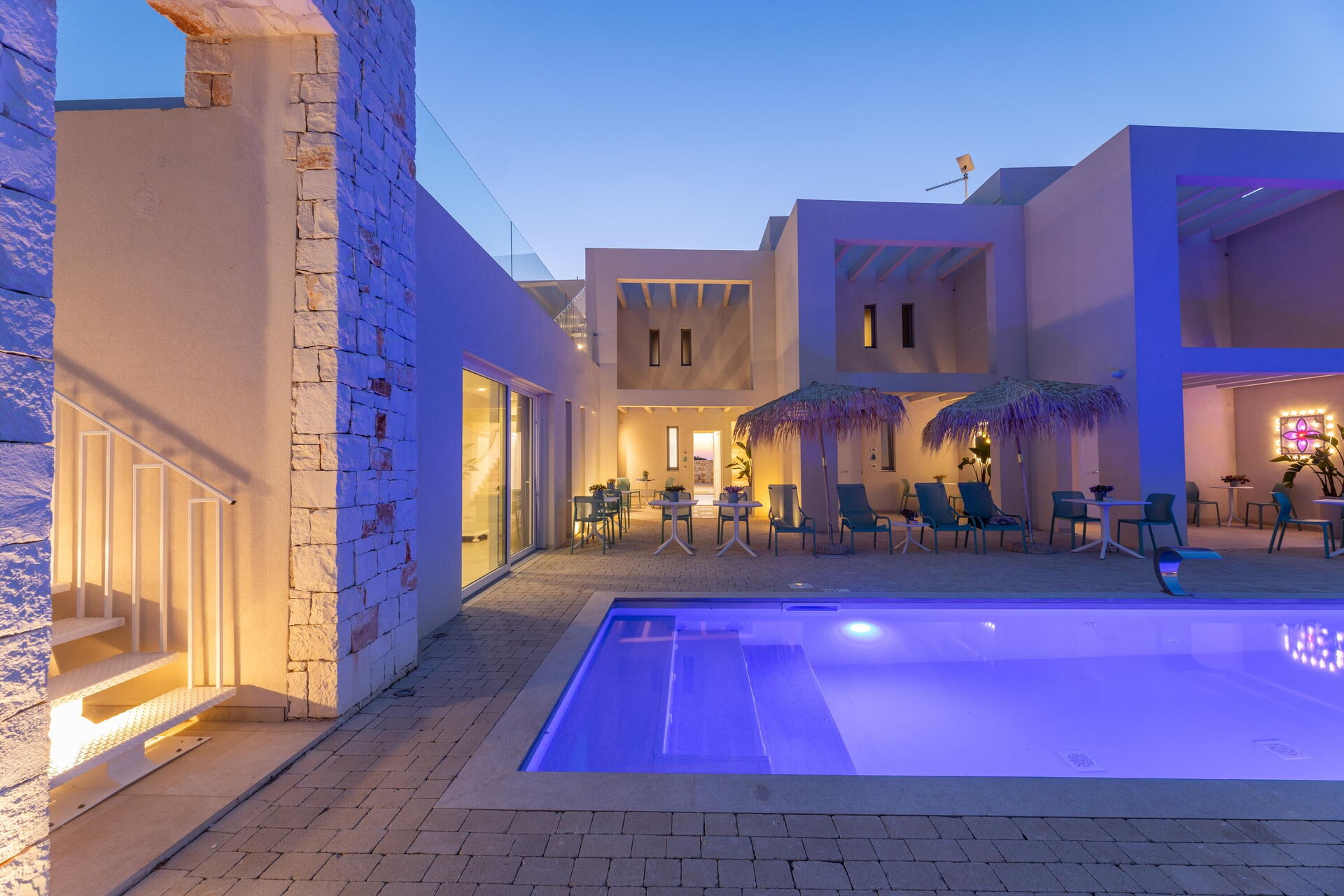 La villa dispone di accoglienti e luminosi ambienti interni arredati in stile moderno e progettati per rispondere alle esigenze del vivere contemporaneo.