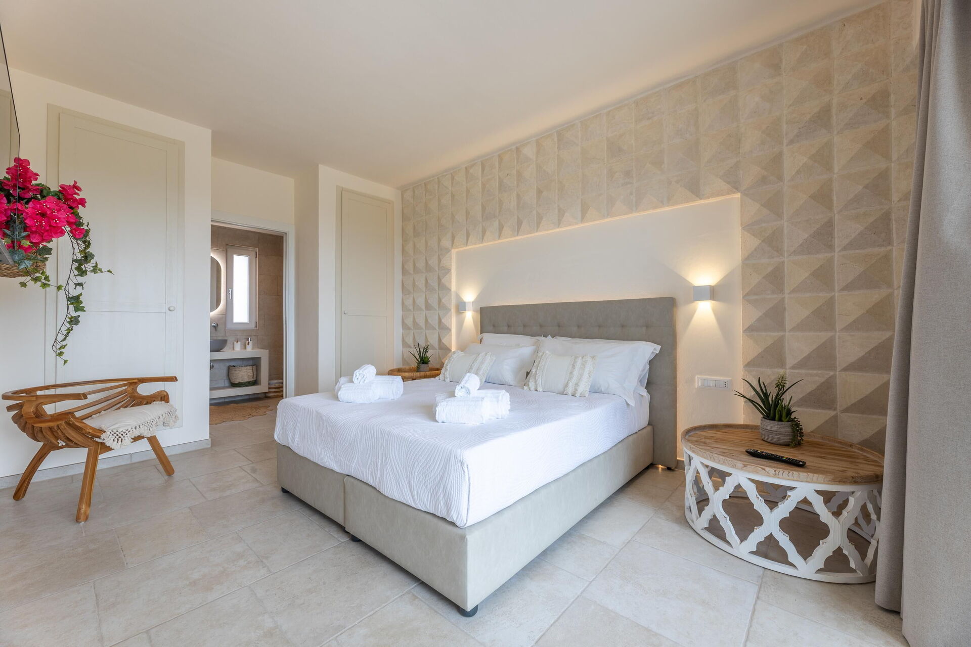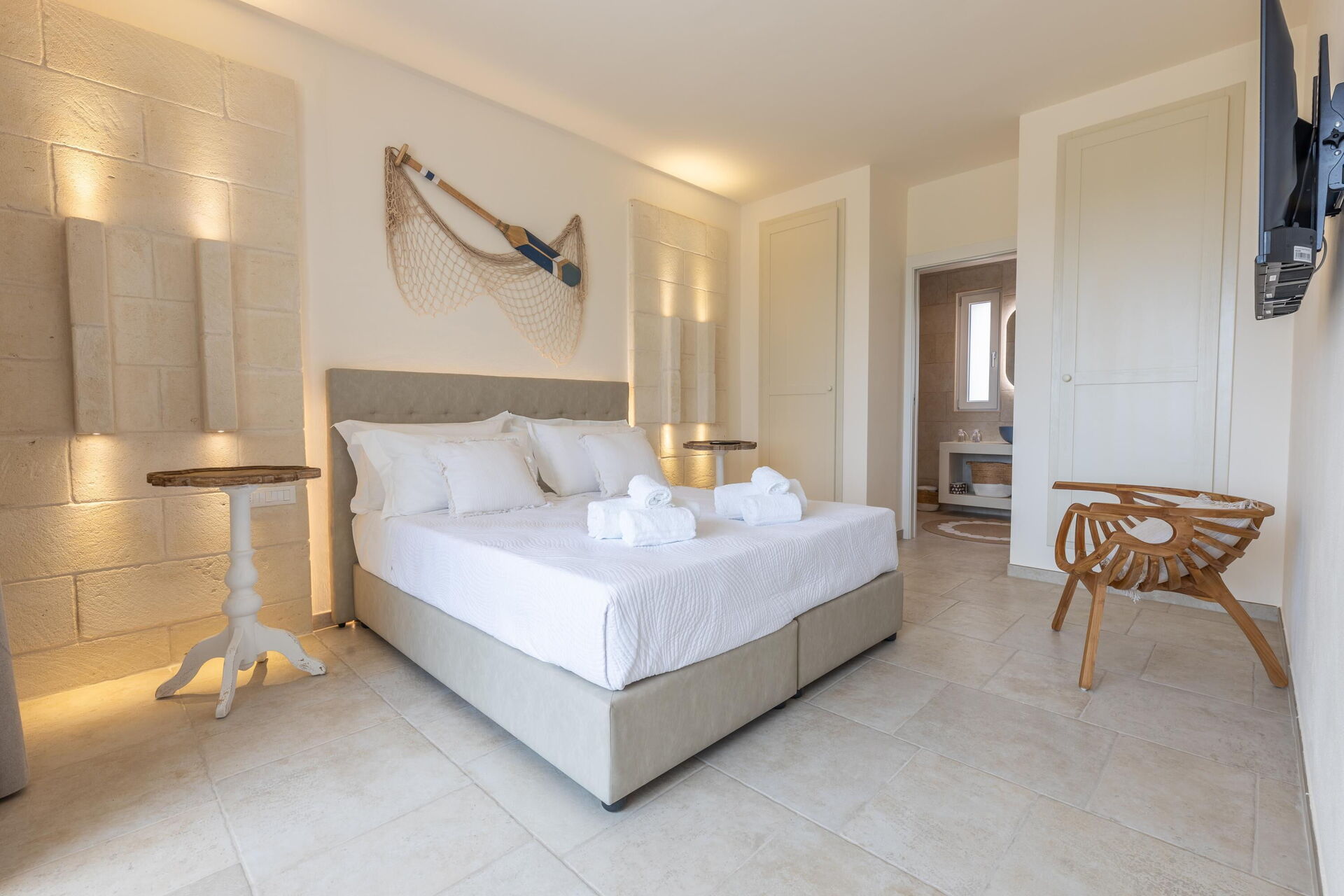 Piano primo: camera matrimoniale con bagno privato con doccia e con accesso a balcone.