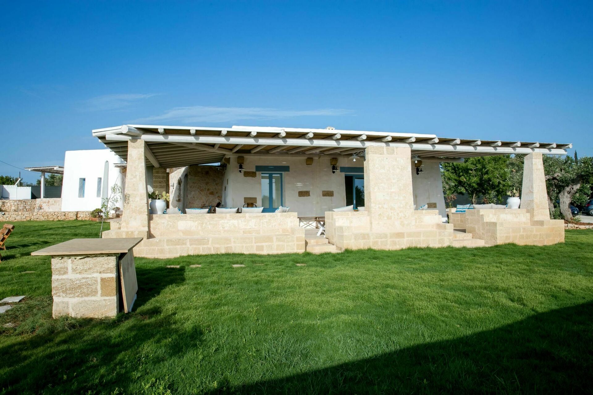 La villa è composta da un'unità centrale e da due antichi trulli originali risalenti al XIX secolo. La casa è stata recentemente ristrutturata (2016) ed è situata in una splendida posizione tranquilla e panoramica circondata da uno splendido oliveto del Salento.