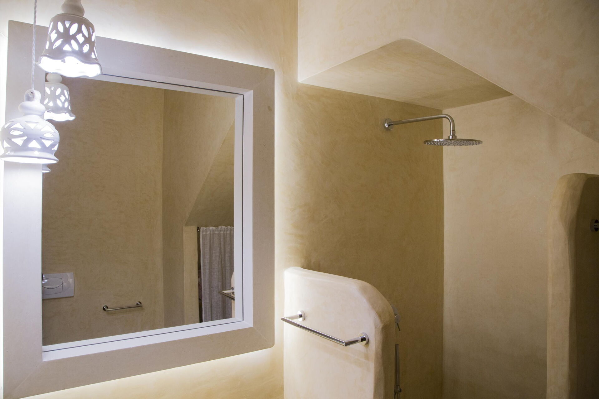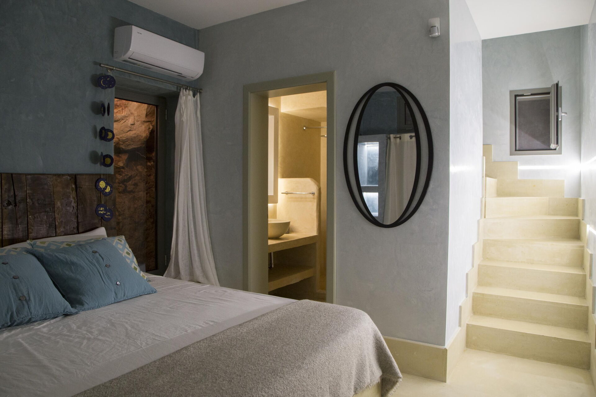 Piano inferiore:camera matrimoniale (senza finestra, aria condizionata) con bagno privato con doccia (senza finestra).