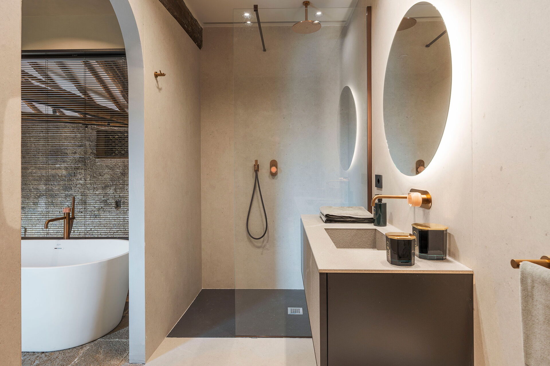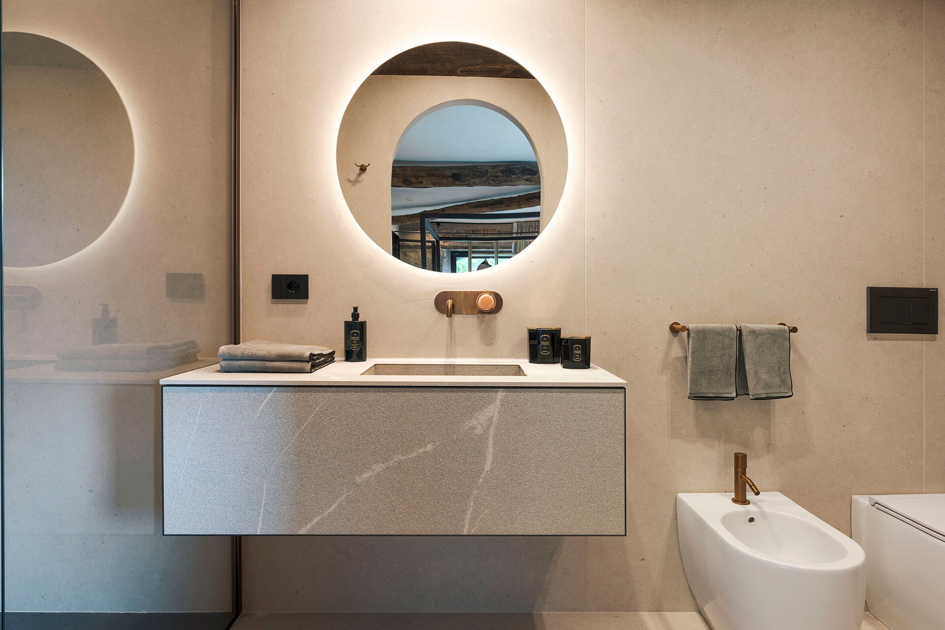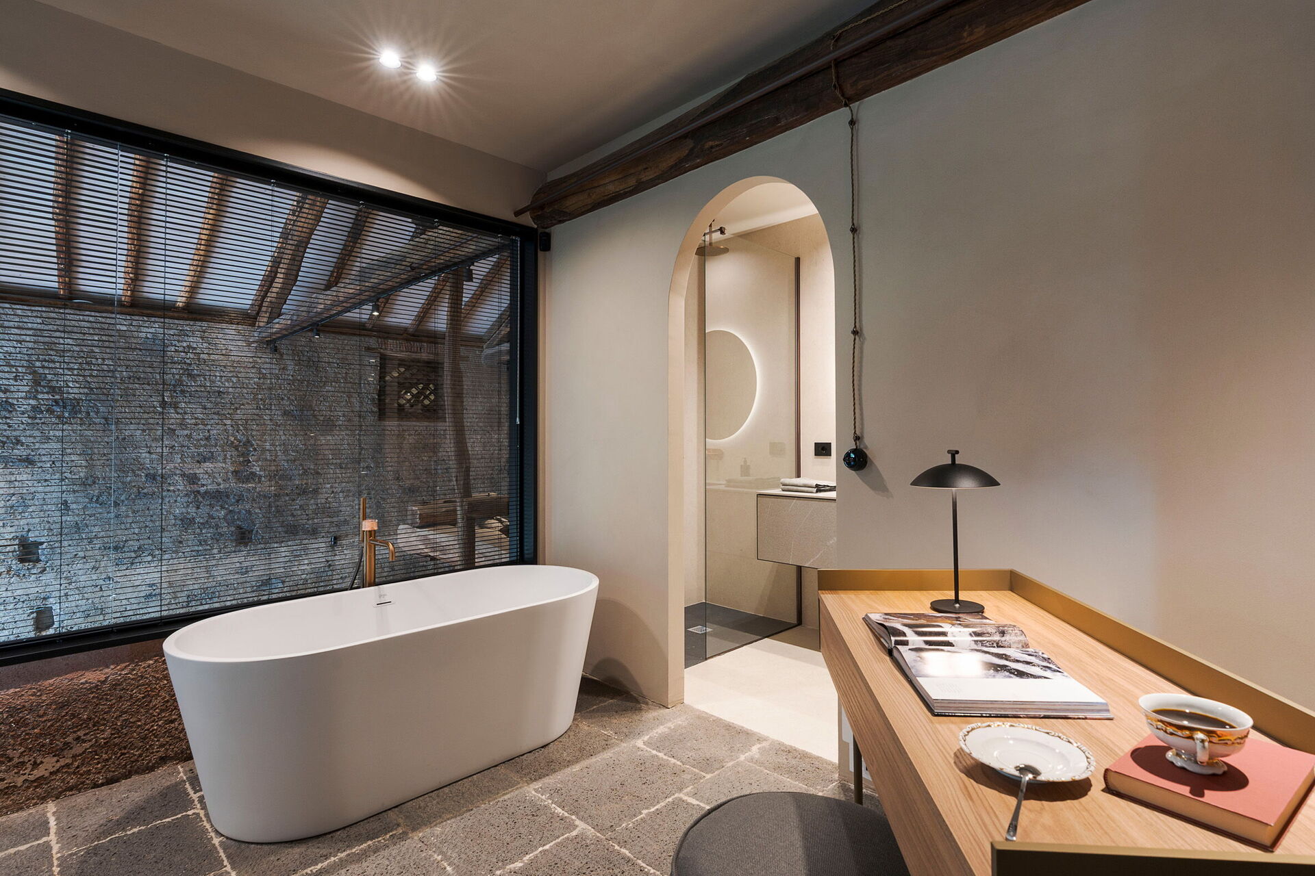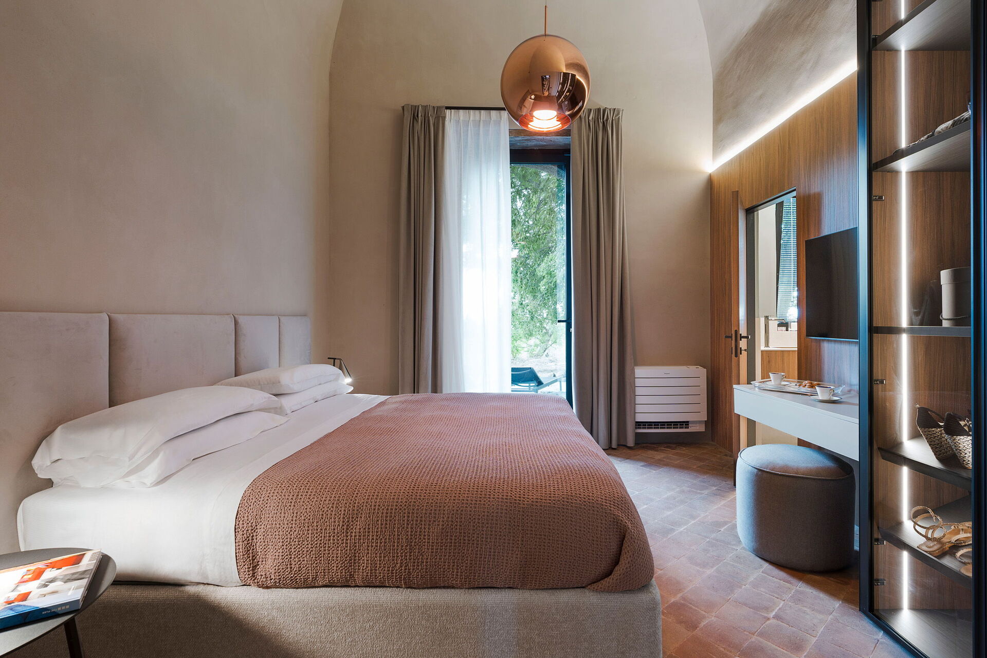 Gli interni e tutti gli ambienti hanno un grande fascino e sono arredati con gusto e cura dei particolari. Il grigio della pietra e il colore del legno sono il filo conduttore della mobilia interna ed esterna. La tradizionale architettura siciliana è rievocata in ogni spazio: travi ai soffitti, scale in pietra e grandi archi mattonati che coronano i muri o separano le varie zone.