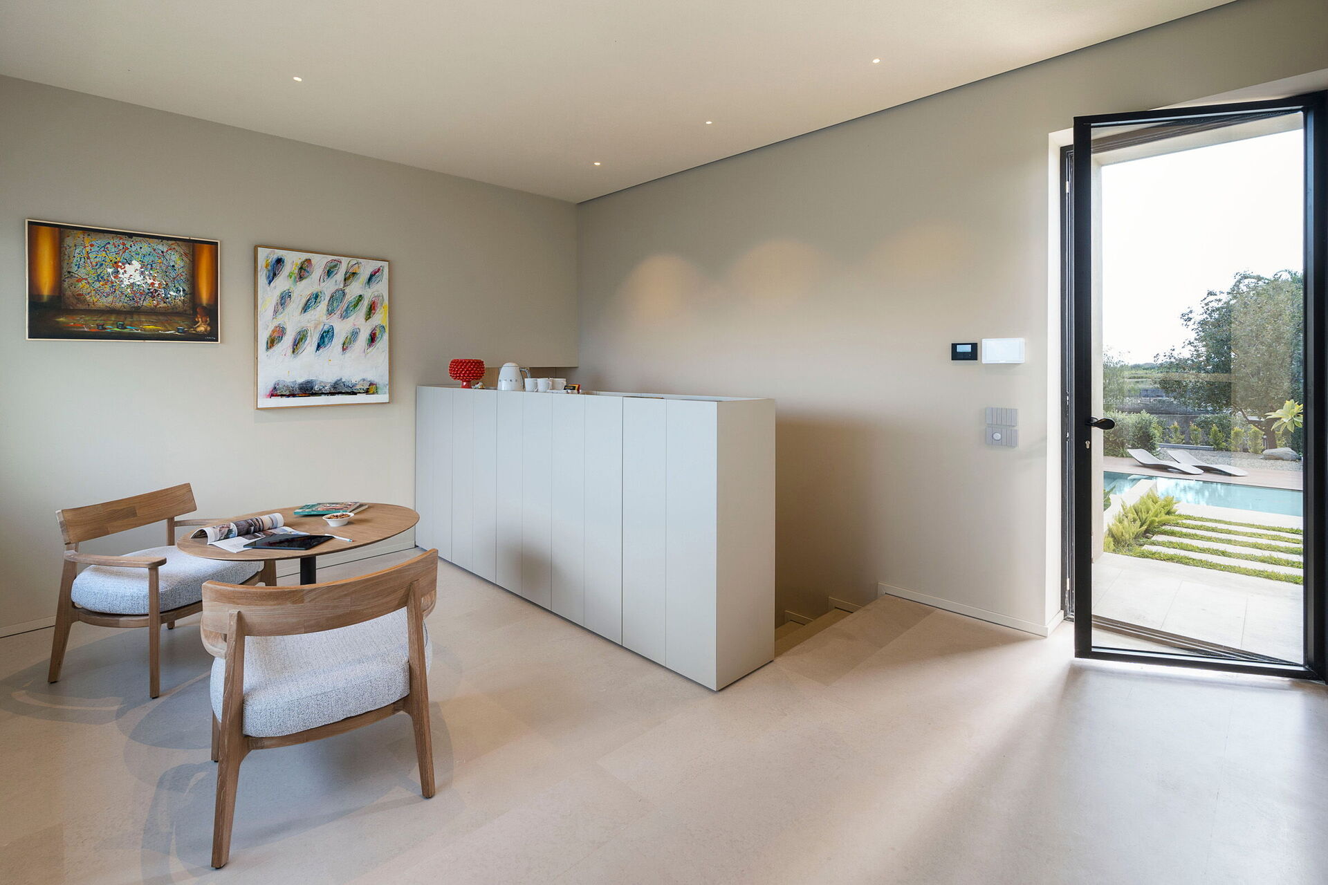 In dependance situata in un’area riservata della proprietà, soggiorna una giovane coppia che, con discrezione e professionalità, si occupa della manutenzione della casa, del giardino e della piscina.