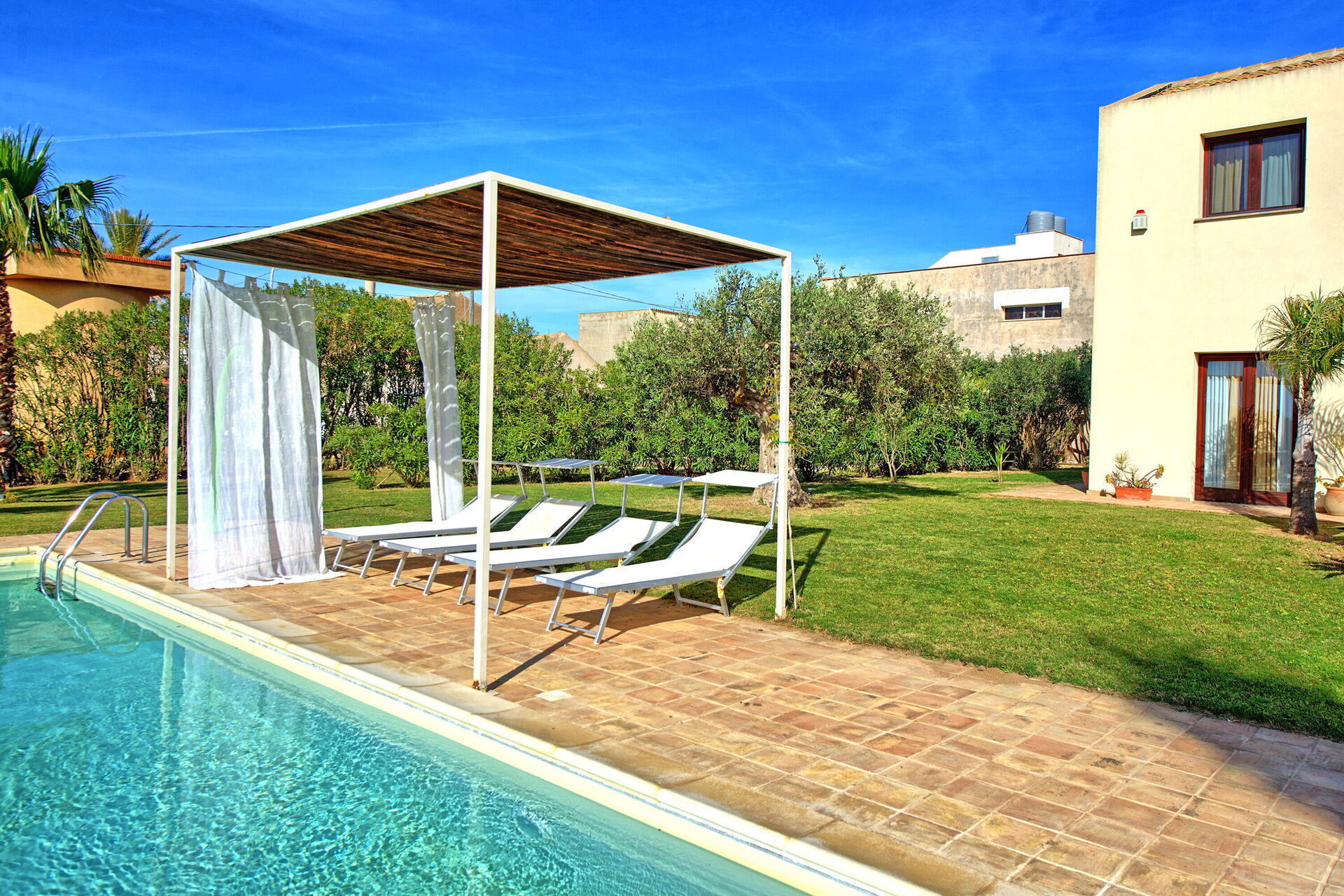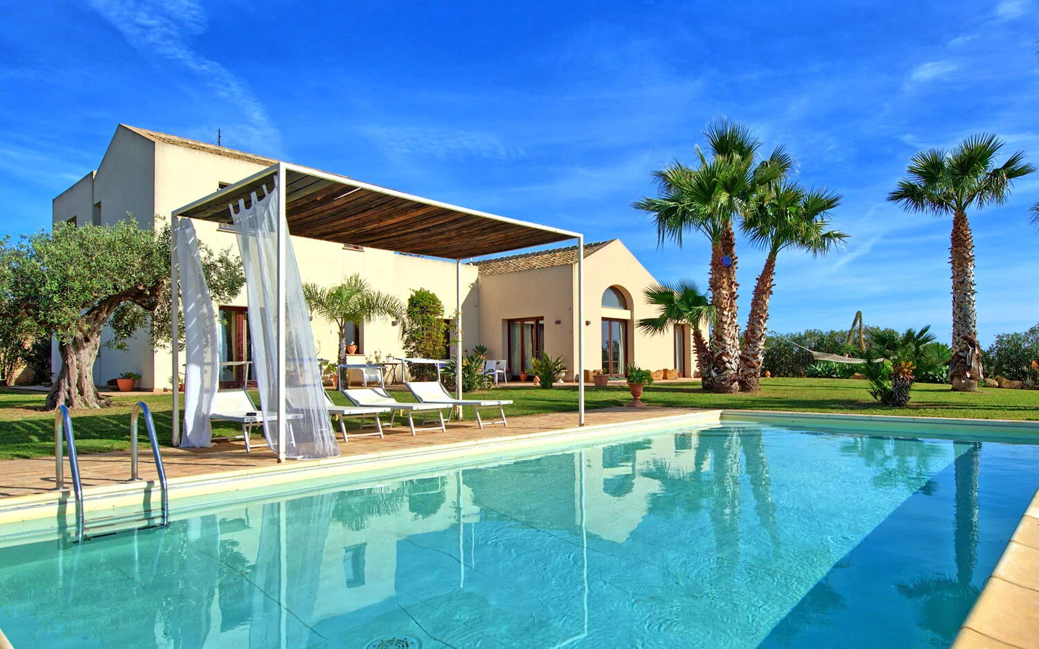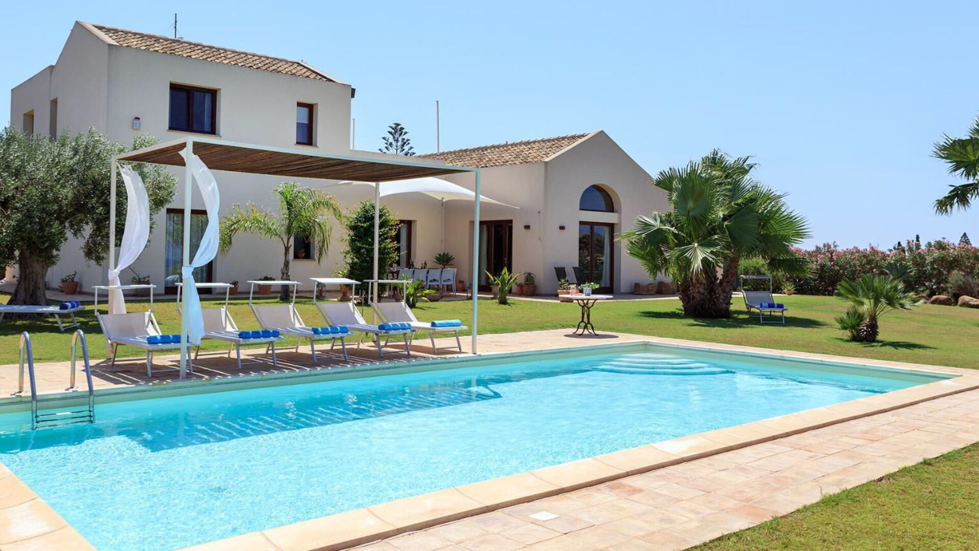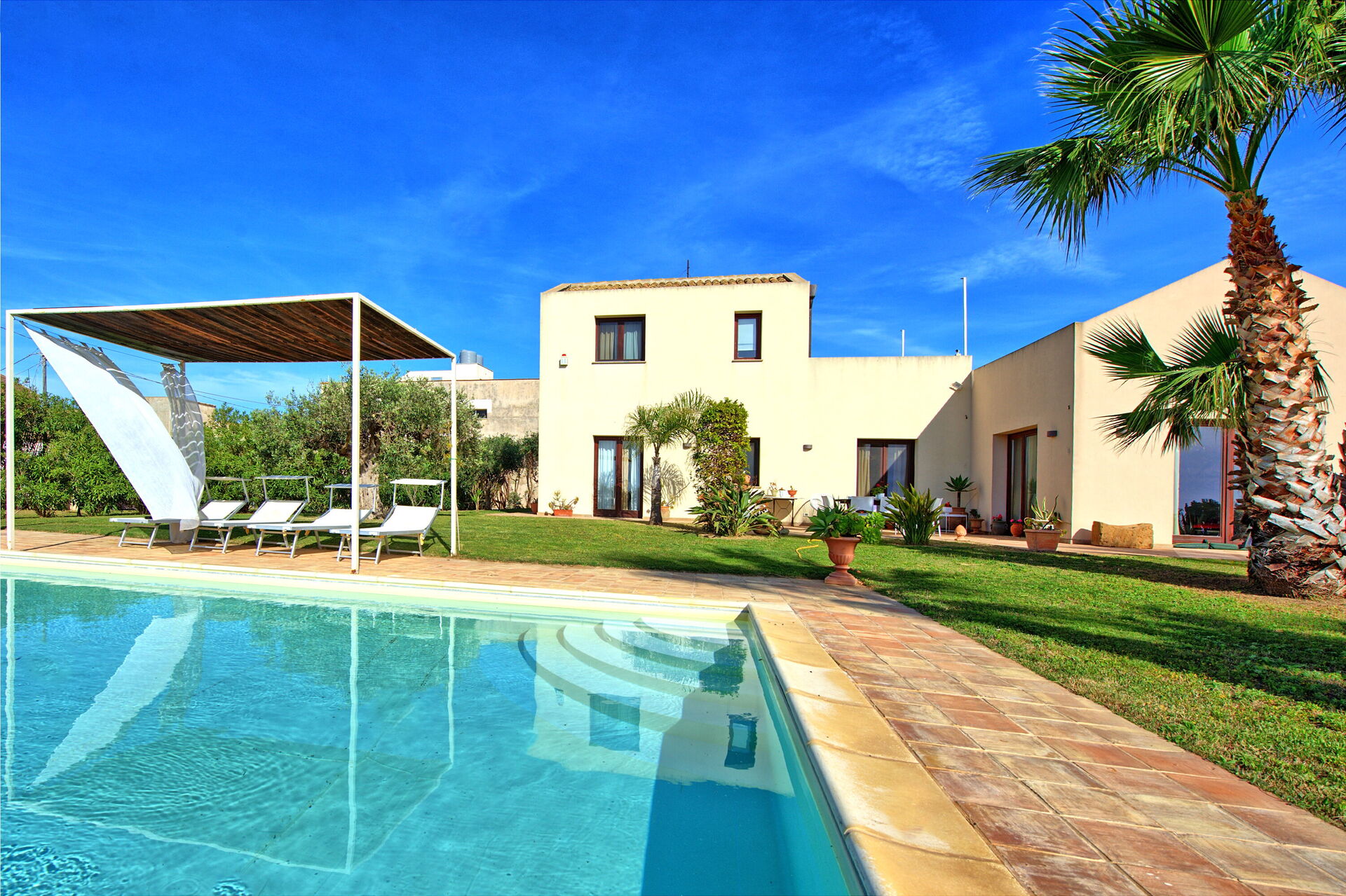 Villa Casale è una splendida villa con piscina privata in affitto in Sicilia nei dintorni della riserva naturale delle saline di Trapani.
