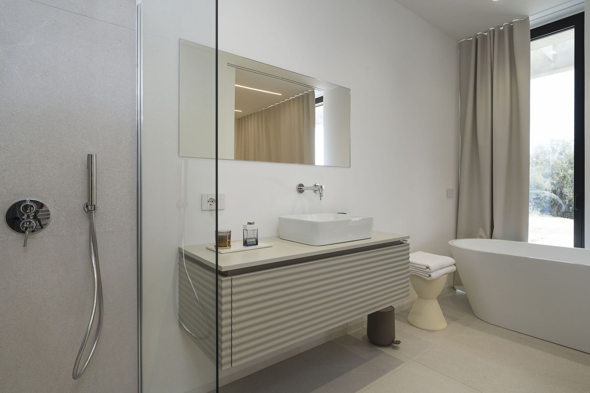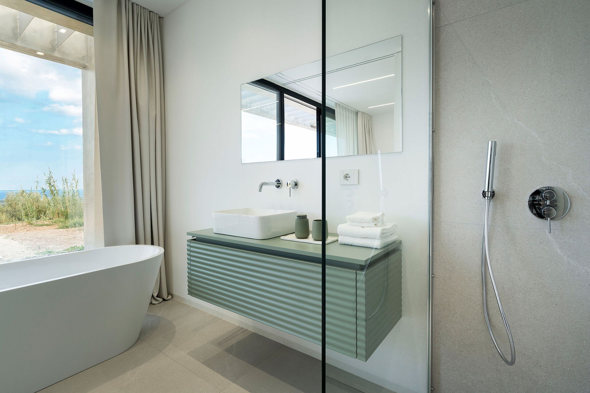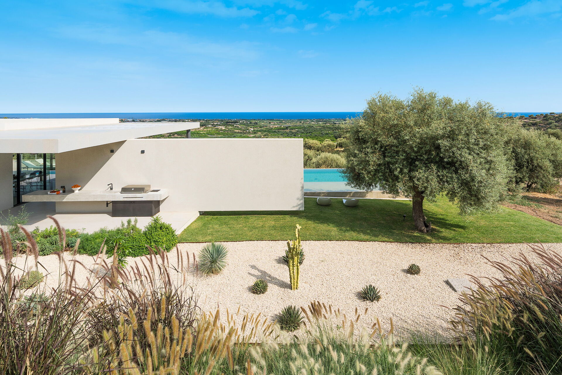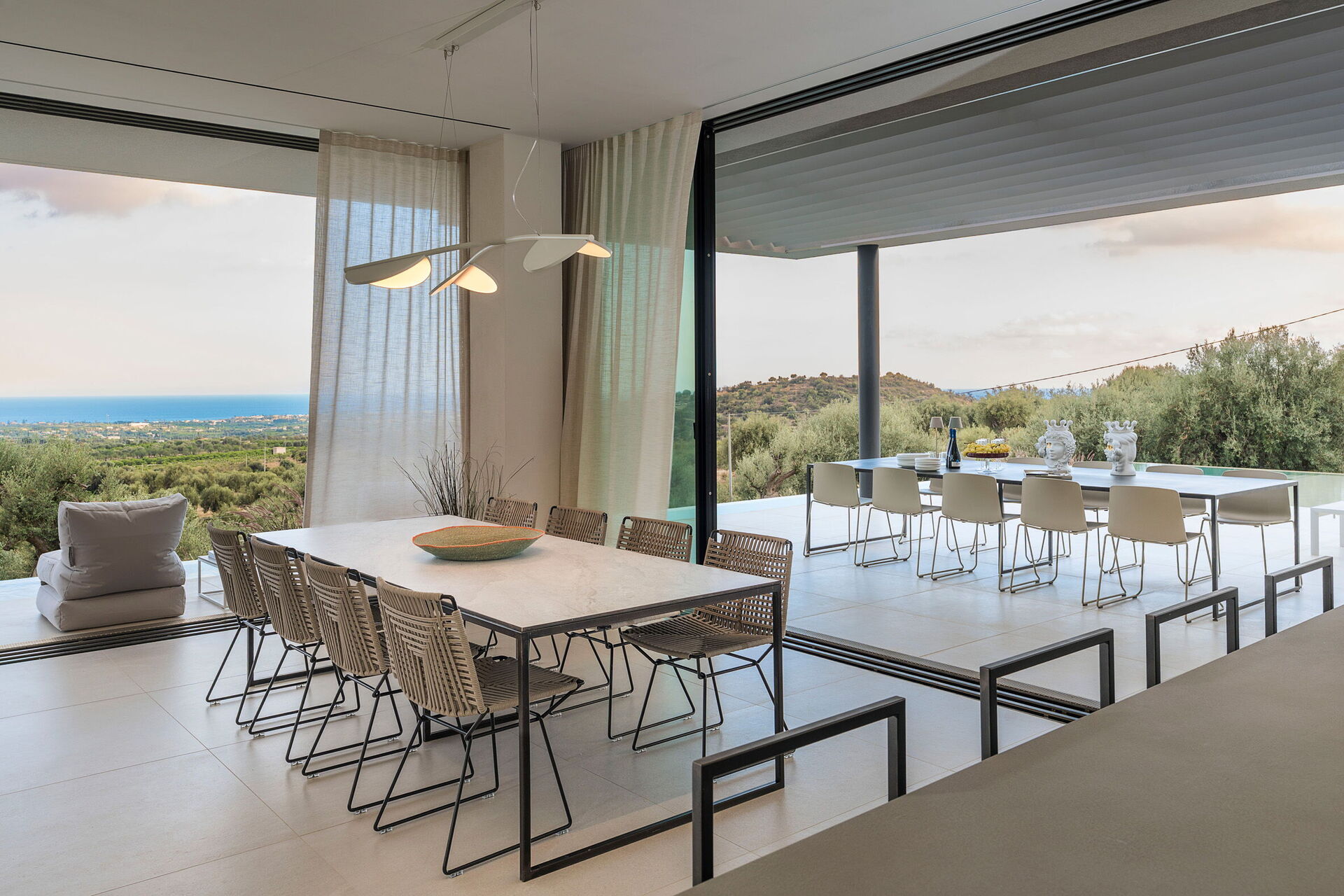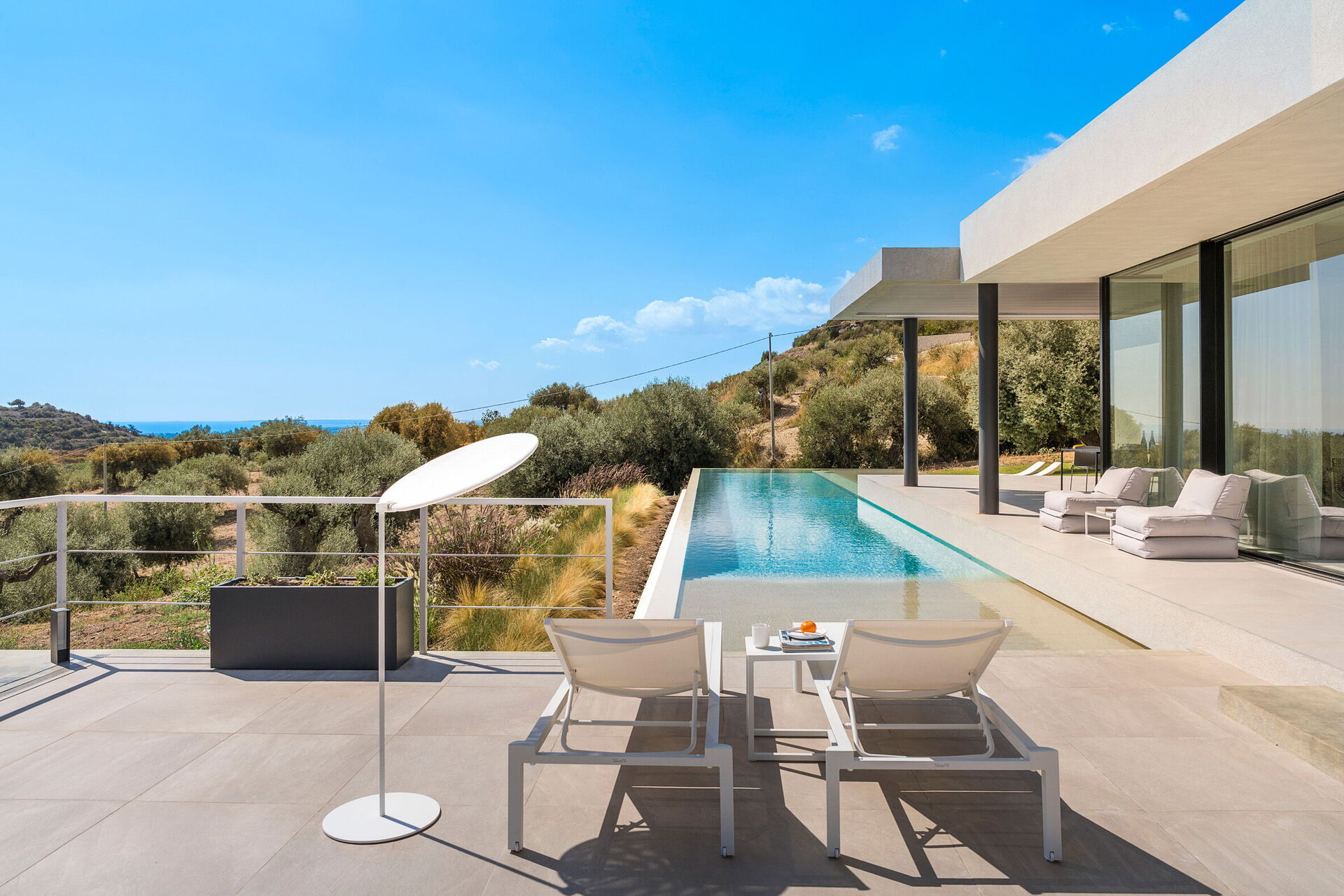 Moderna e lussuosa, questa esclusiva villa gode di una scenografica posizione panoramica con vista mozzafiato sul mare, che è possibile ammirare sia dalla piscina che dalle sue ampie terrazze e dal giardino.