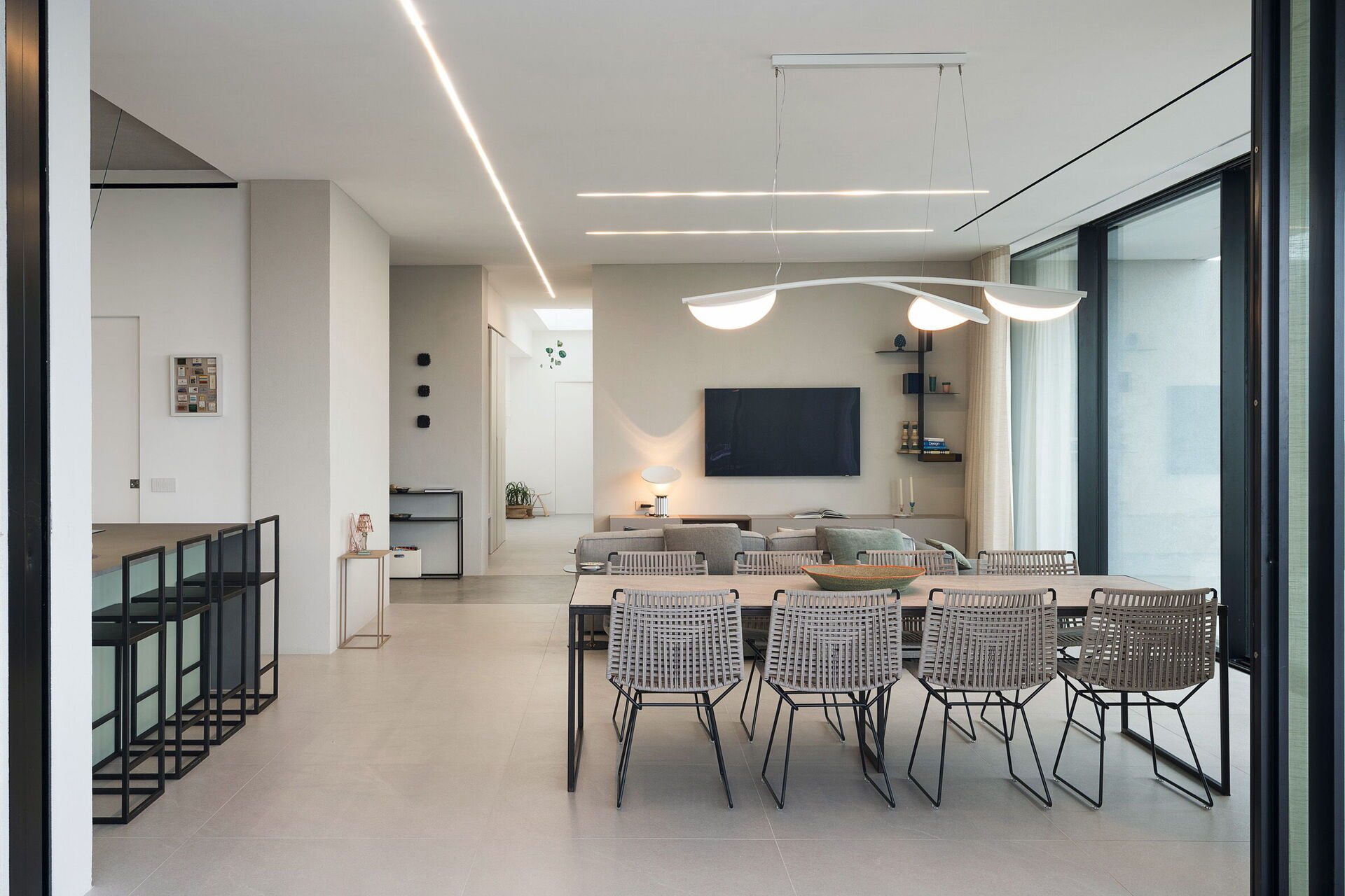Piano terreno : ingresso, ampia e luminosa zona giorno con grandi vetrate composta da soggiorno (TV) con zona pranzo con accesso sull’esterno, cucina (piano cottura, forno, frigorifero, freezer, lavastoviglie, microonde, tostapane, macchina da caffè espresso), wc, studio con accesso sull’esterno, camera matrimoniale (misure del letto: 180 x 200 cm) e con bagno privato con doccia.