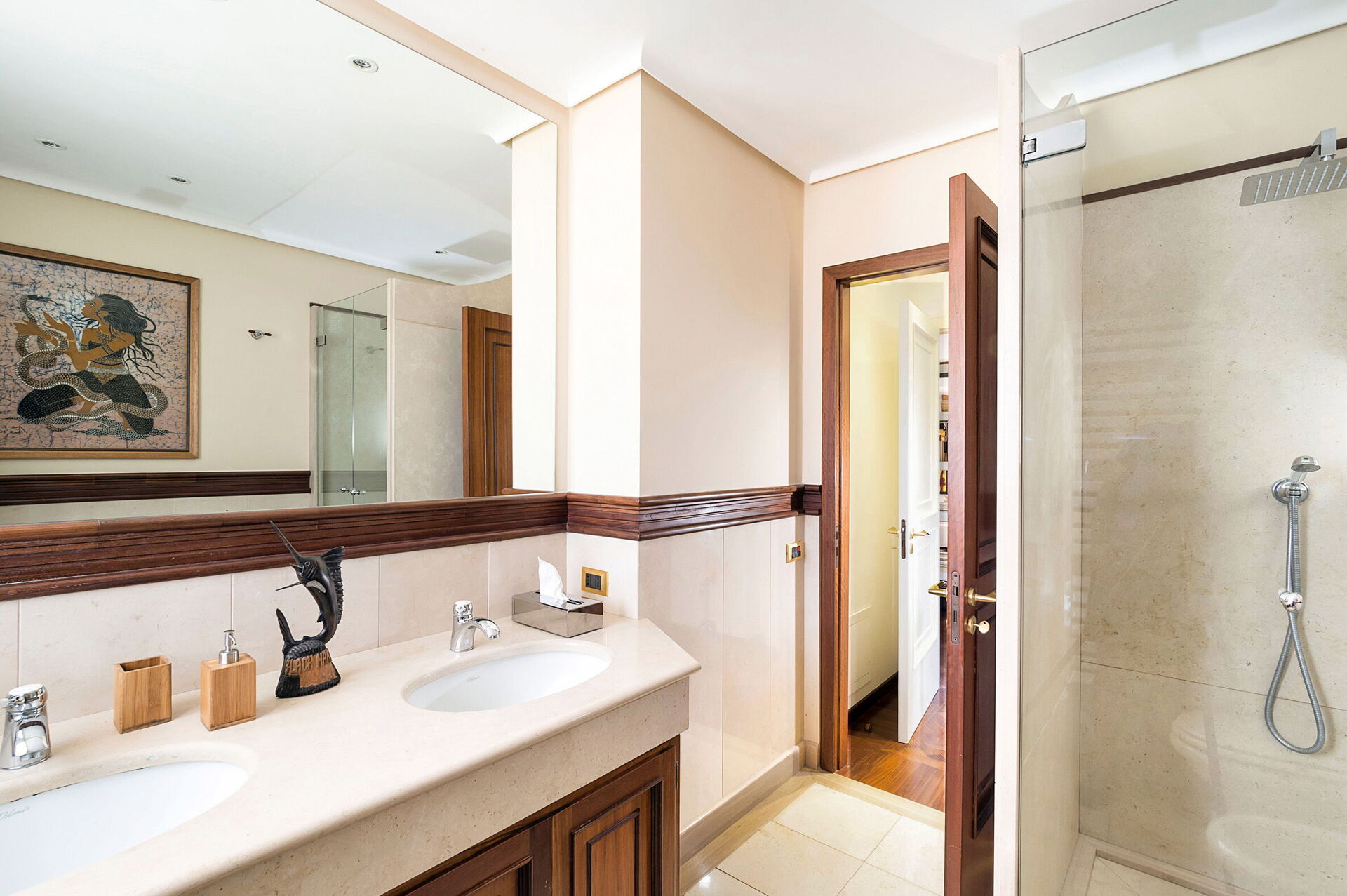4 gradini più in alto: soggiorno, cucina (forno, freezer, frigorifero, lavastoviglie, piano cottura, microonde, tostapane, macchina da caffè americano, macchina da caffè espresso) con zona pranzo, camera matrimoniale con cabina armadio, bagno con doccia, bagno con vasca idromassaggio.