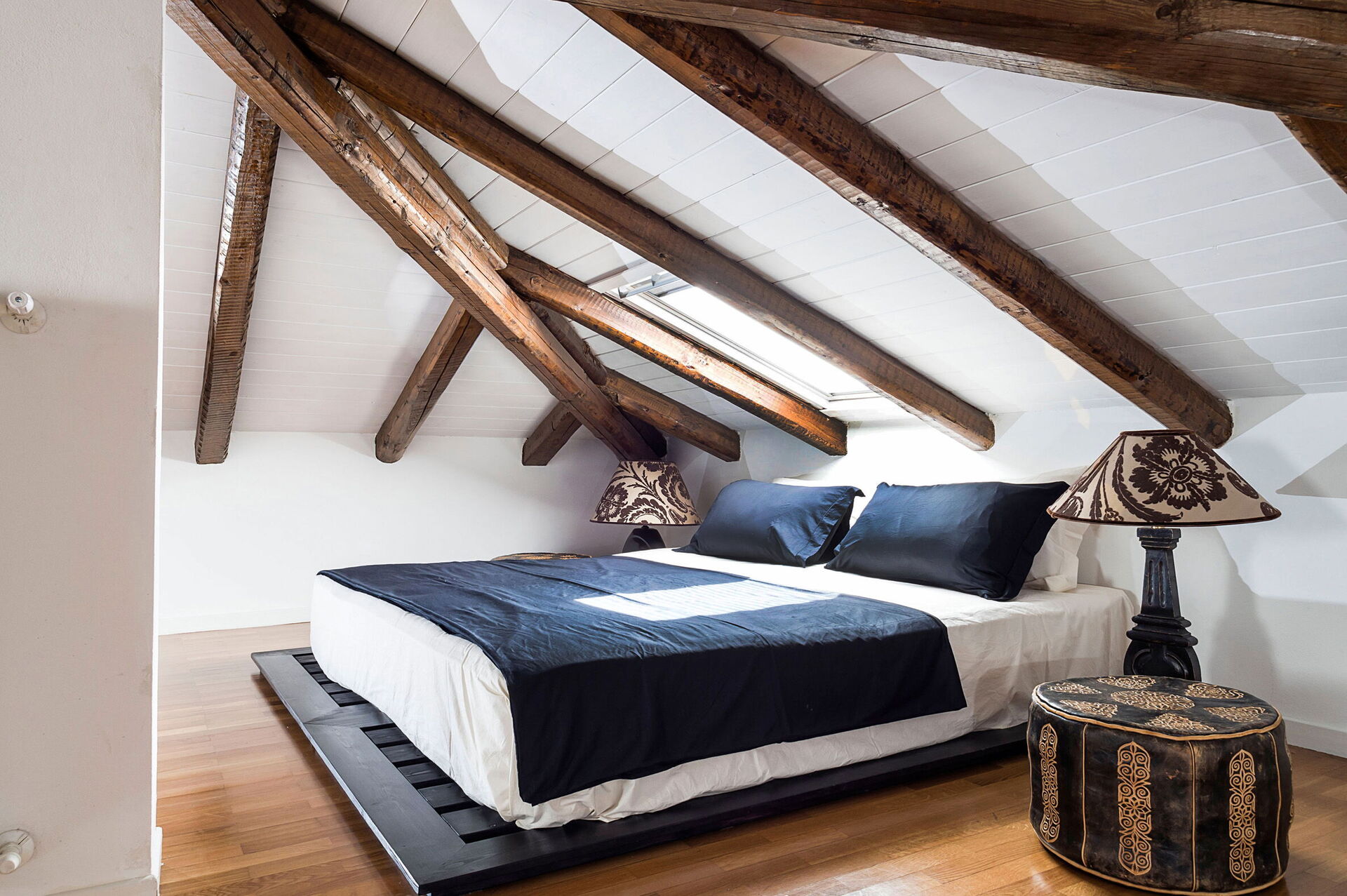 Primo piano (mansarda): camera matrimoniale, bagno con vasca.