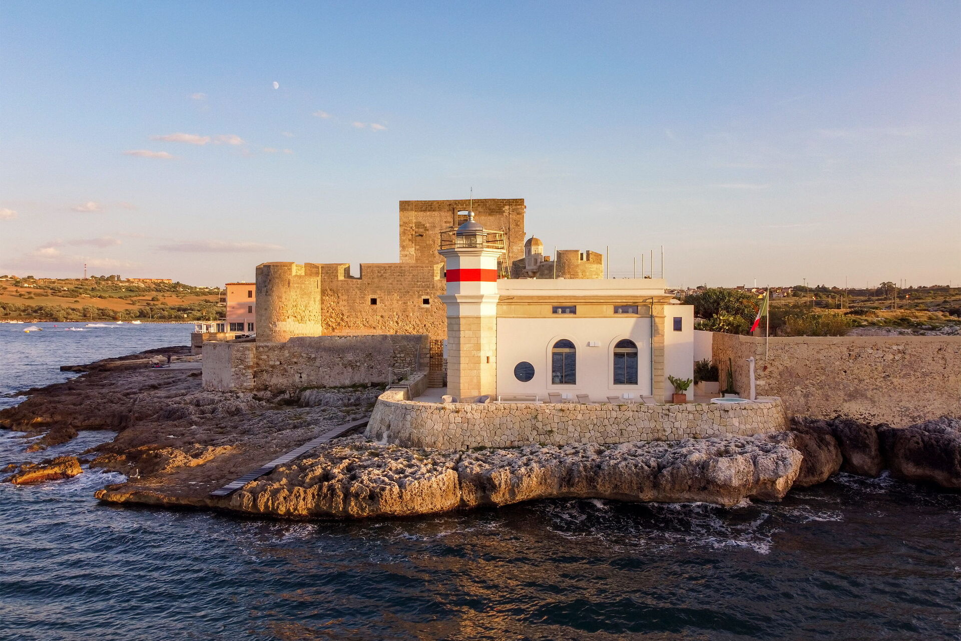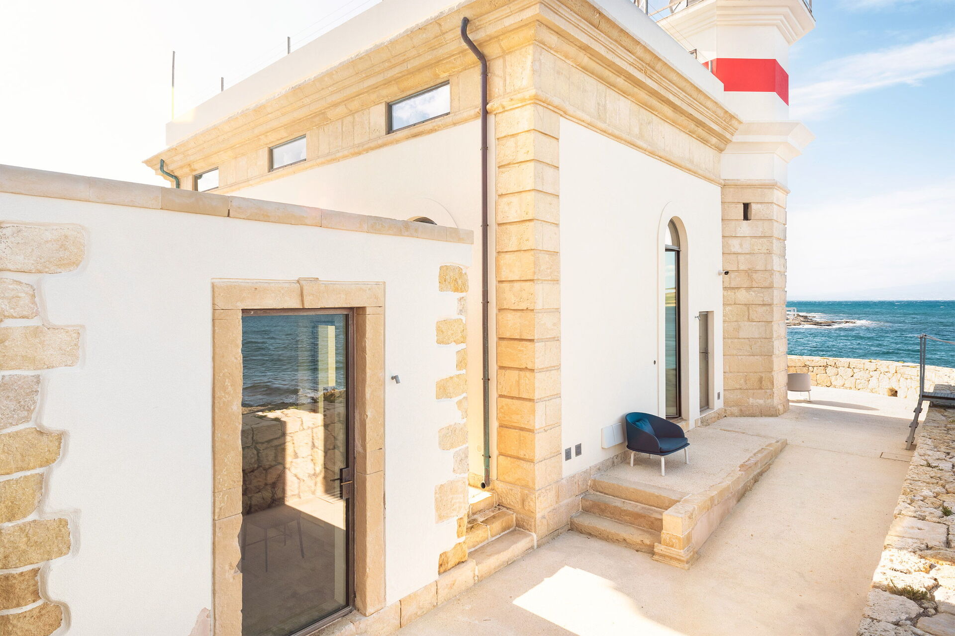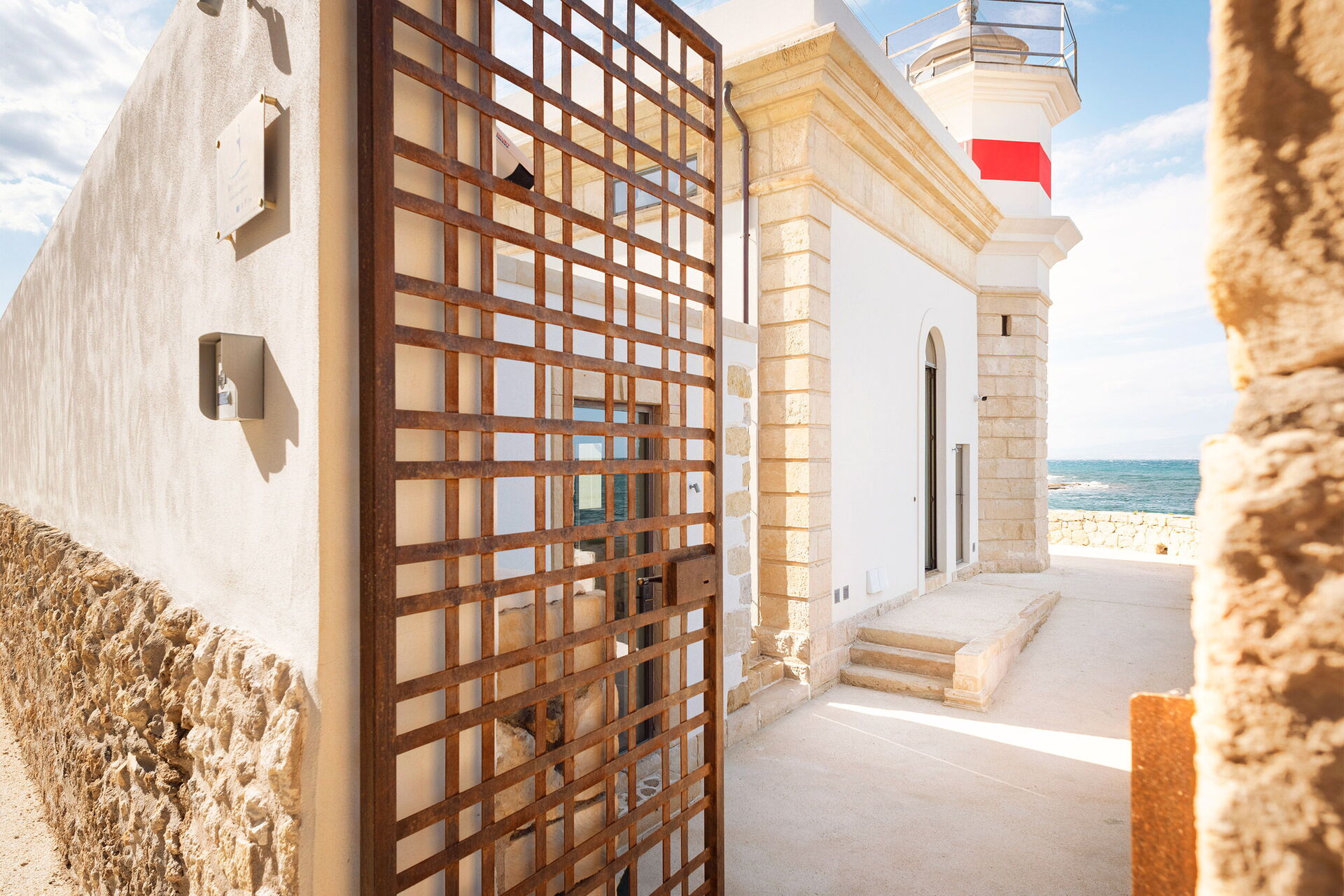 Villa il Faro è una proprietà posta su una scogliera a picco sul mare a Brucoli lungo la costa orientale della Sicilia: dispone di una panoramica terrazza attrezzata sul tetto e raggiungibile da una scala esterna proprio come faceva il guardiano del faro tanto tempo fa. La lampada del faro è ancora funzionante e tutto questo rende la proprietà ancora più ricca di fascino.