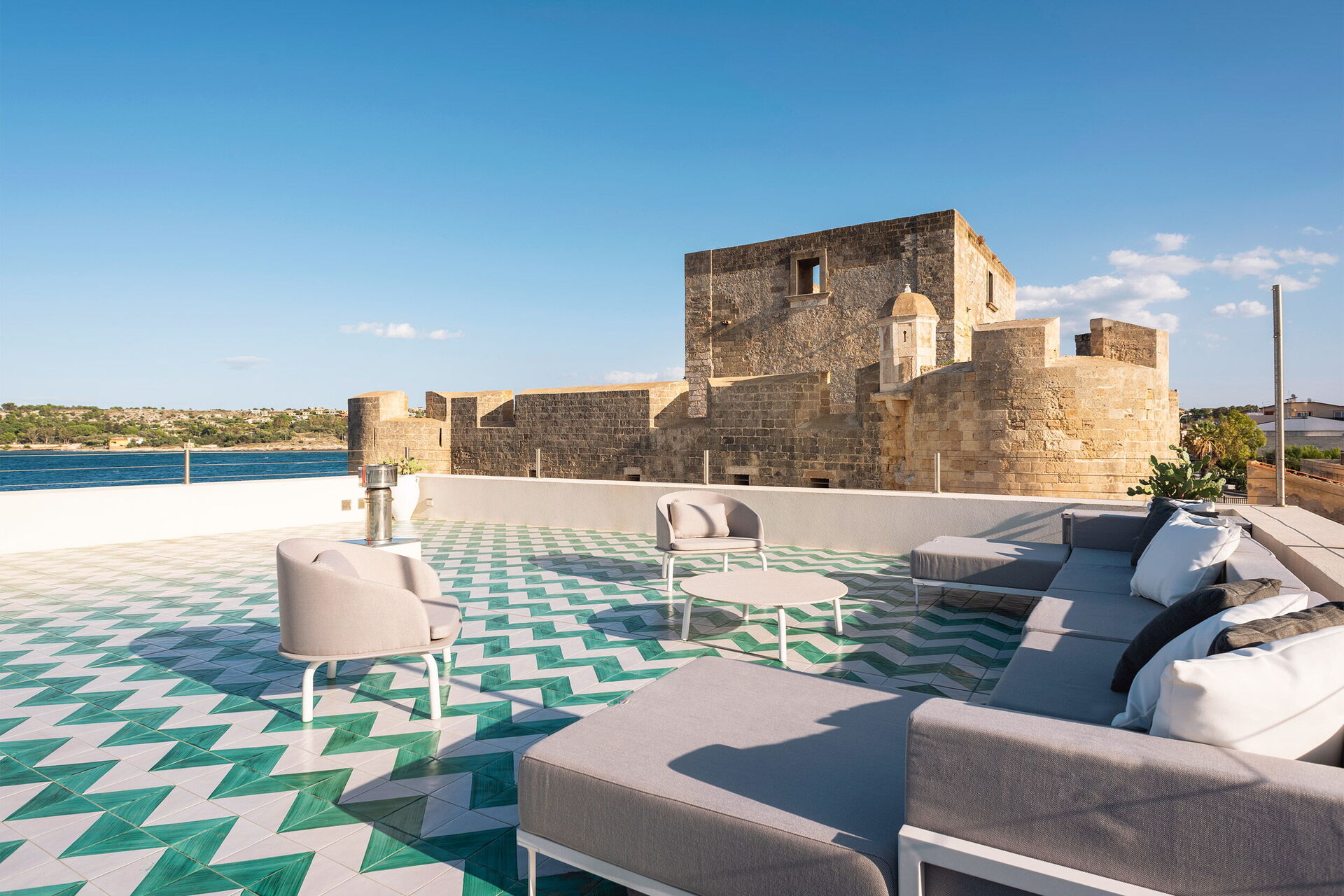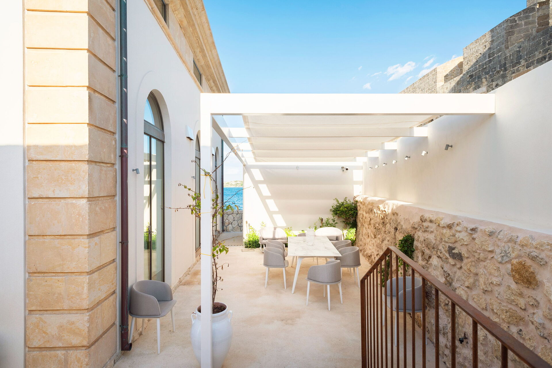 Le panoramiche zone esterne offrono numerose aree comuni e permettono agli ospiti di trascorrere un piacevole soggiorno in famiglia o tra amici: vi potrete rilassare nella panoramica piscina idromassaggio esterna riscaldabile o nell’ ampia zona solarium fronte mare ideale per trascorrere piacevoli momenti sotto il sole della Sicilia. Gli ospiti disporre dell'accesso diretto alla scogliera e al mare.