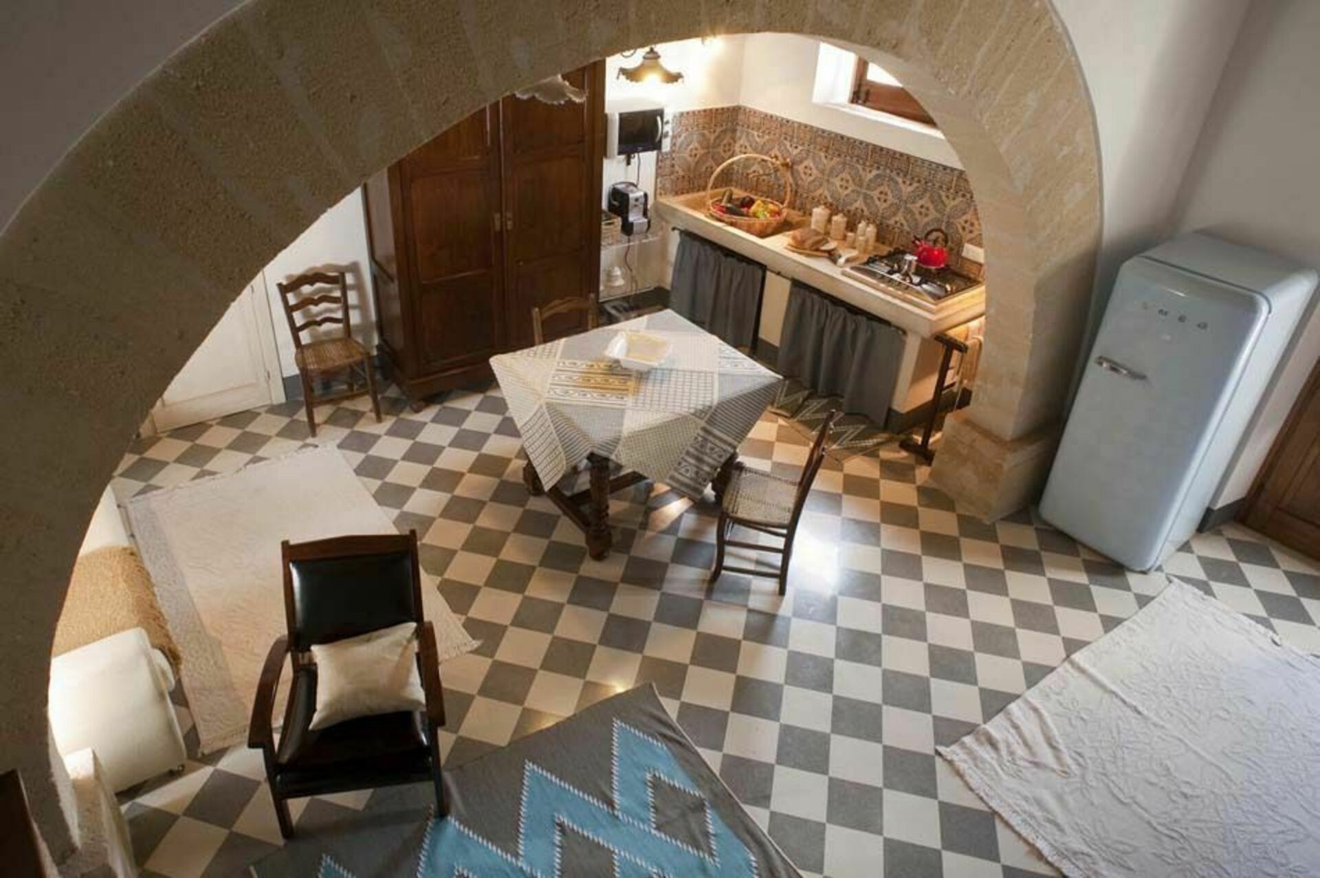 A casa Titi l'anima siciliana più autentica incontra stile e comfort in una perfetta combinazione di tradizione e raffinata ospitalità, dove tra soffitti con travi a vista e spesse mura in pietra si aprono un accogliente soggiorno-pranzo con camino e zona cottura, una romantica camera matrimoniale, una camera doppia di passaggio e due bagni.