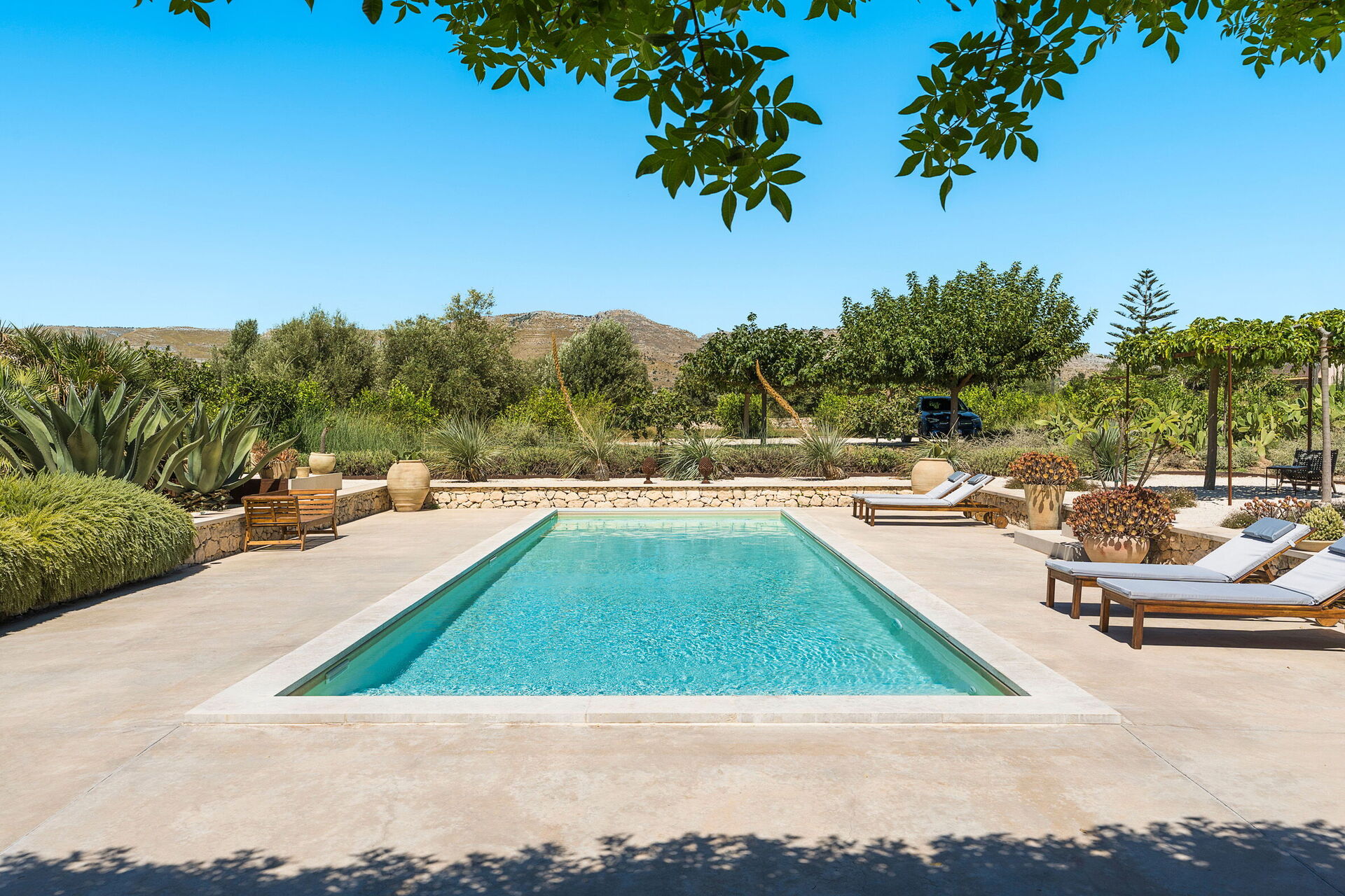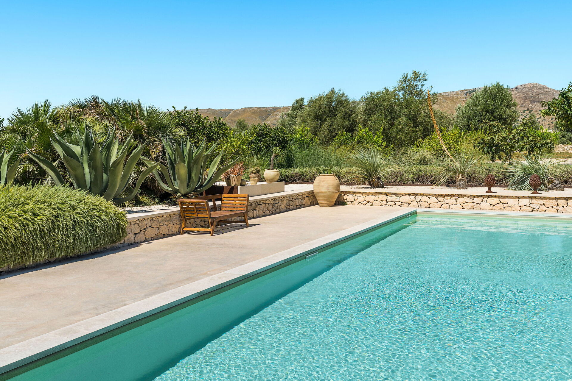 All'esterno un rigoglioso giardino ben curato ospita una bella piscina privata ad uso esclusivo degli ospiti che potranno quindi rinfrescarsi nelle giornate estive siciliane. Per i più piccoli è presente anche un'apposita area giochi in giardino.