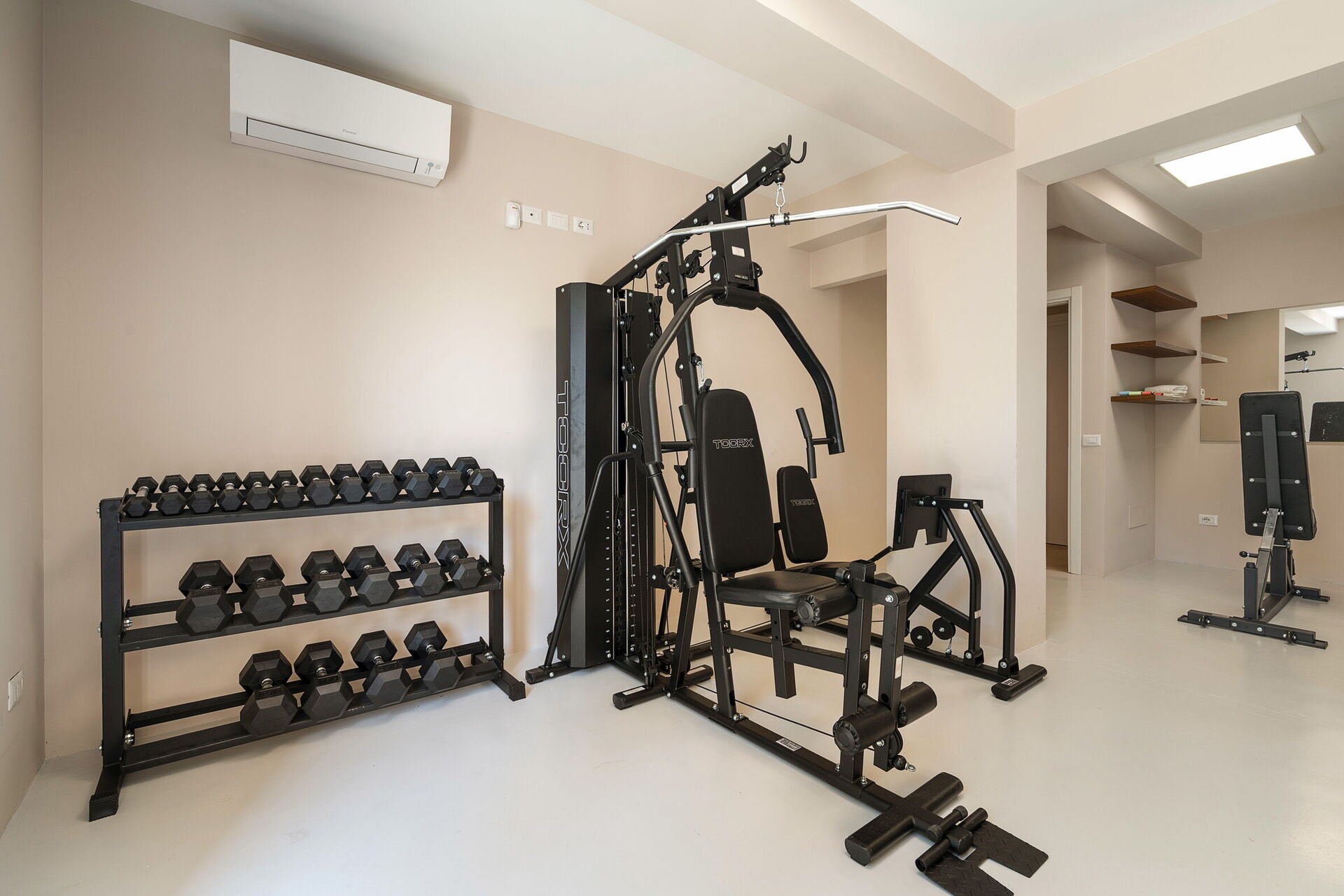 - sala fitness con attrezzi da palestra