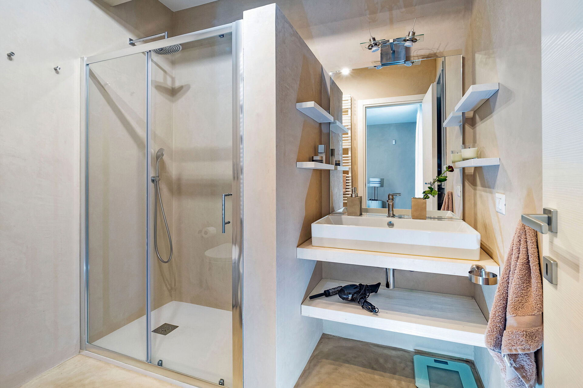 Piano inferiore: 2 camere matrimoniali, 2 bagni con doccia, lavanderia, area fitness.