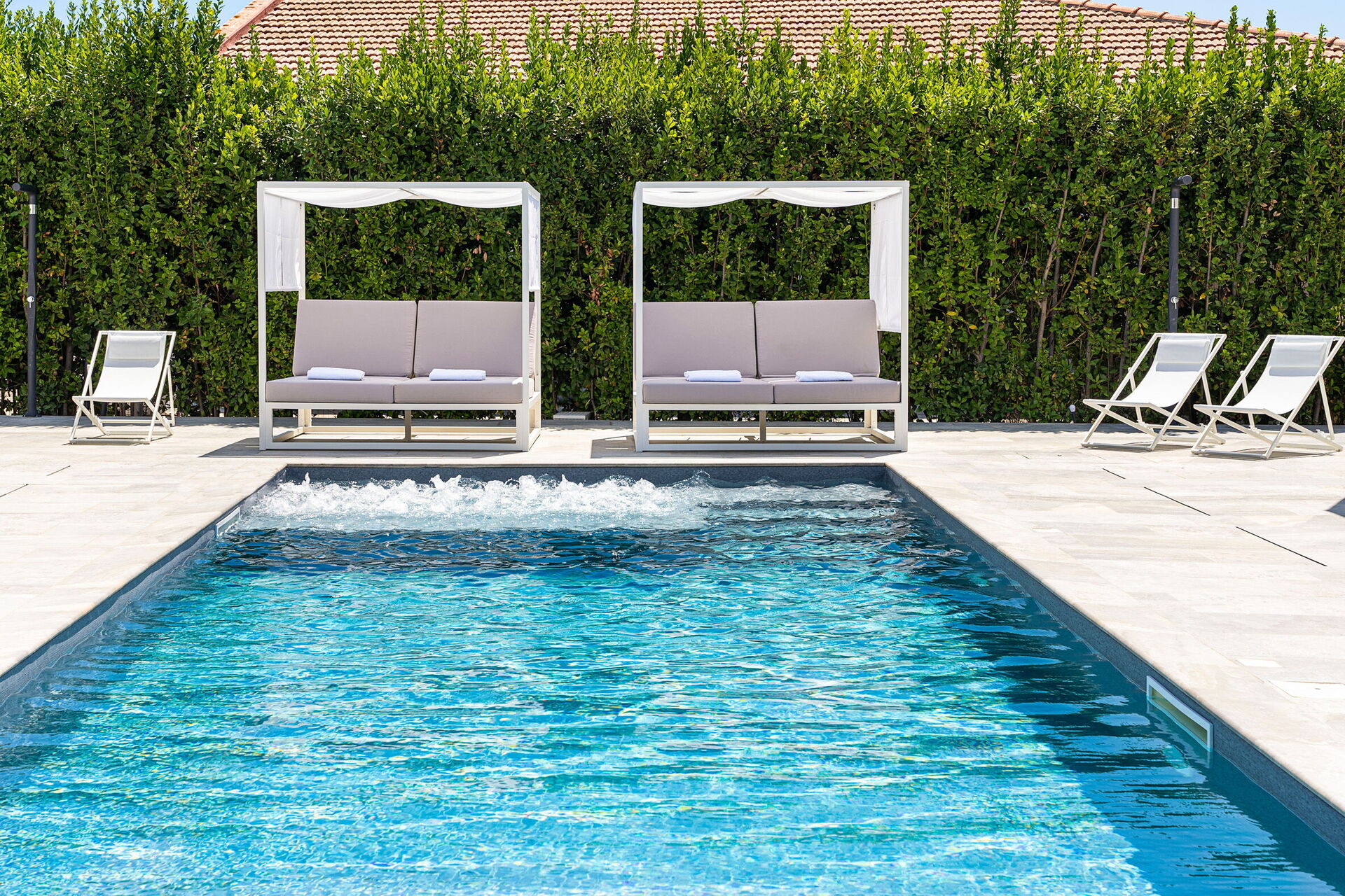- piscina privata con idromassaggio (15 x 4 metri; profondità: 1,4 metri); impianto di depurazione a sale
