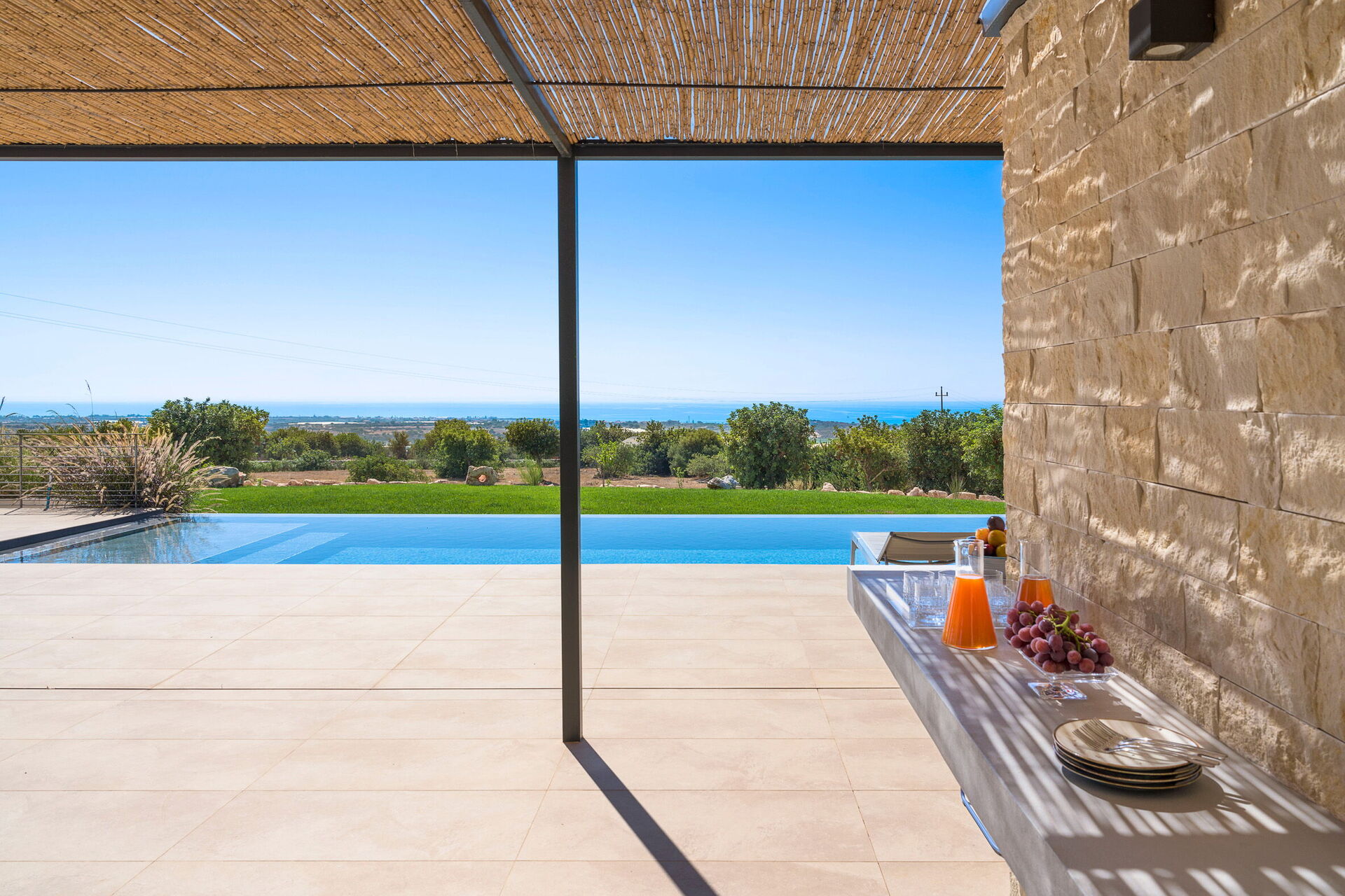 Questa esclusiva villa per vacanze nei dintorni di Scicli (spettacolare cittadina barocca patrimonio dell'UNESCO) gode di una tranquilla e scenografica posizione con vista mozzafiato sullo splendido paesaggio circostante, sulla campagna e sul mare, che è possibile ammirare sia dalla piscina che dalle sue ampie terrazze.