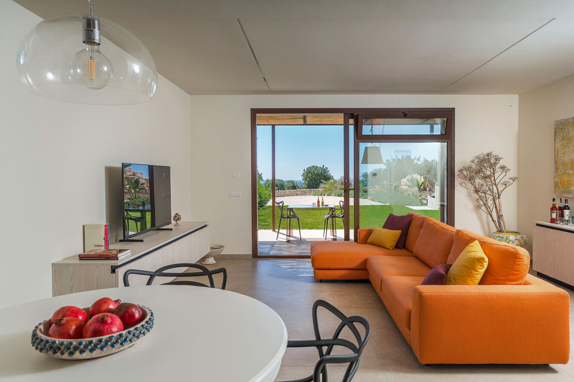 Gli interni sono stati arredati con gusto e semplicità e sono dotati di ogni moderno comfort. La villa si compone dalla casa principale (6 persone) e da una dependance (2 persone). In totale può comodamente ospitare fino a 8 persone grazie alle sue 4 camere da letto; tutto questo rende Gelso Bianco il luogo perfetto per chi desidera trascorrere una vacanza confortevole e rilassante a pochi chilometri dallo splendido mare della Sicilia!