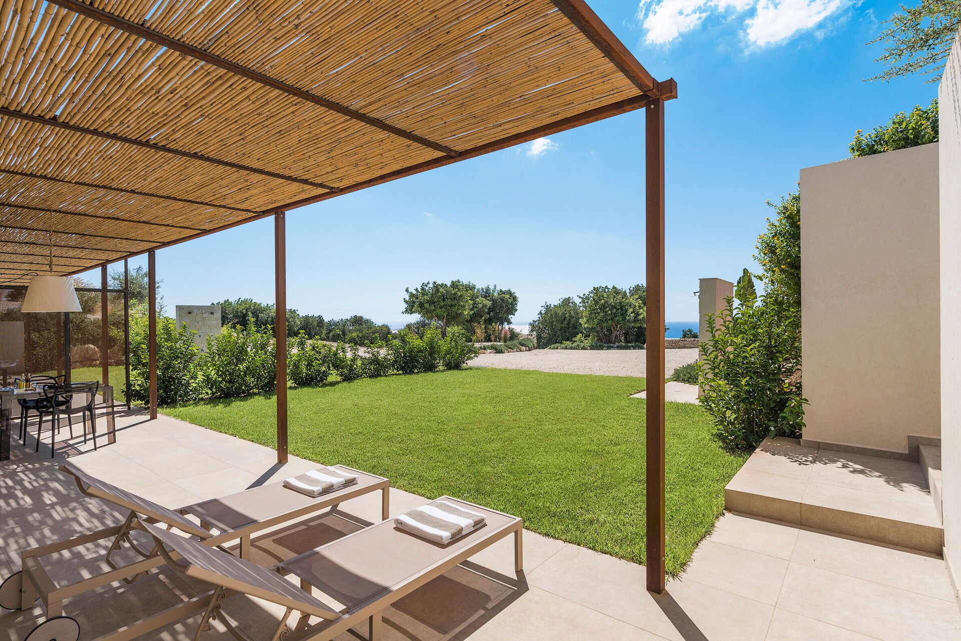 Questa esclusiva villa per vacanze nei dintorni di Scicli (spettacolare cittadina barocca patrimonio dell'UNESCO) gode di una tranquilla e scenografica posizione con vista mozzafiato sullo splendido paesaggio circostante, sulla campagna e sul mare, che è possibile ammirare sia dalla piscina che dalle sue ampie terrazze.