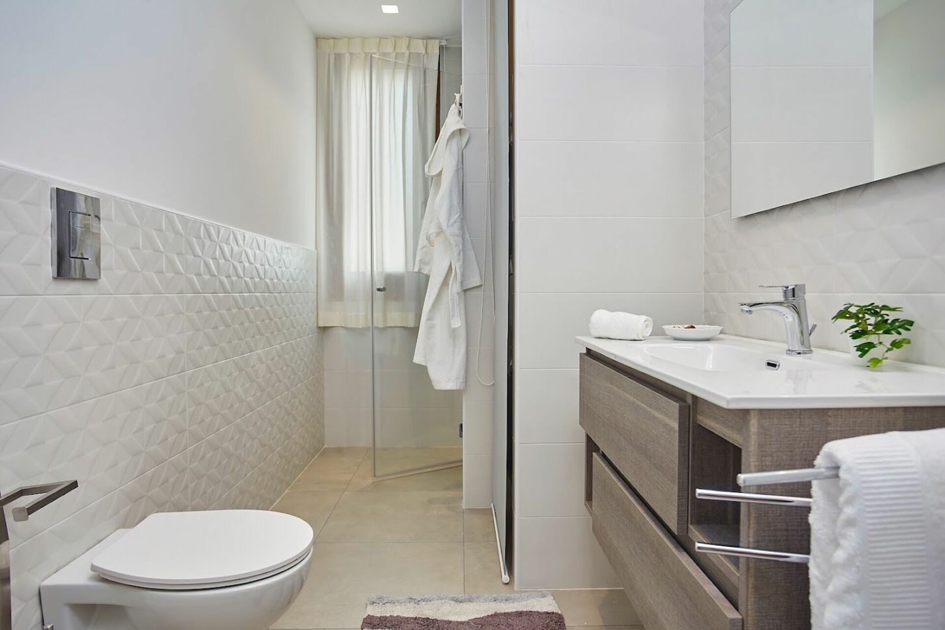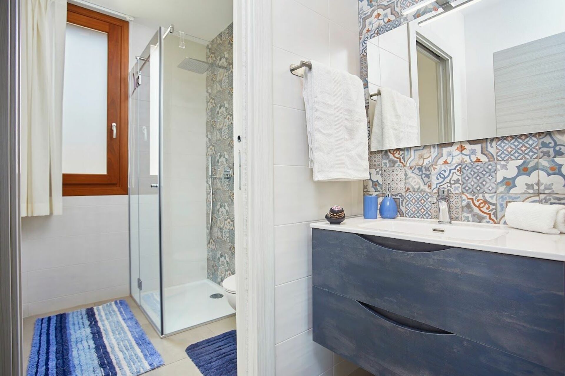 Piano terreno: ampio e luminoso open space con soggiorno, divano letto matrimoniale, zona pranzo e cucina, 2 camere da letto matrimoniali, camera con 2 letti singoli, 2 bagni entrambi con doccia.