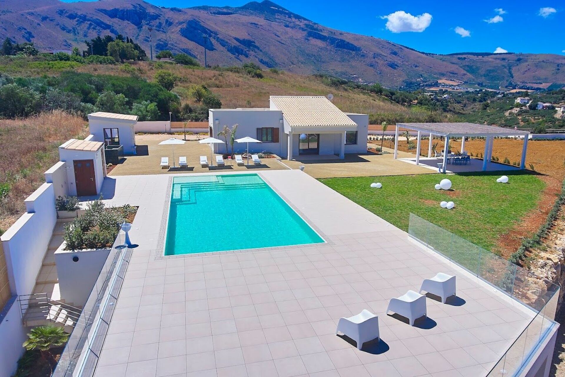 Bellissima e nuovissima villa con piscina privata in affitto per vacanze in Sicilia, vicino a Scopello.