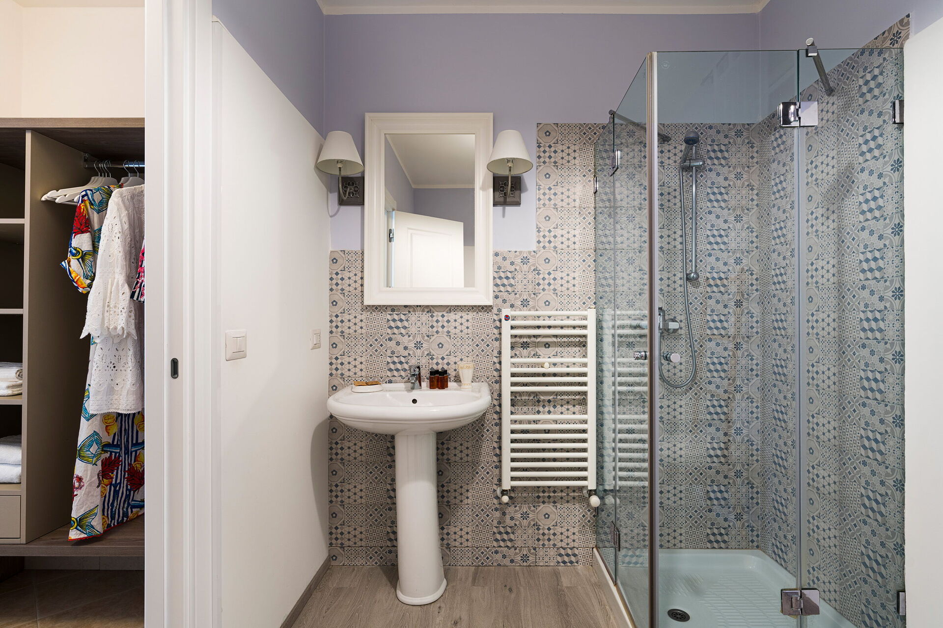 Primo piano: 2 camere matrimoniali con cabina armadio e bagno con doccia.