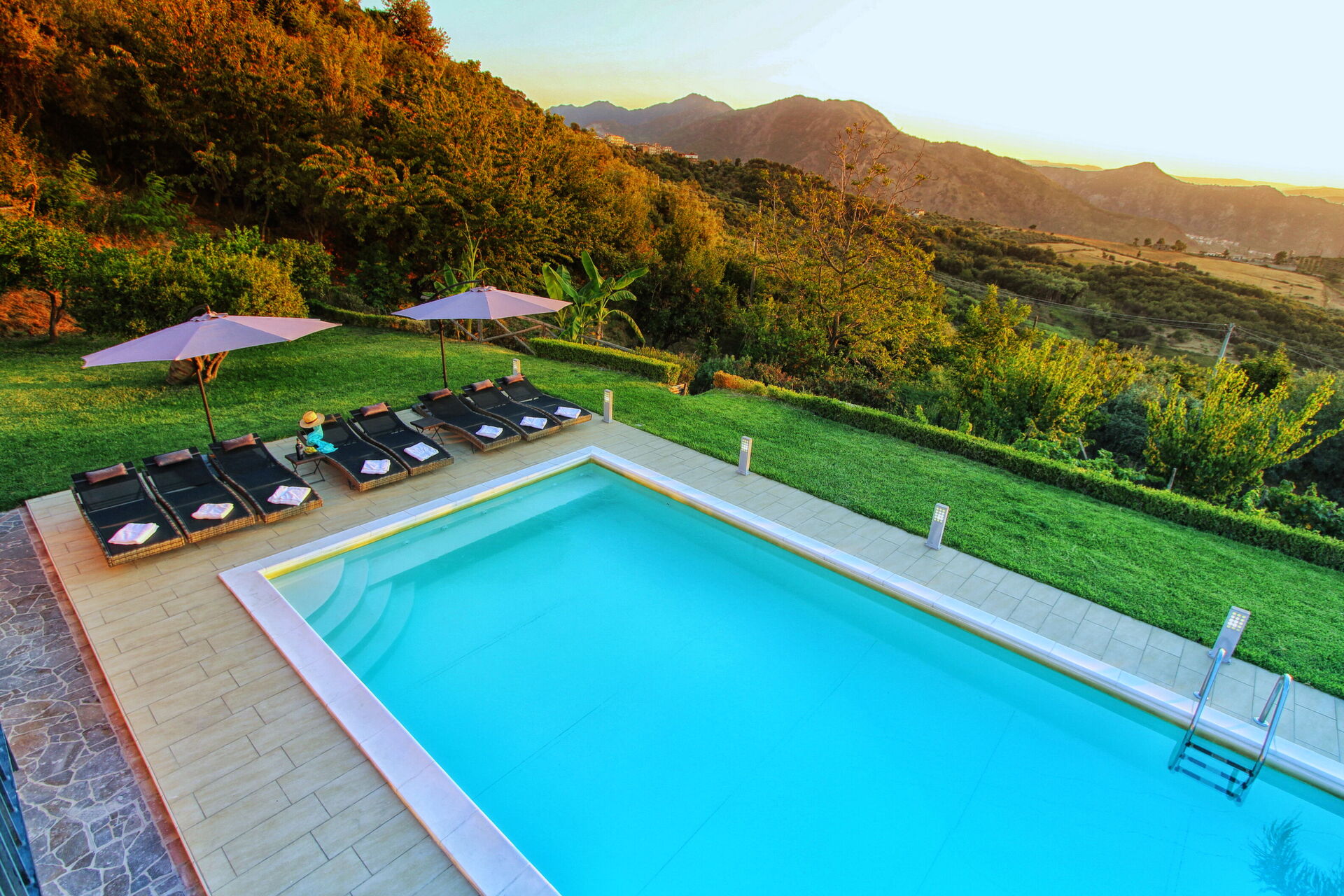 - piscina privata con zona idromassaggio (10 x 5 metri; profondità: 1,50 metri; riscaldabile (a pagamento ) fino a 26-28°C circa)