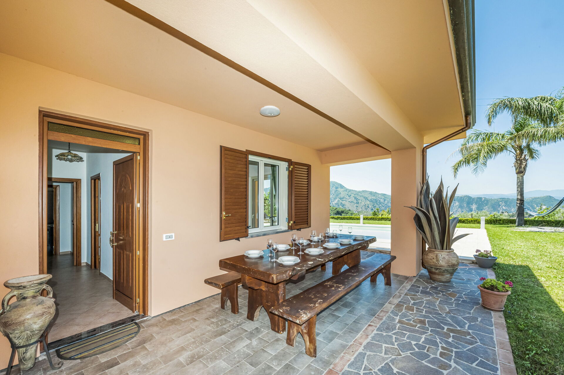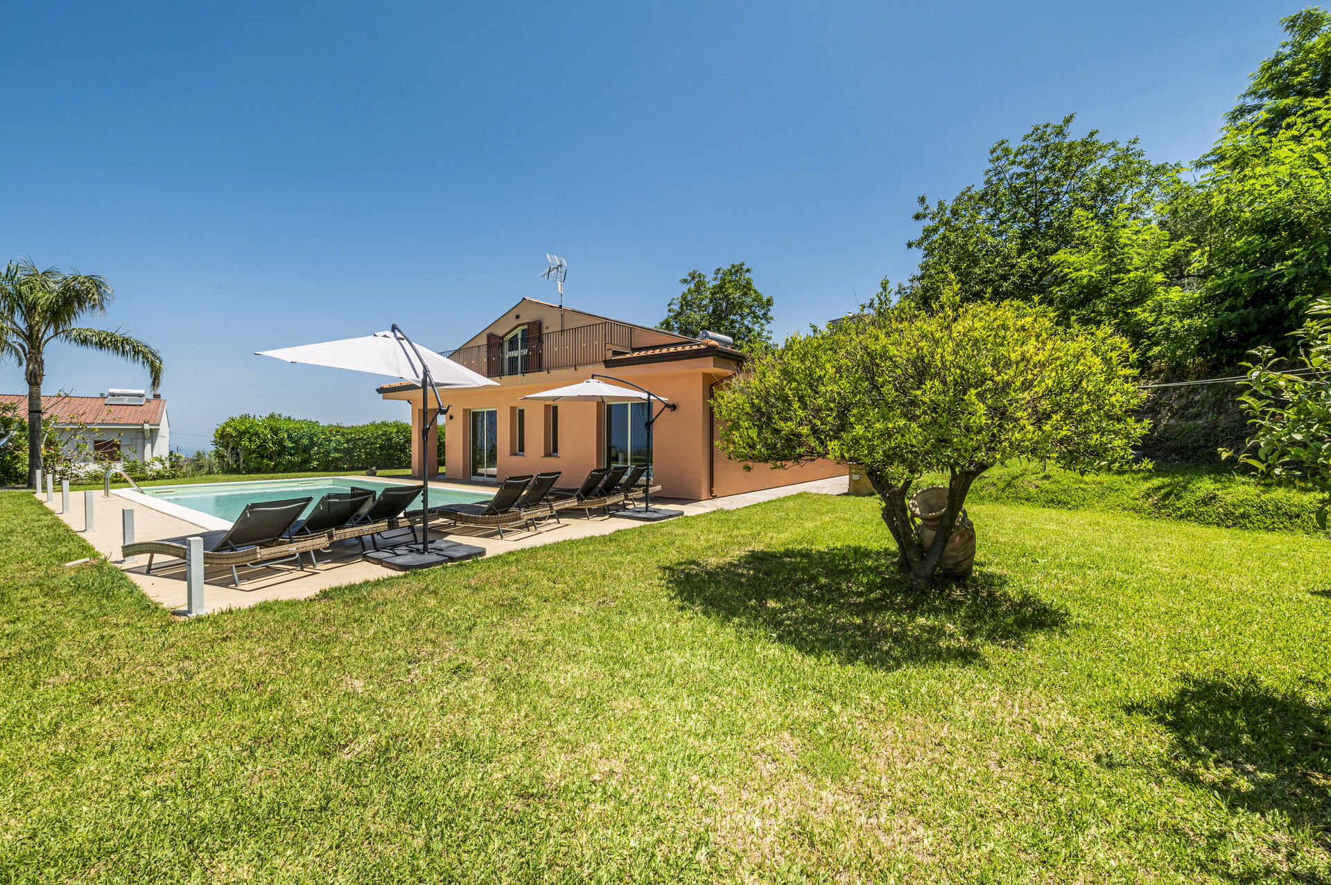 Questa bella villa con piscina privata in Sicilia è il luogo ideale per trascorrere le proprie vacanze: gli interni sono luminosi ed accoglienti e avrete la possibilità di mangiare in un'area pranzo esterna posta sotto la veranda, potrete preparare grigliate nell'attrezzata zona barbecue all’aperto, rilassarvi nella piscina esterna (riscaldabile a pagamento) e dotata di zona idromassaggio o nell’ ampia zona solarium ideale per trascorrere piacevoli momenti sotto il sole della Sicilia.