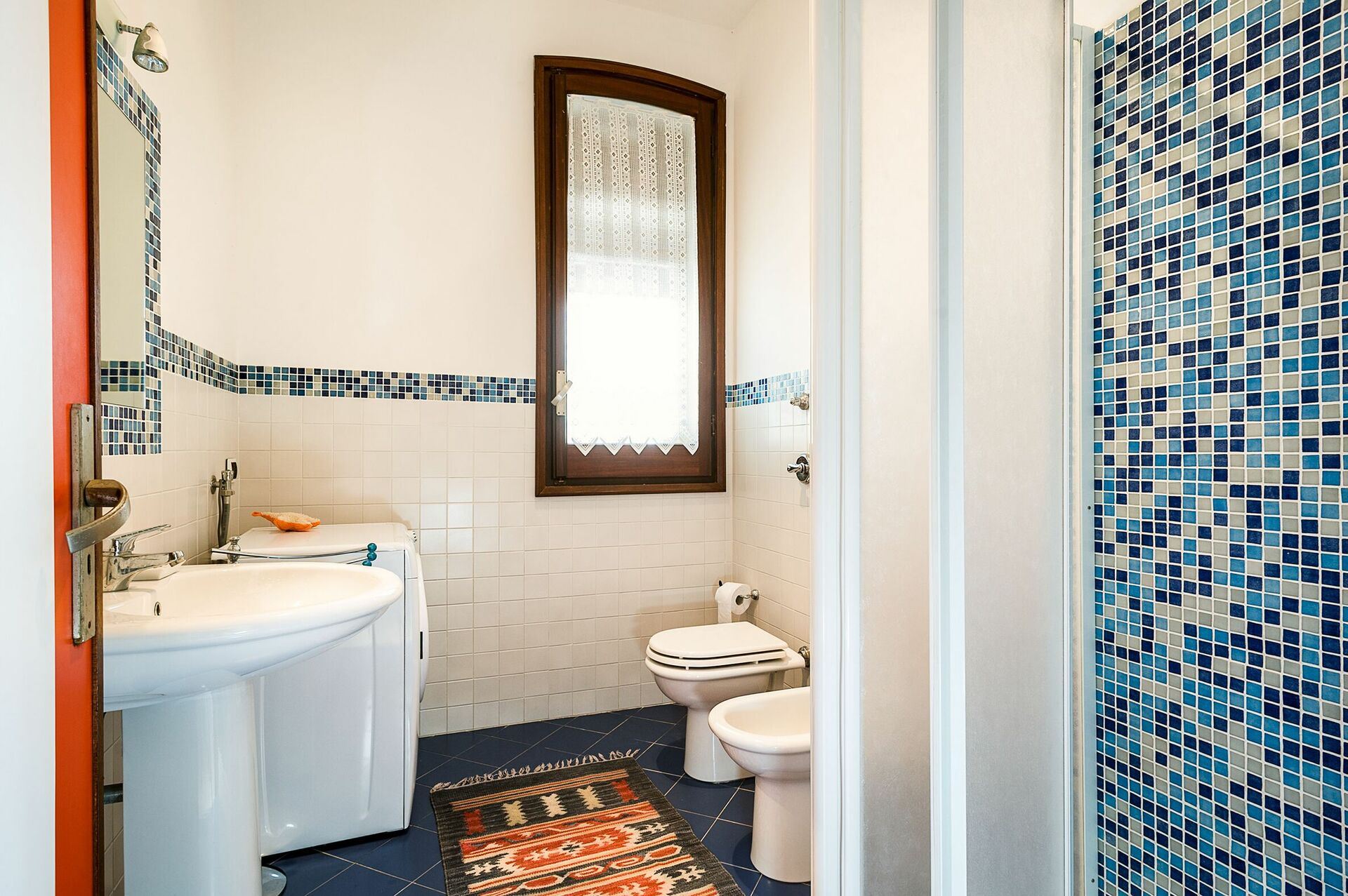 Piano terreno: ingresso, soggiorno con camino, cucina (forno, freezer, microonde, macchina da caffè), 2 camere matrimoniali, 1 camera con 2 letti singoli, 2 bagni con doccia.