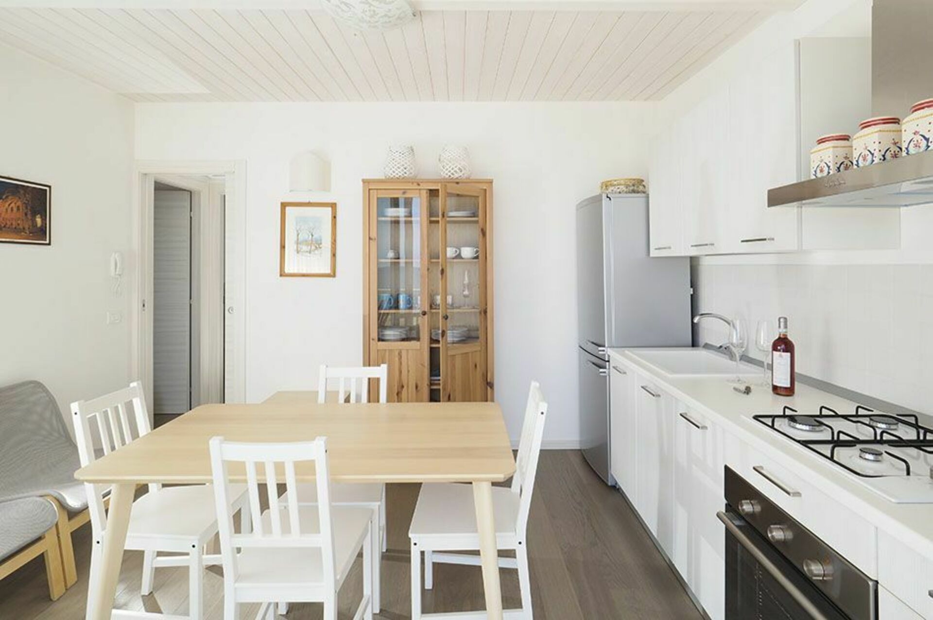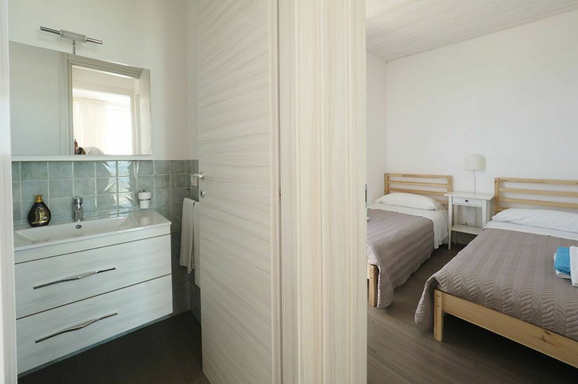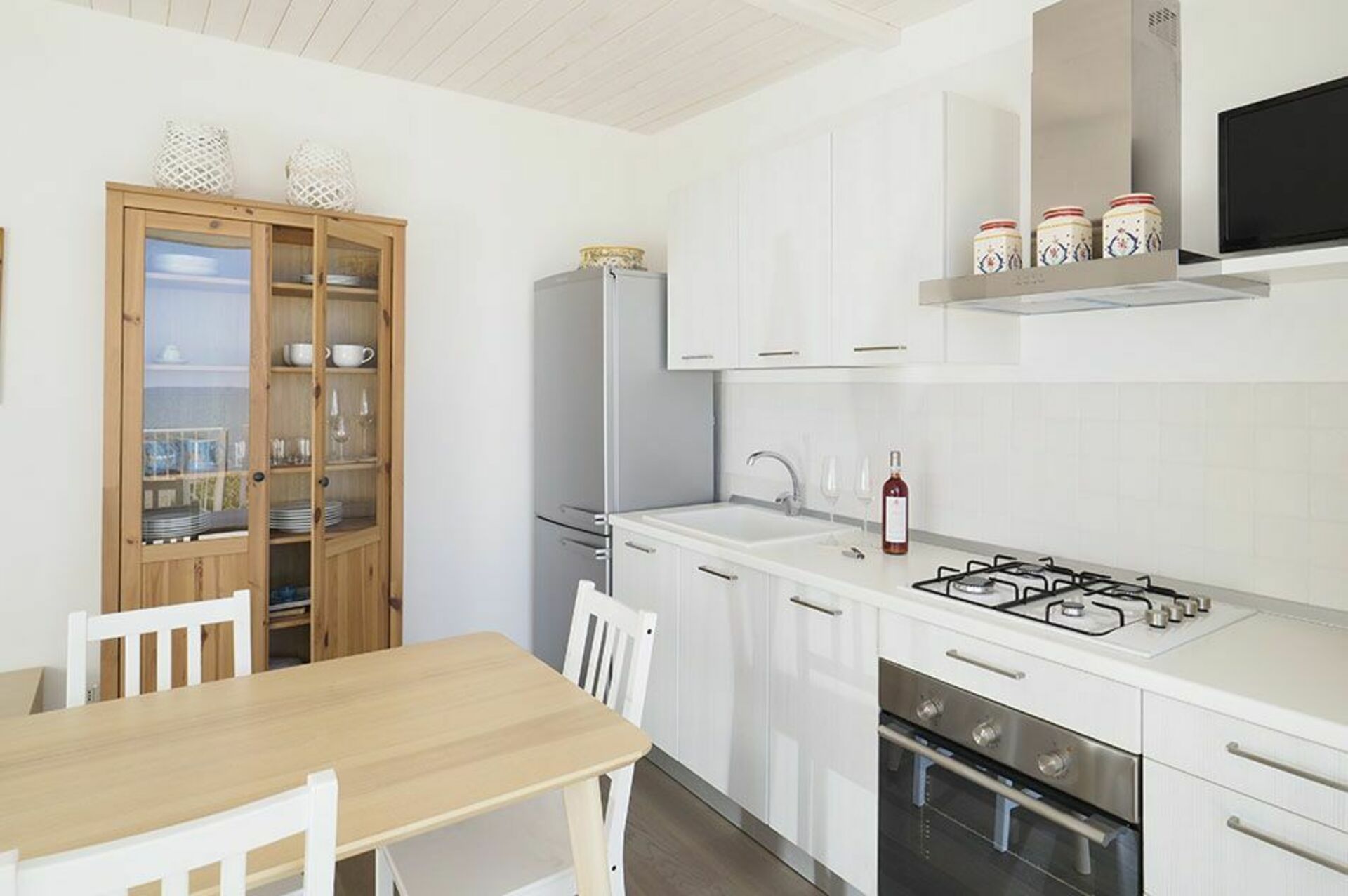 Primo piano (accessibile tramite una scala esterna a chiocciola): seconda cucina, due camere matrimoniali, bagno con doccia.