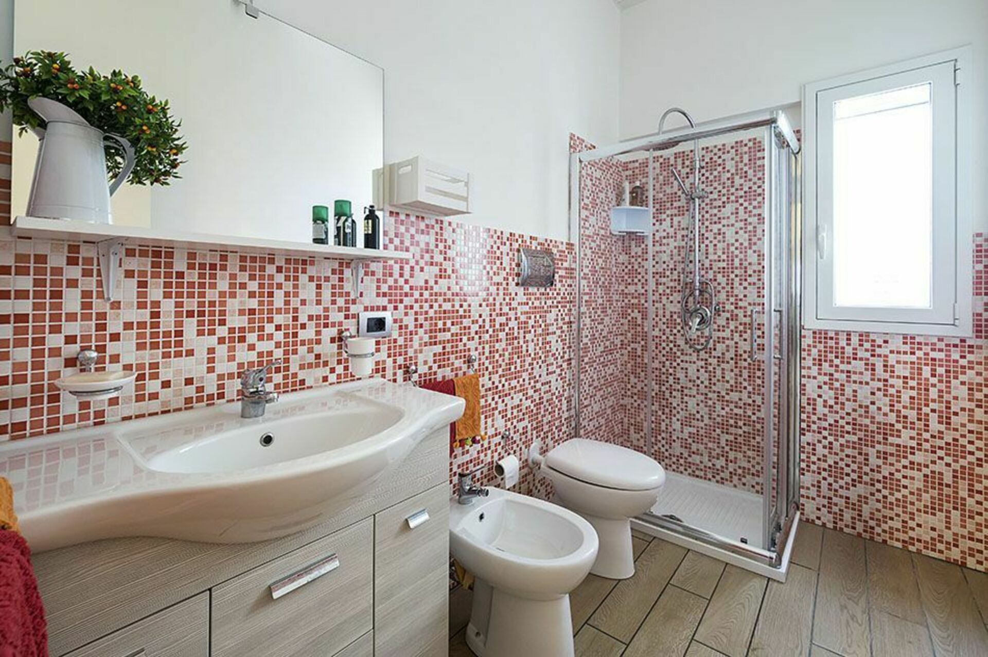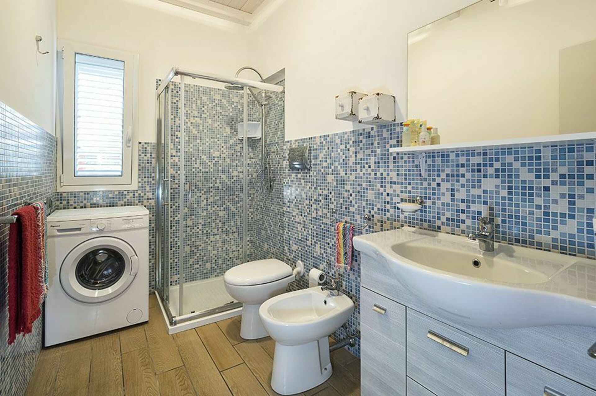 Piano Terra: soggiorno-cucina, 3 camere matrimoniali, 2 bagni con doccia.