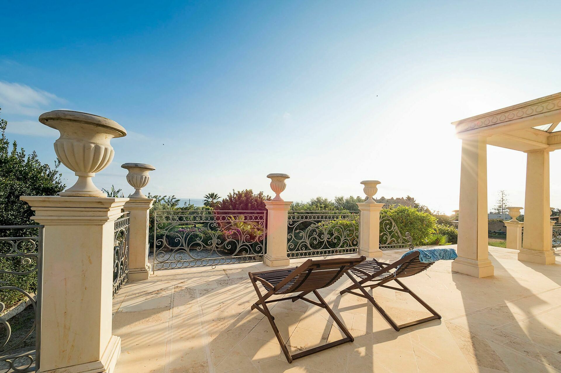 Circondata da un curato giardino incorniciato da caratteristici muretti a secco, questa villa di lusso dispone di ampie e panoramiche terrazze dalle quali si gode una splendida vista sul paesaggio circostante e sul mare.
