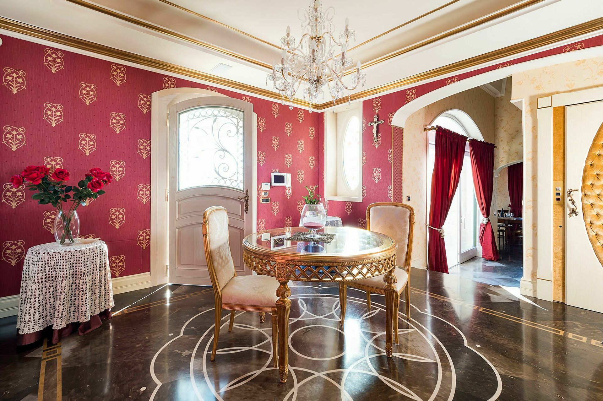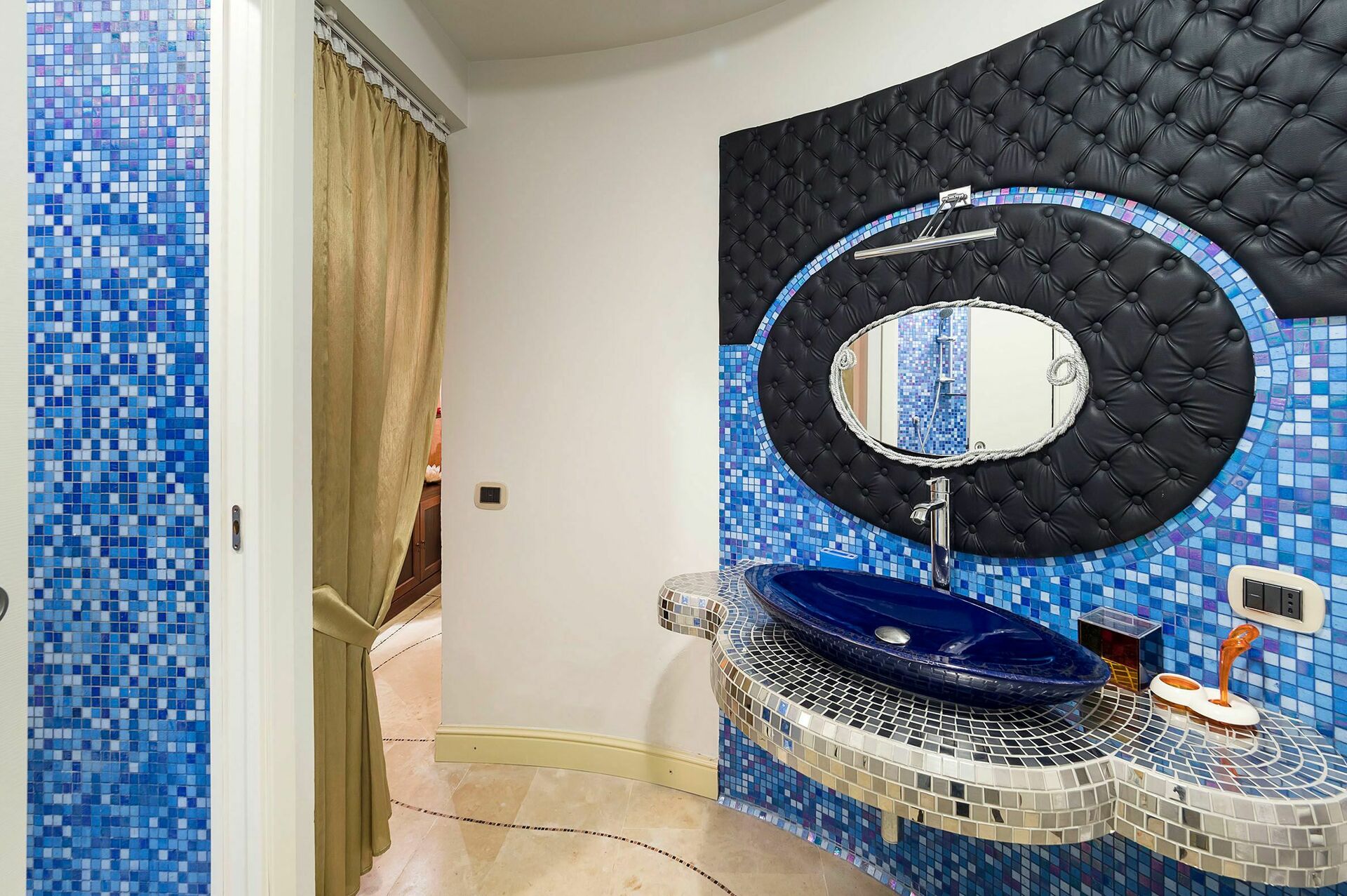 Al piano terra si trova l’esclusiva area wellness con hammam, vasca idromassaggio, due bagni con doccia e la scenografica piscina interna riscaldata.