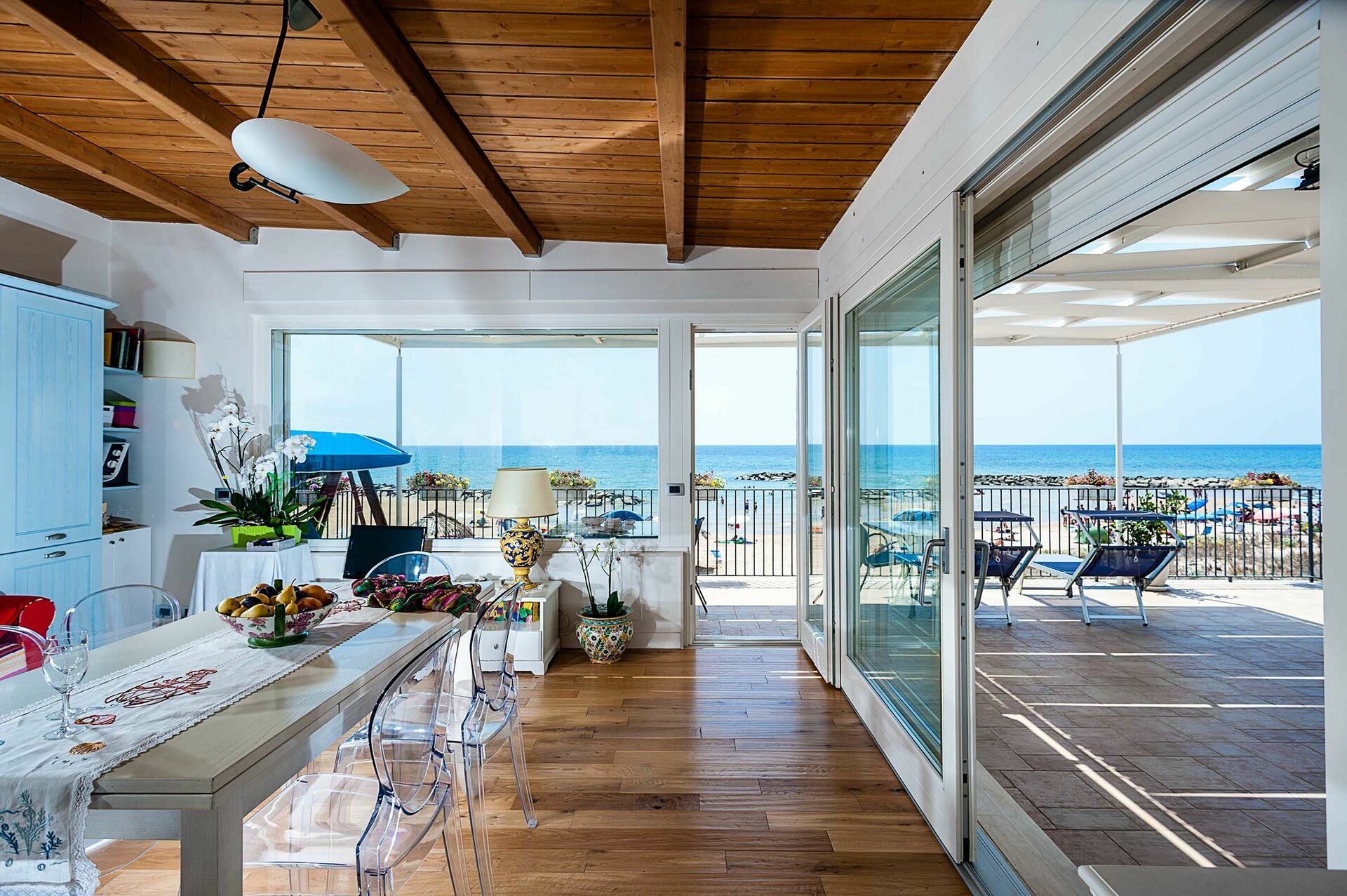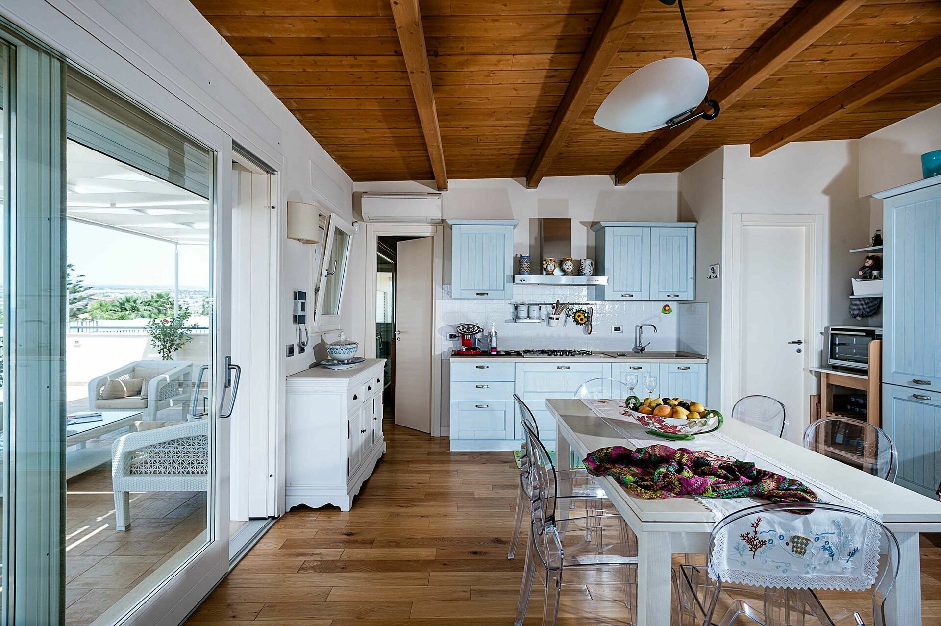 Primo piano: soggiorno-cucina, 1 camera matrimoniale, 1 camera matrimoniale di passaggio, 1 bagno con doccia, 1 WC.