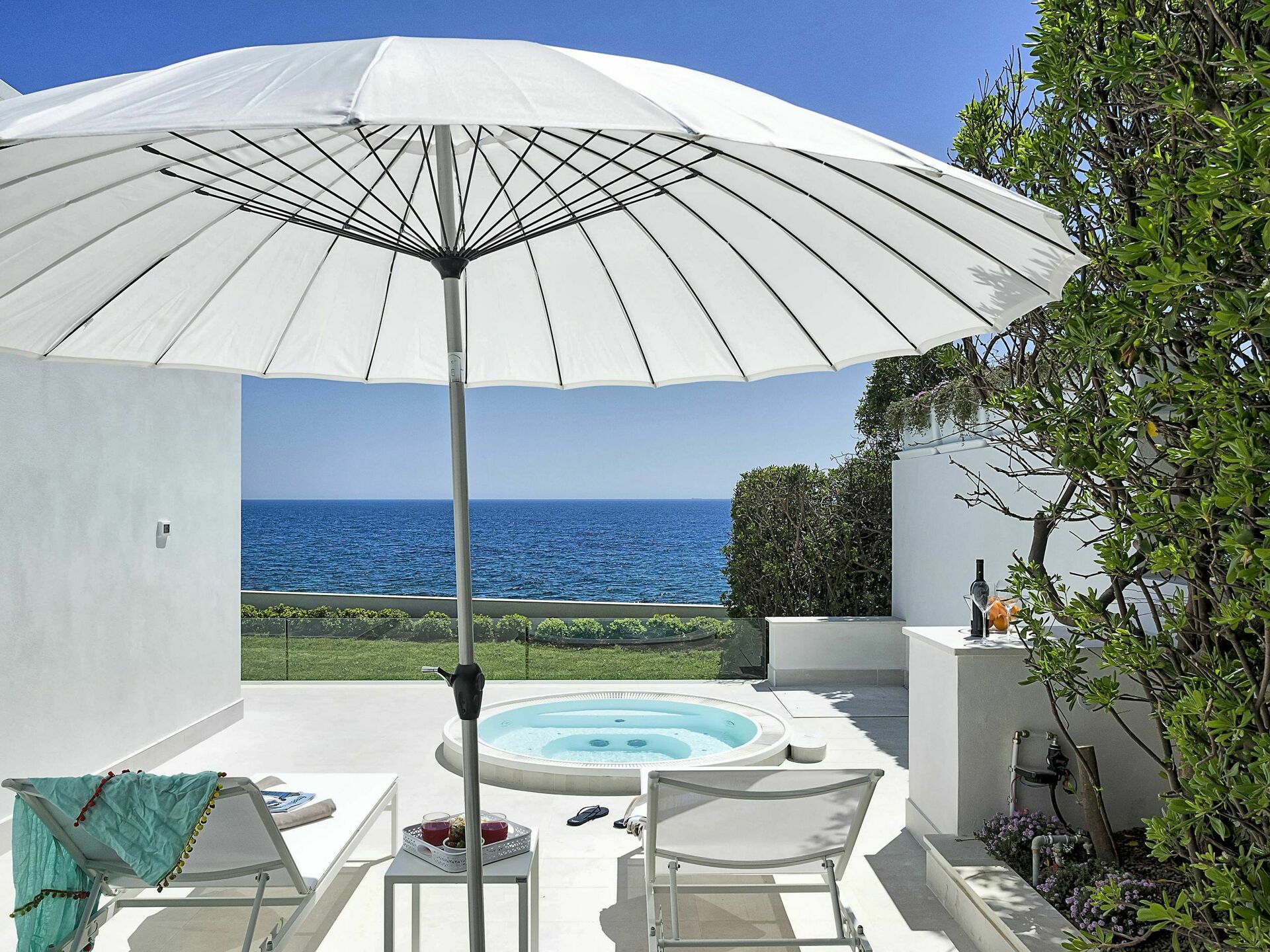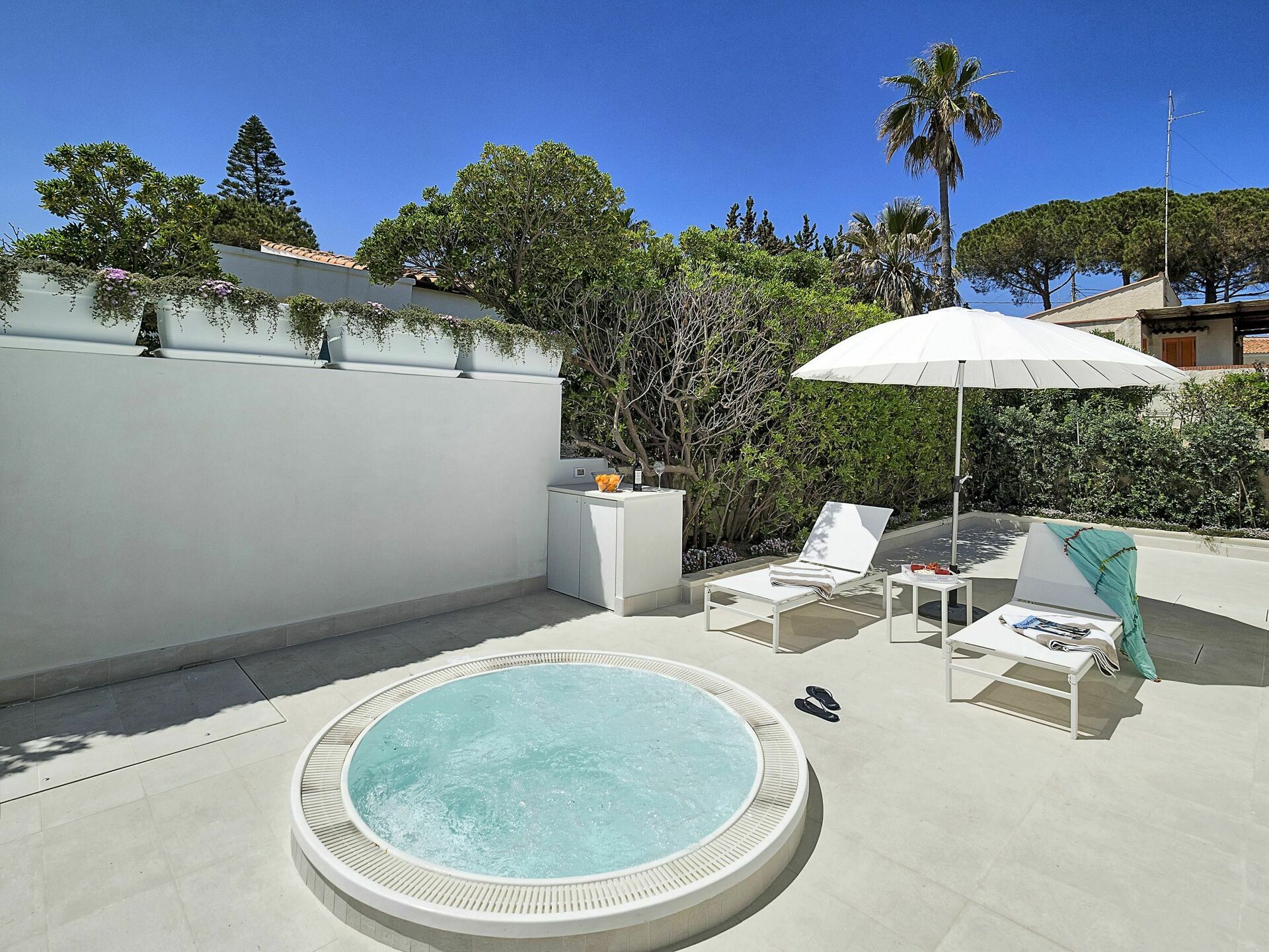 Situata proprio fronte mare dispone di splendide terrazze e su una di queste è presente una piscina idromassaggio di 2 metri di diametro che si affaccia sul mare.