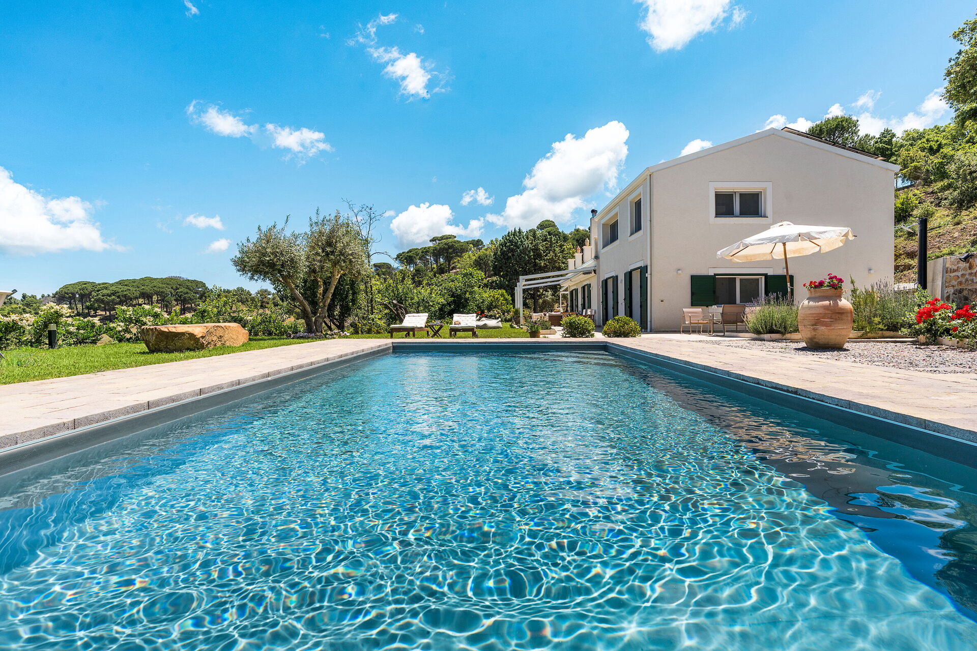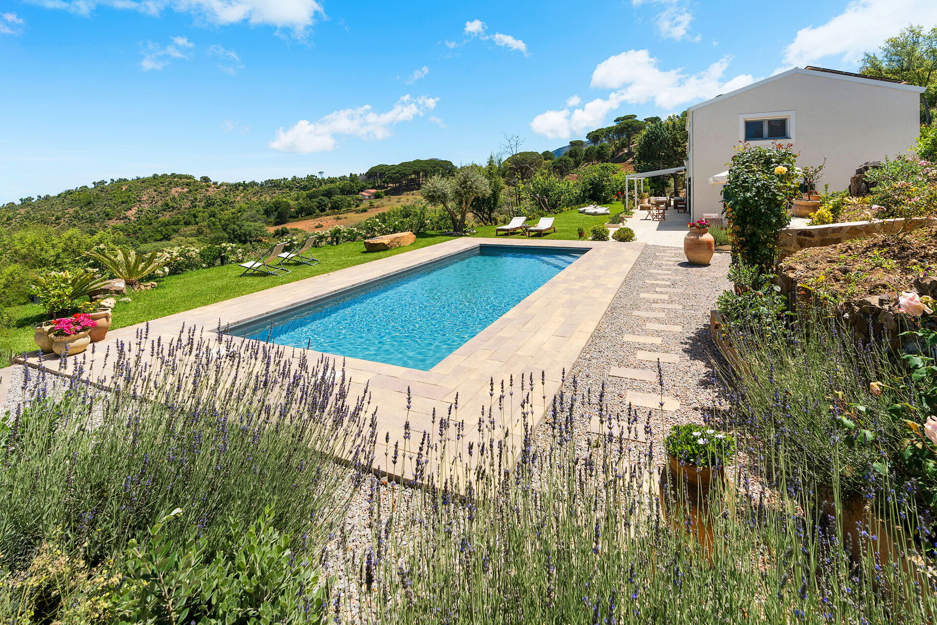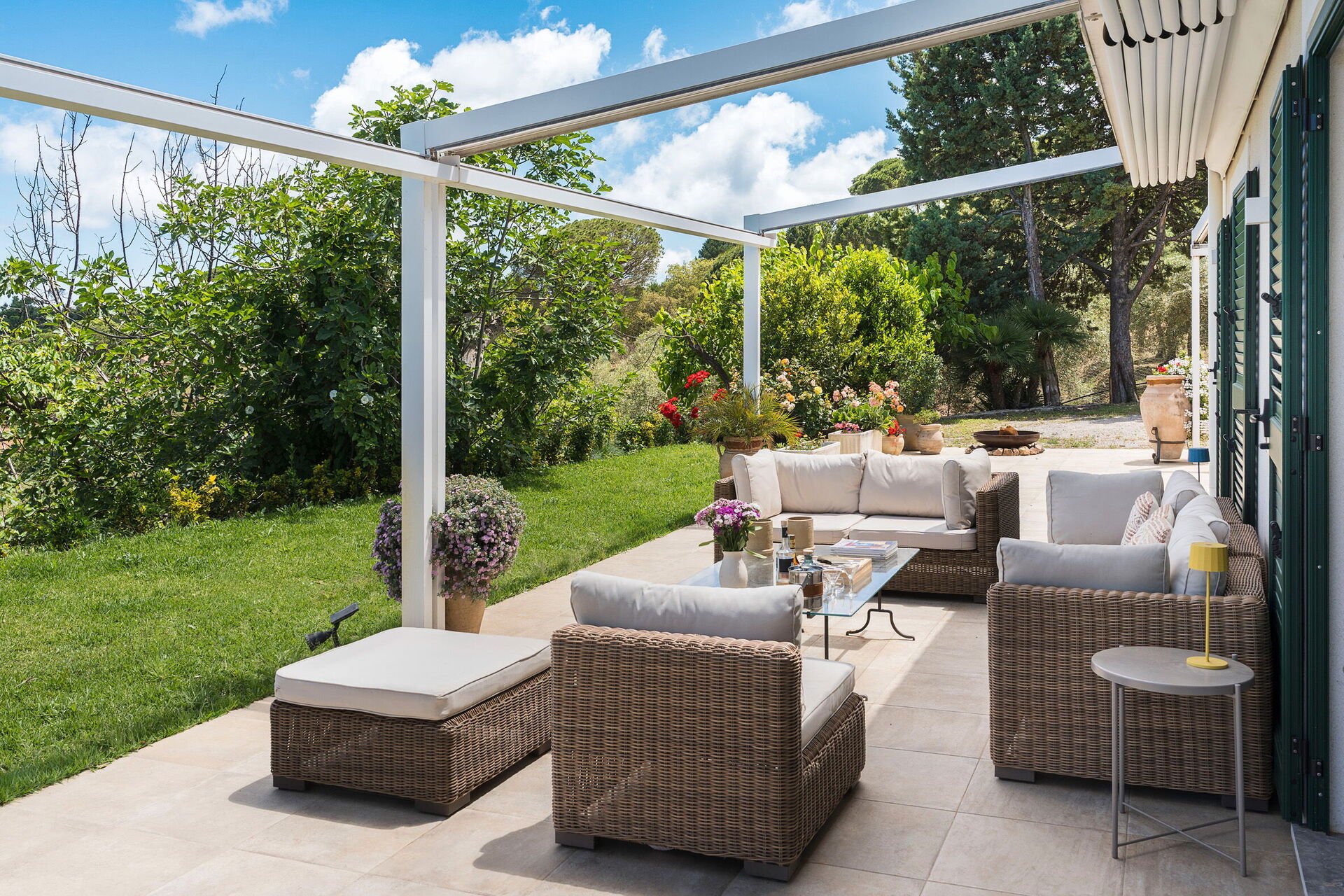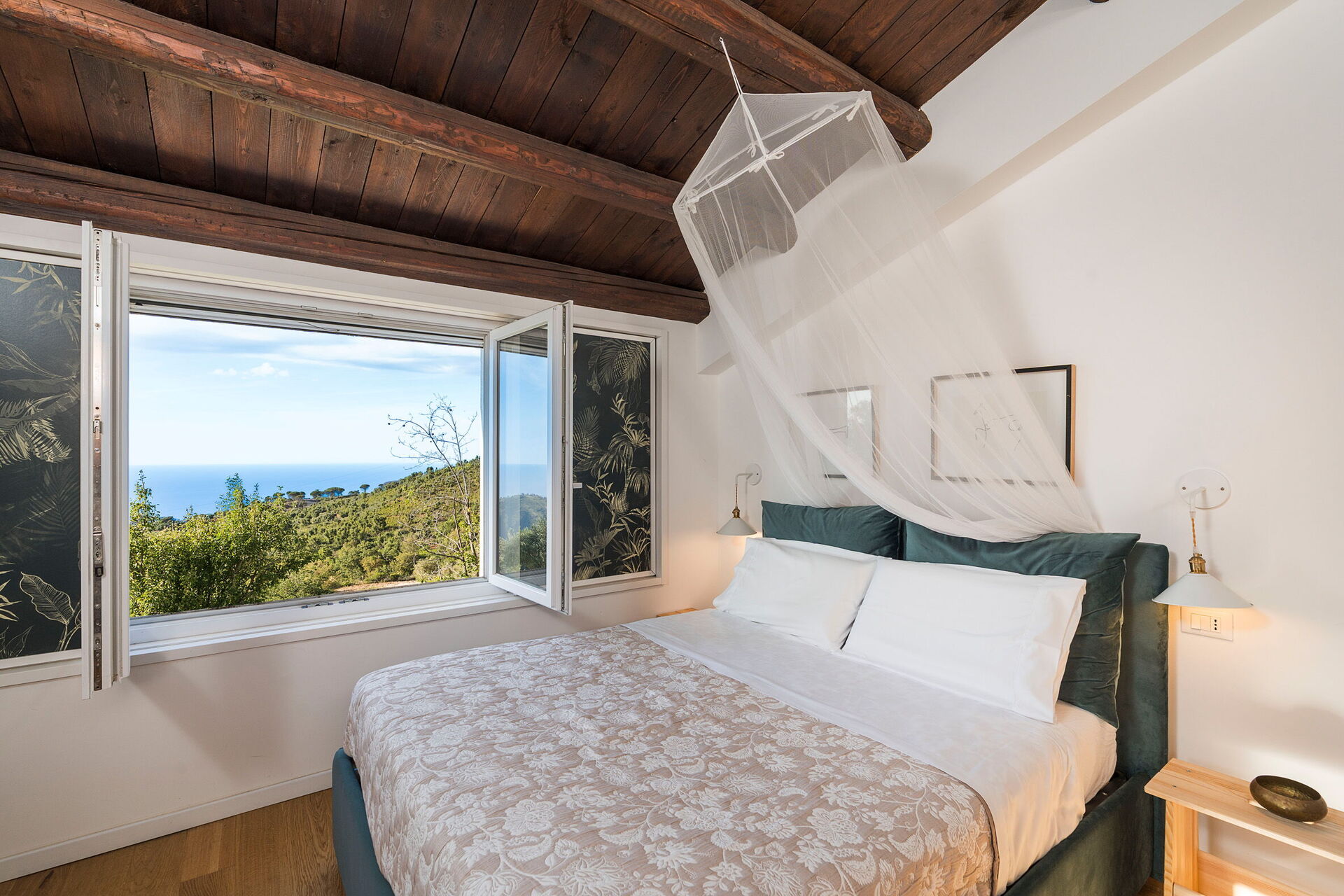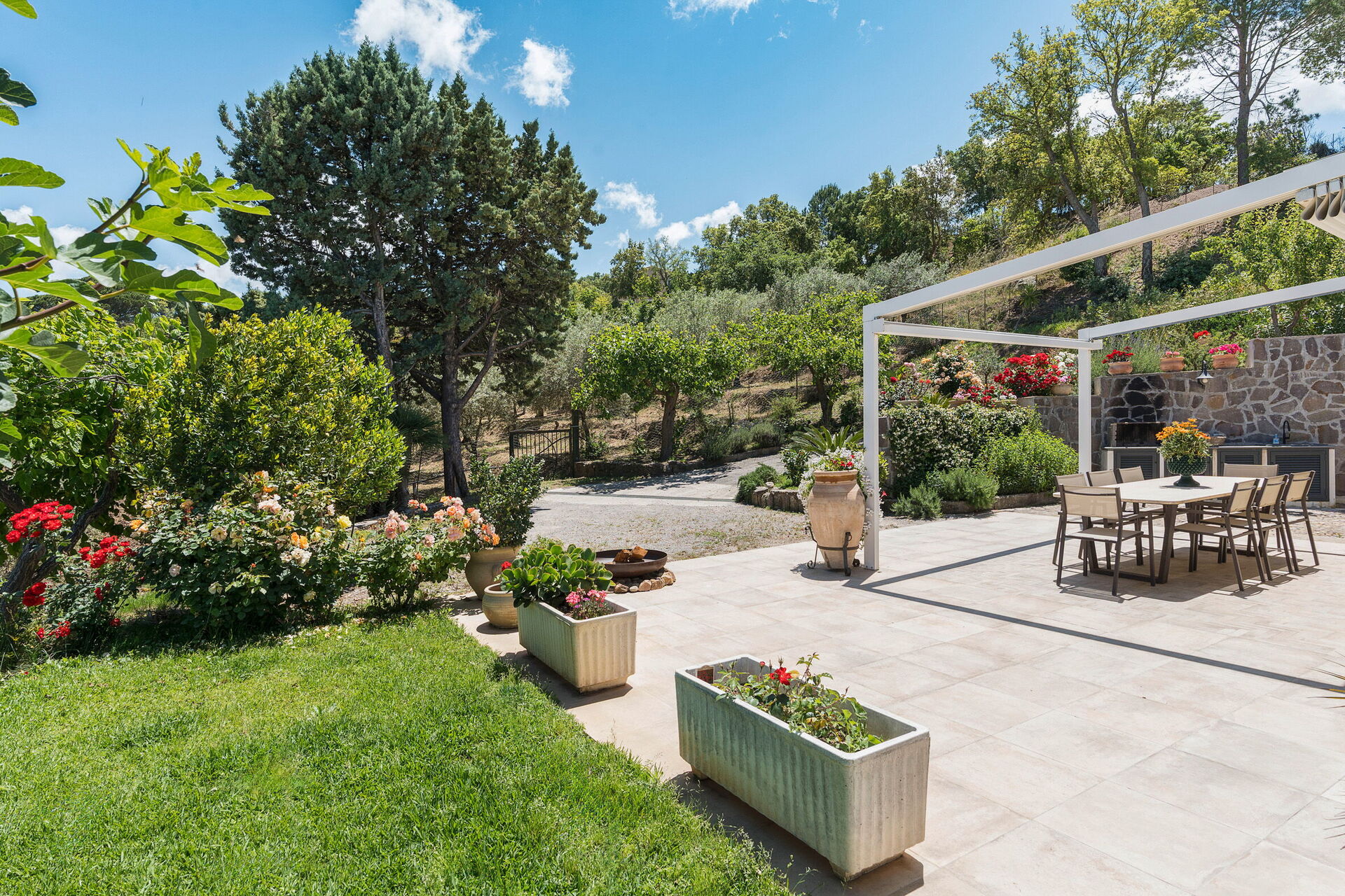 Casita si trova in una posizione panoramica con vista spettacolare che si estende fino al mare: è completamente immersa nel verde ed è circondata da piante mediterranee e da ulivi secolari.